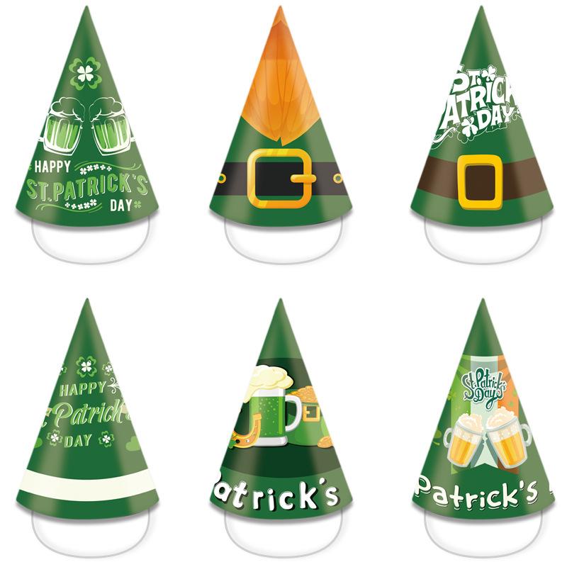 Sombrero de papel irlandés europeo y americano transfronterizo tema de San Patricio fiesta divertida sombrero de cumpleaños para niños accesorios de decoración