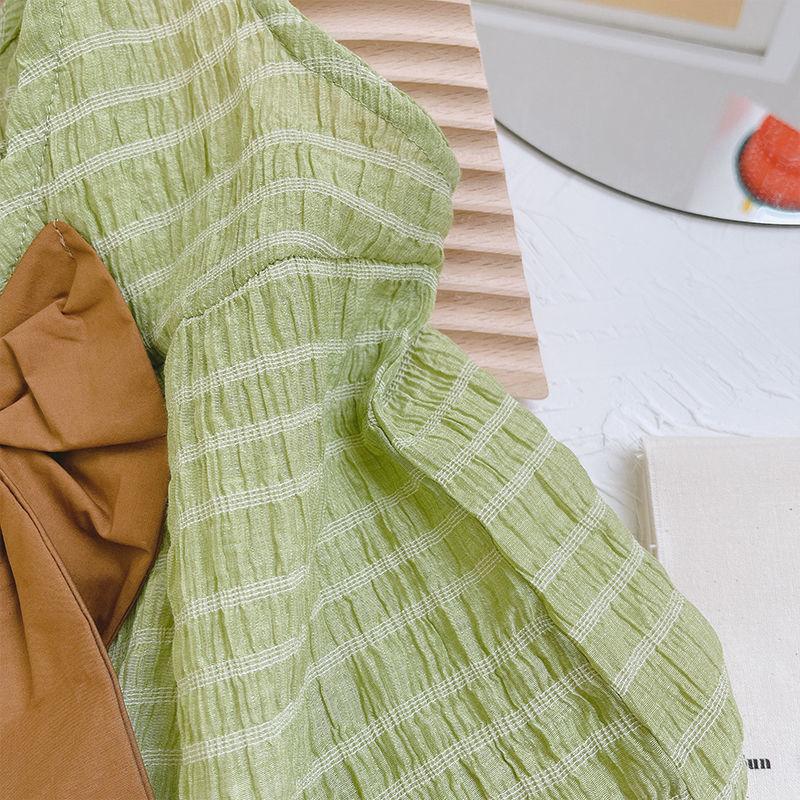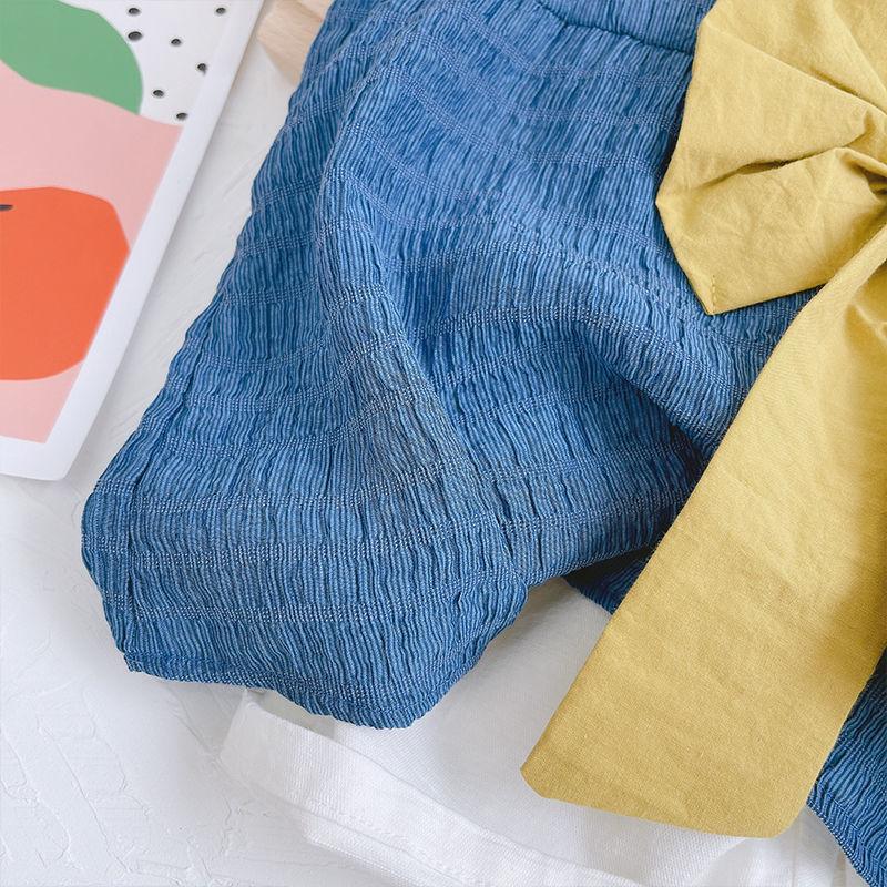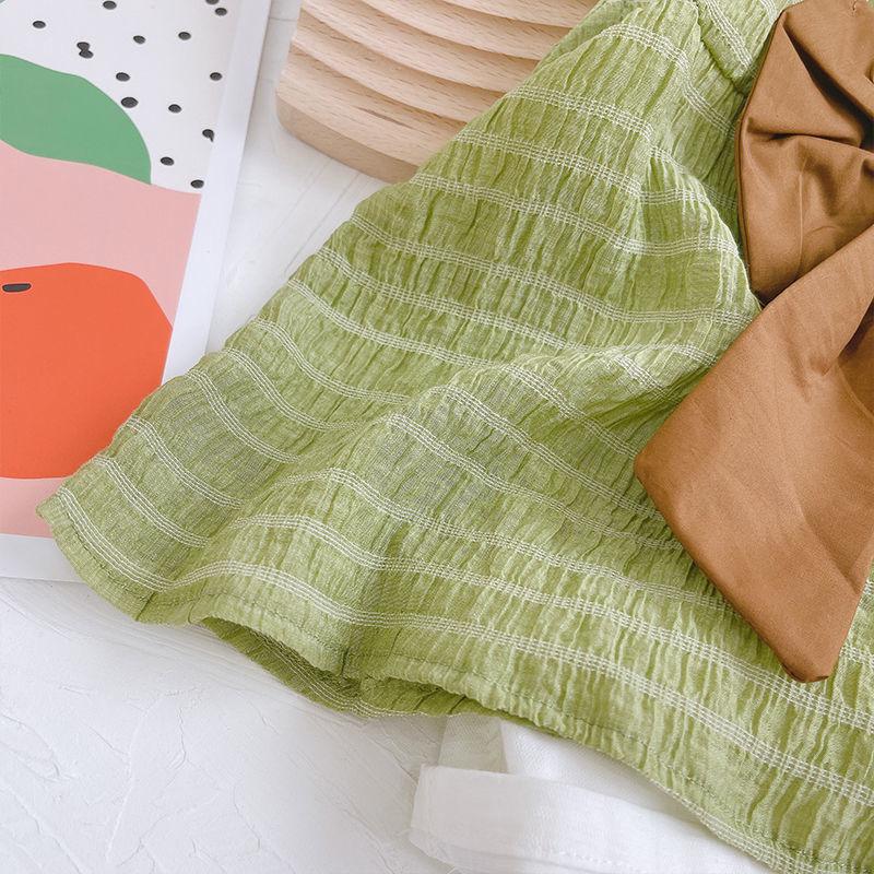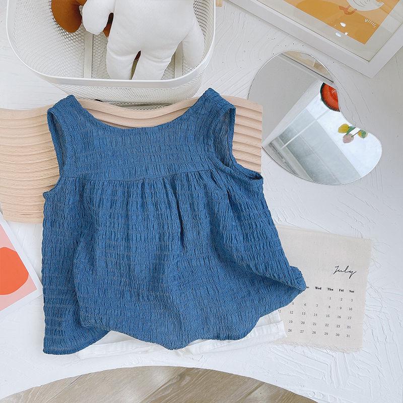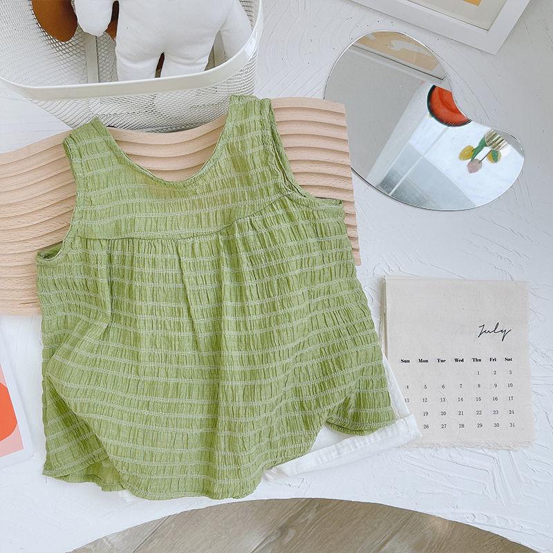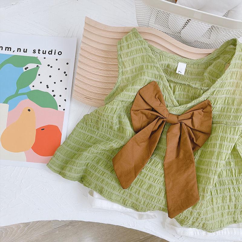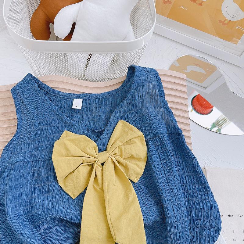Chaleco de verano para niñas, popular en línea, para bebés, personalizado, de moda, estilo coreano, con escote en V y lazo, sin mangas, dulce top