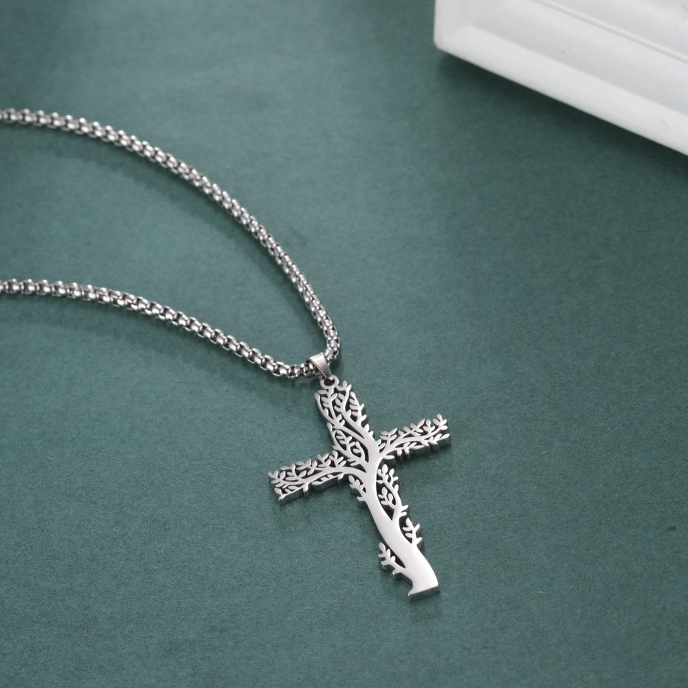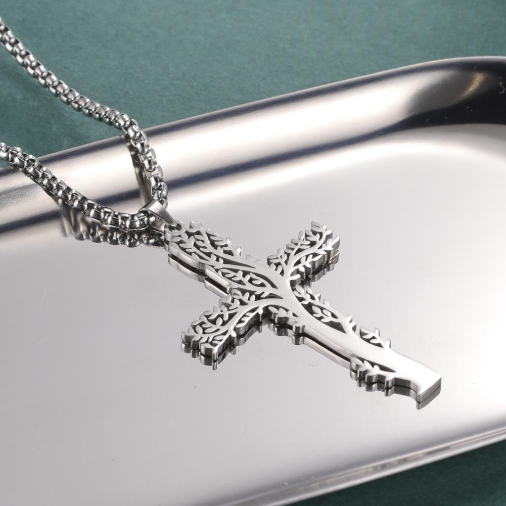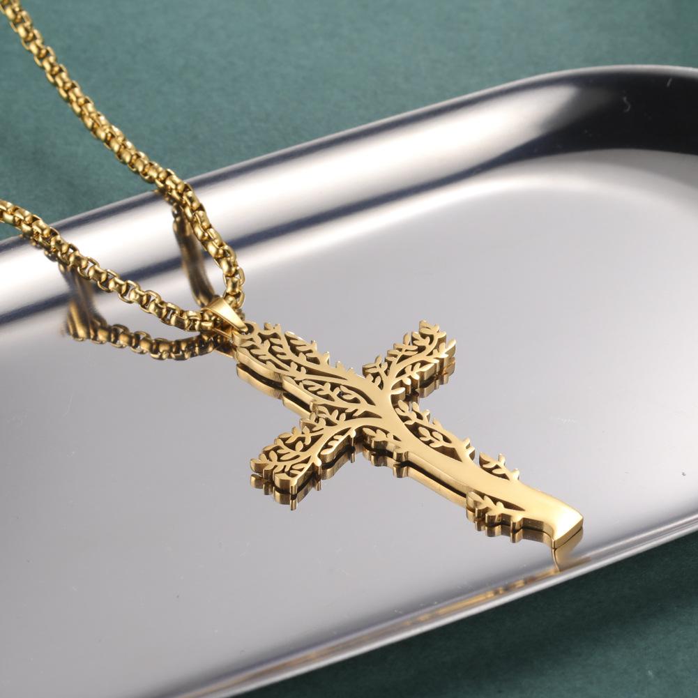 Europa y Estados Unidos suministro transfronterizo tendencia de moda árbol hueco cruz personalidad collar con colgante de acero inoxidable para hombre