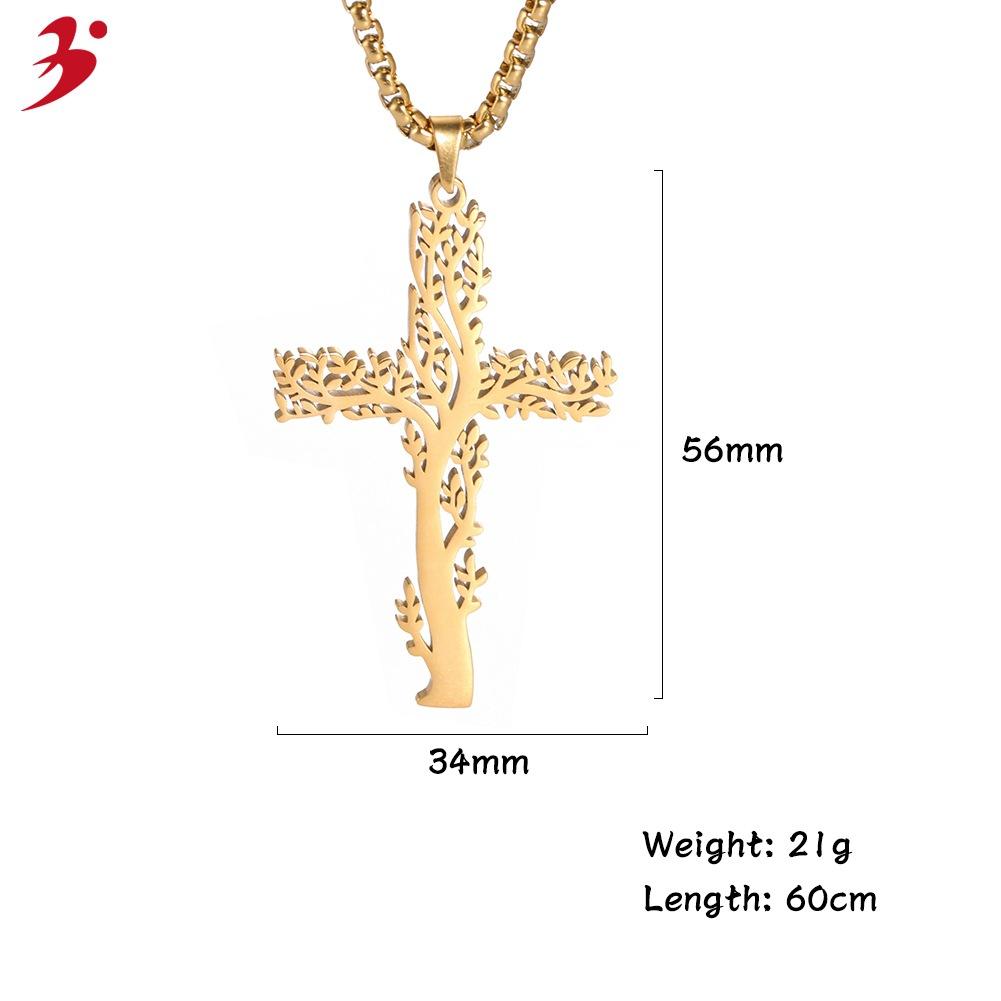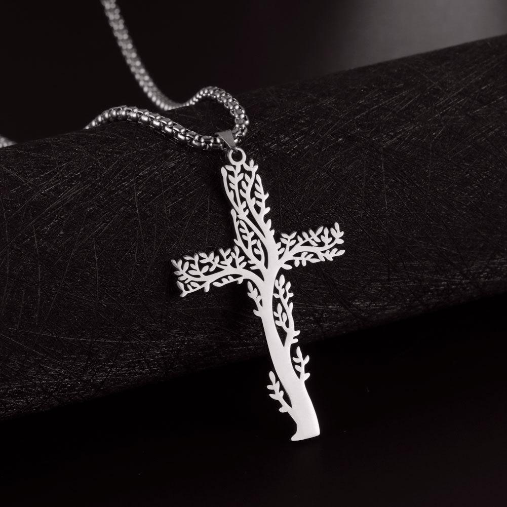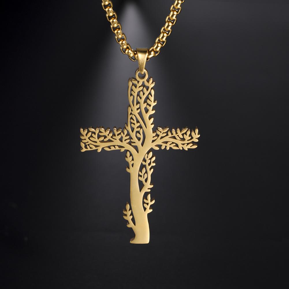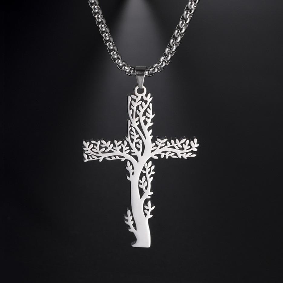 Europa y Estados Unidos suministro transfronterizo tendencia de moda árbol hueco cruz personalidad collar con colgante de acero inoxidable para hombre