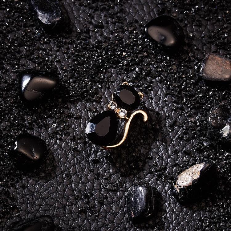 Nombre del Producto: Broche Pequeño de Gatito Gato Diamante Negro con Pedrería