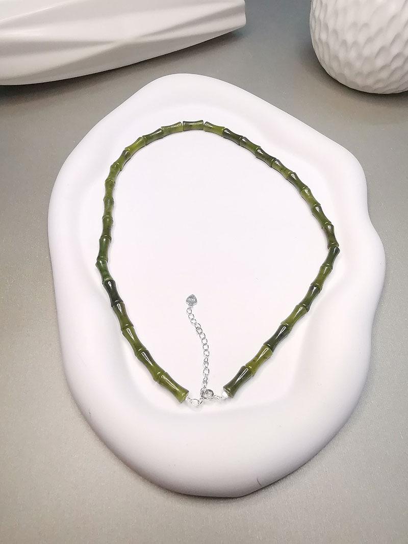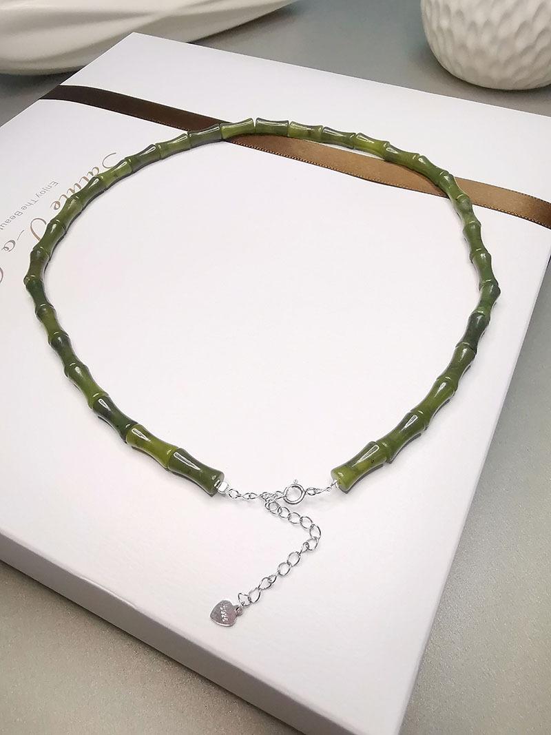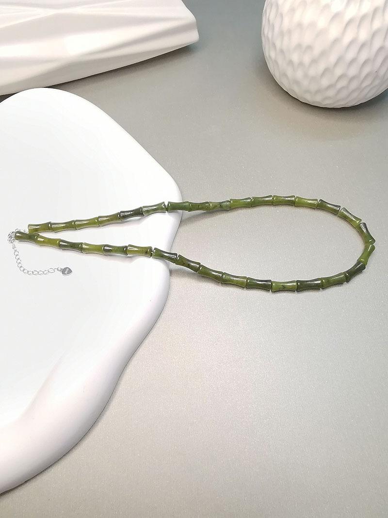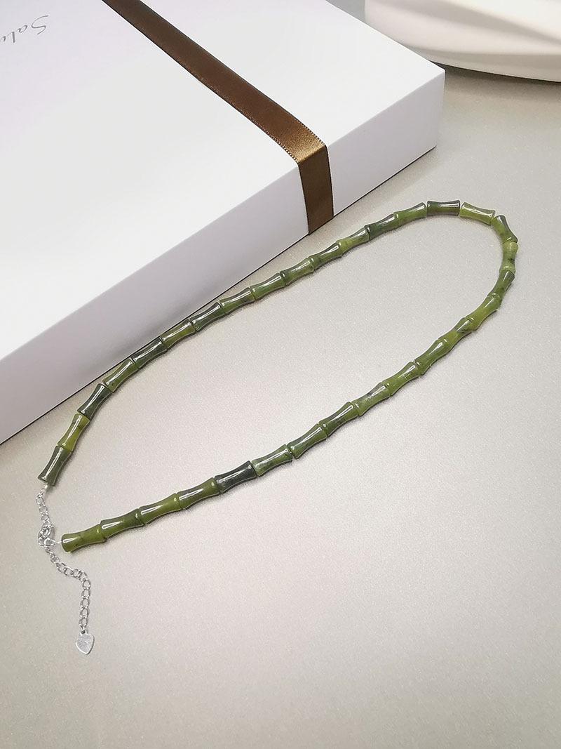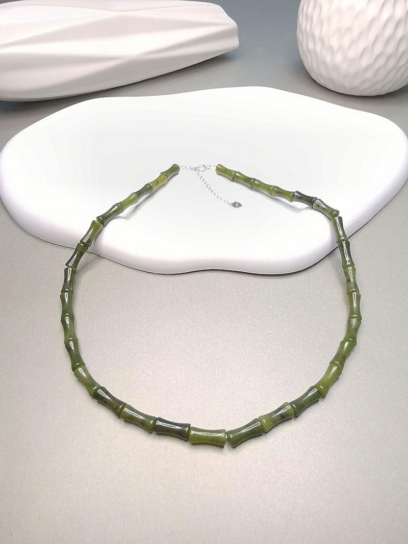 [Tamaño del bebé]: El tamaño de las cuentas de bambú de peridoto natural es de aproximadamente 5*12 mm, collarLa longitud es 42+5cm