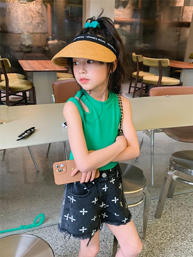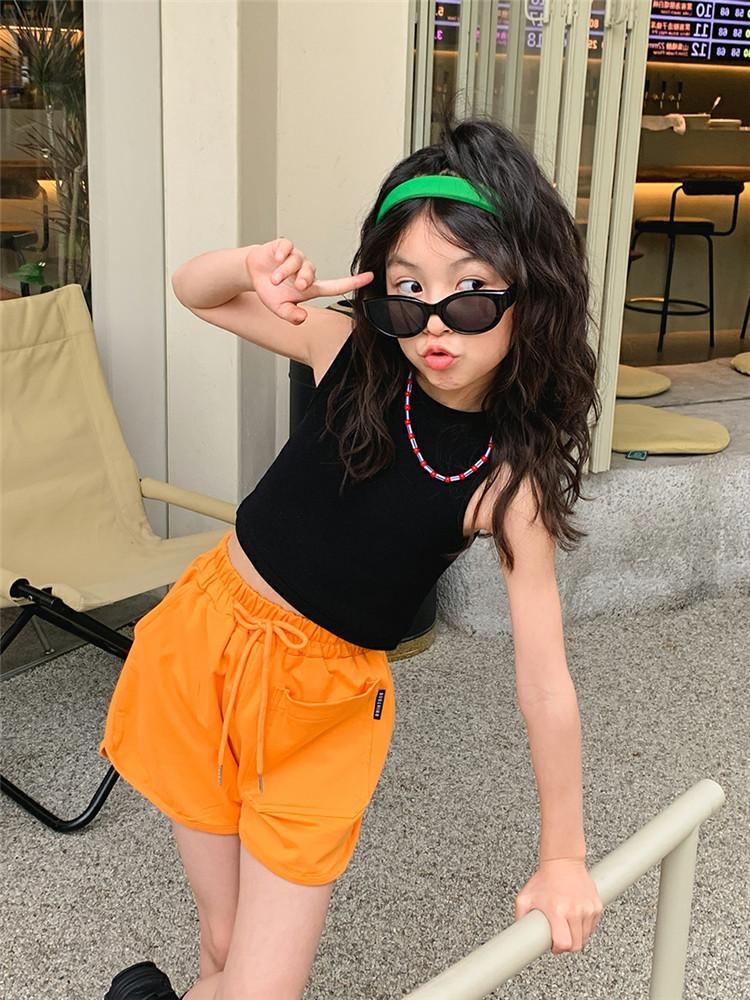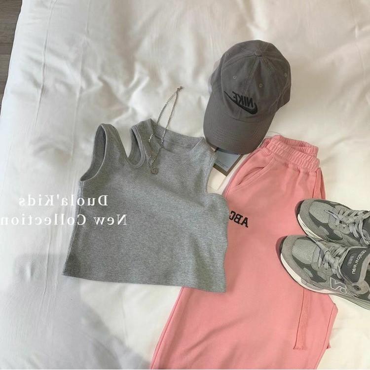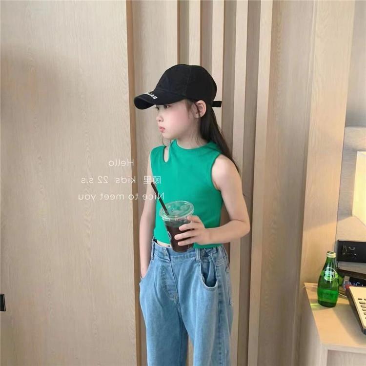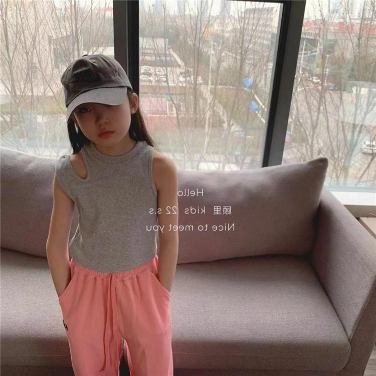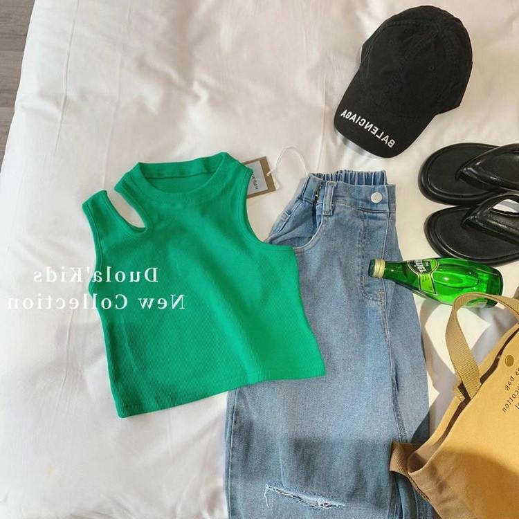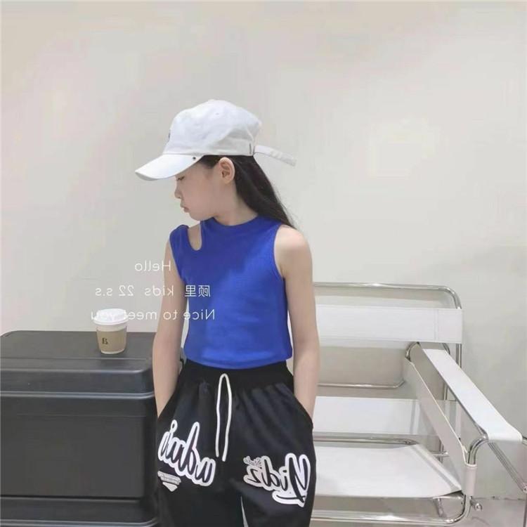 Chaleco de Verano para Niñas Bebé Online Popular Personalidad Infantil Trendy Coreano Deportivo Hombro Irregular Corto Tirante