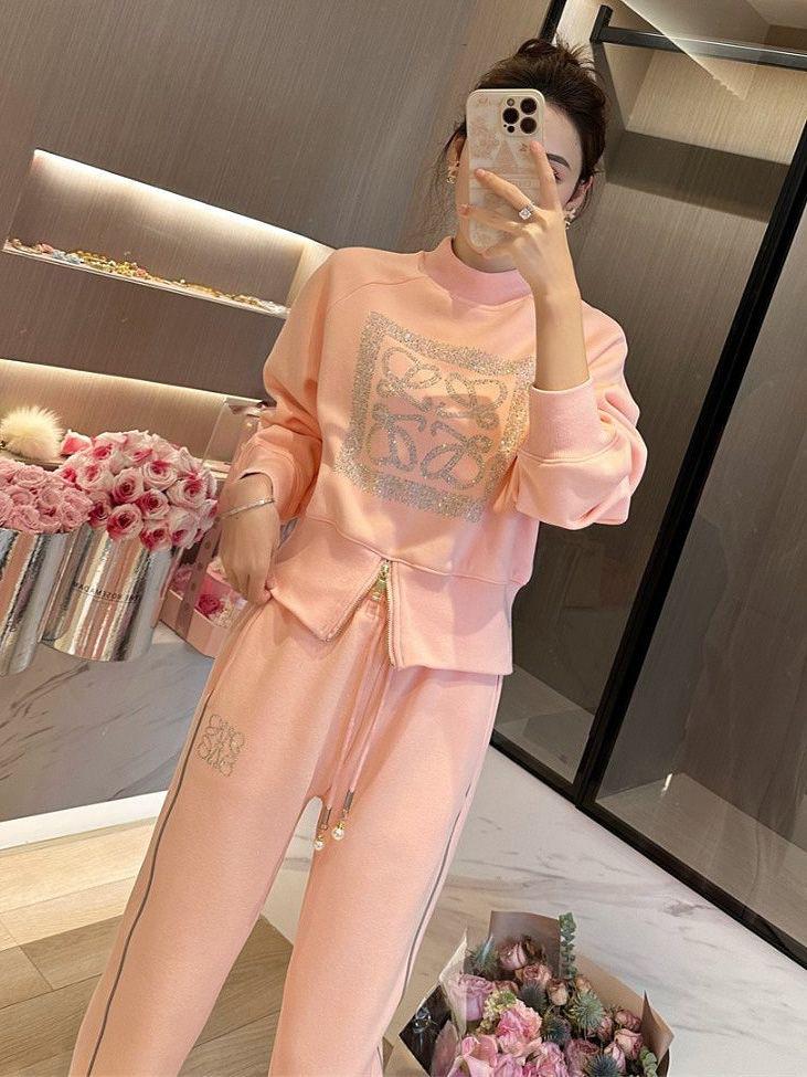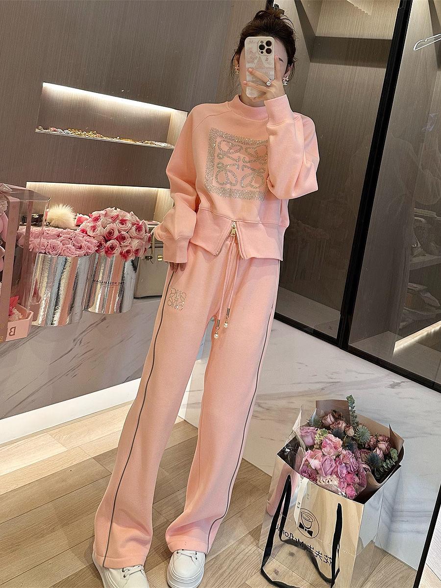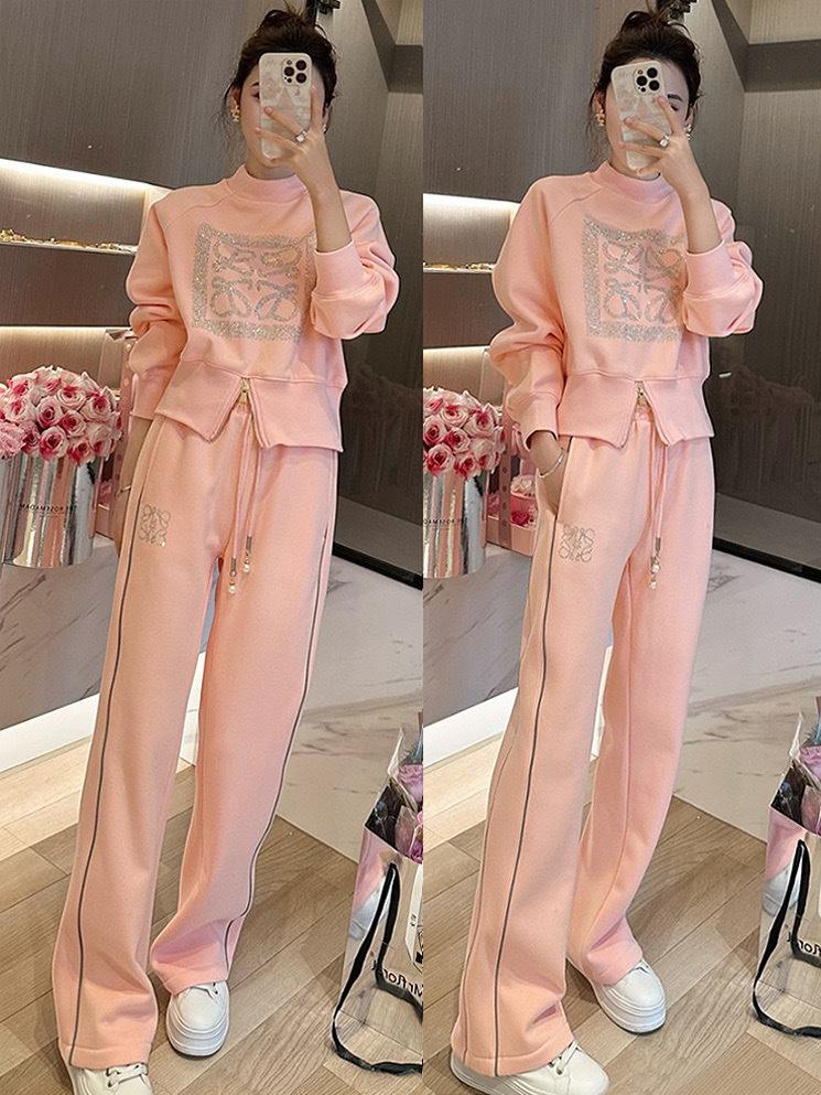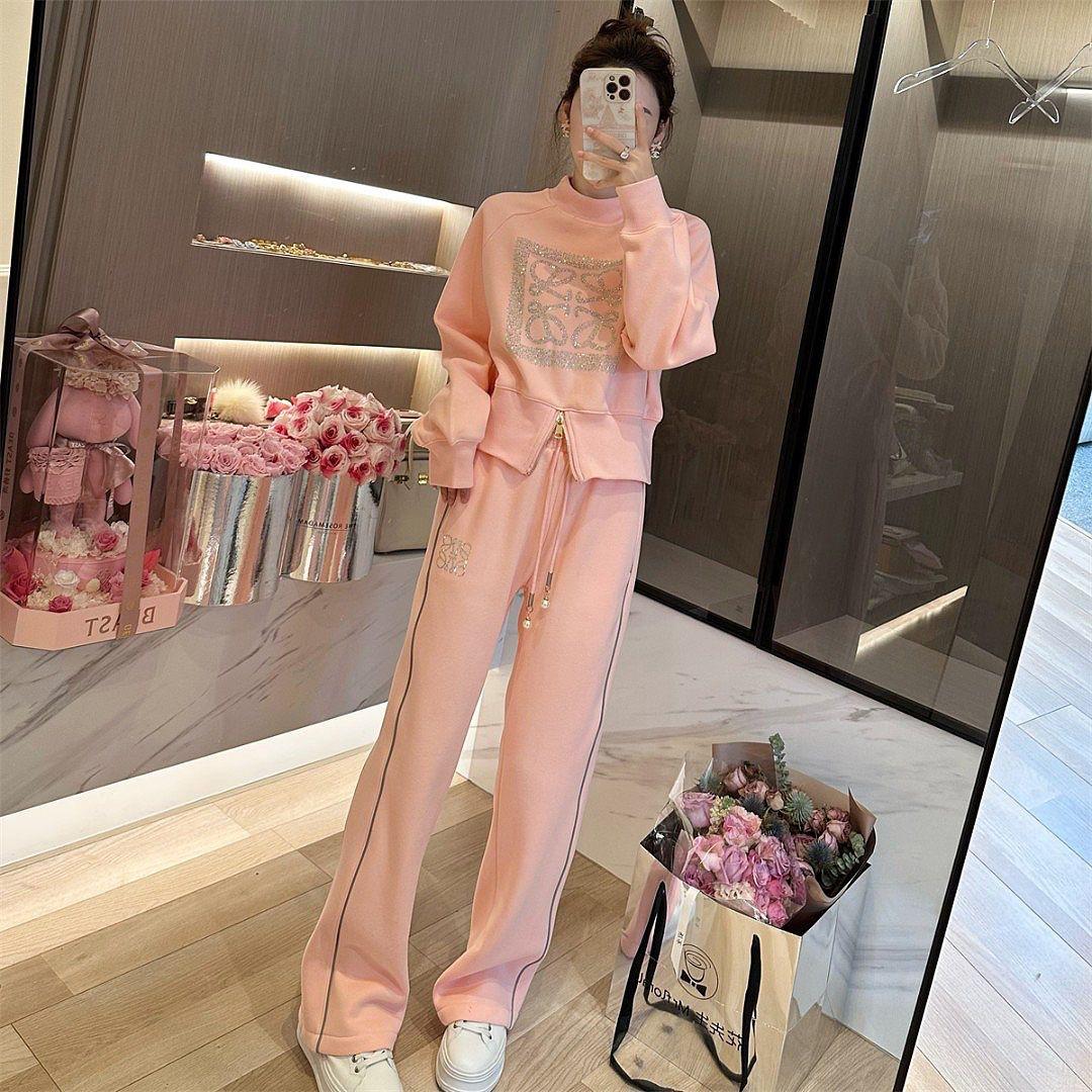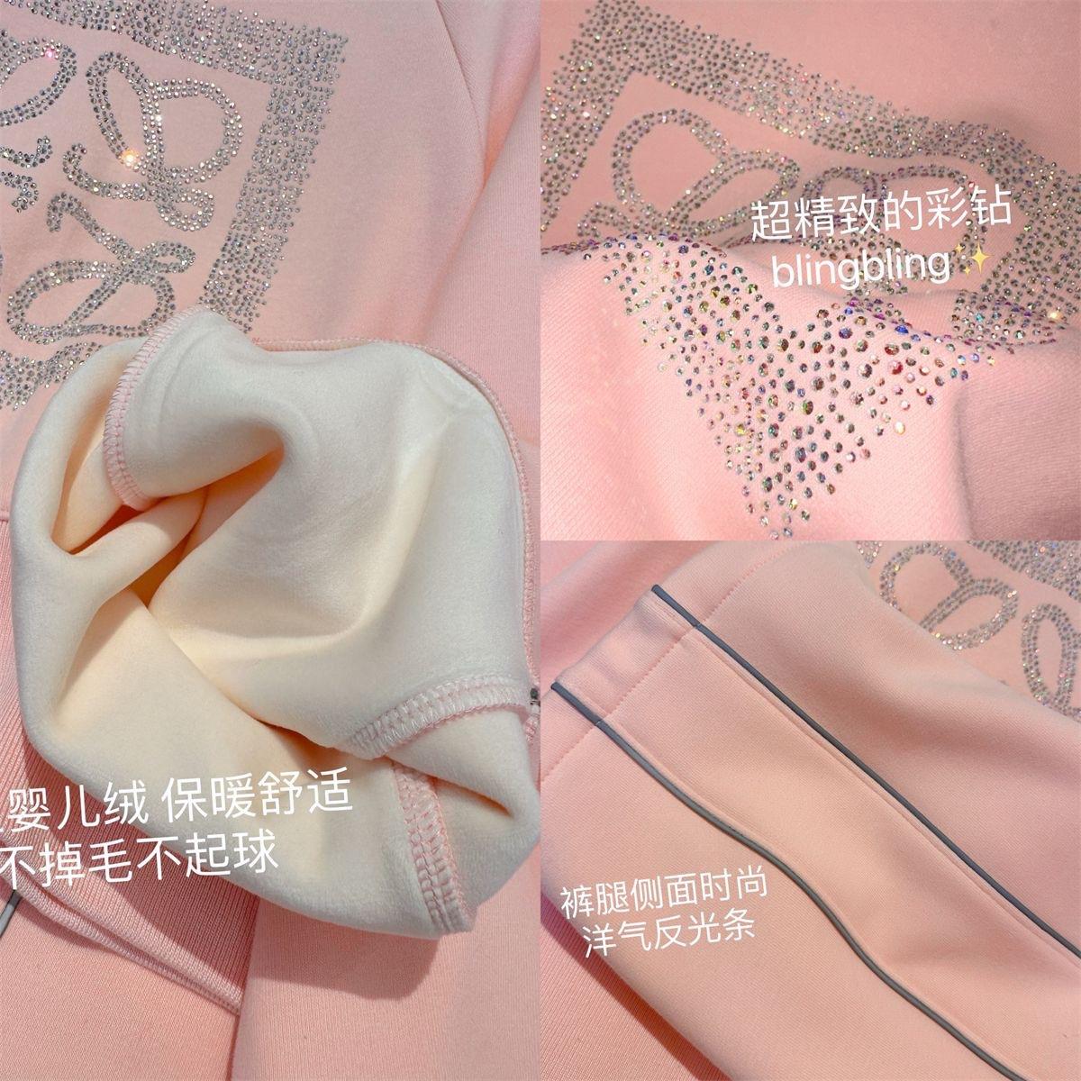 Traje grueso con forro polar para mujer, otoño e invierno, ligero, de lujo, industria pesada, diseño de diamantes de imitación, suéter con media cremallera, abrigo de dos piezas para mujer