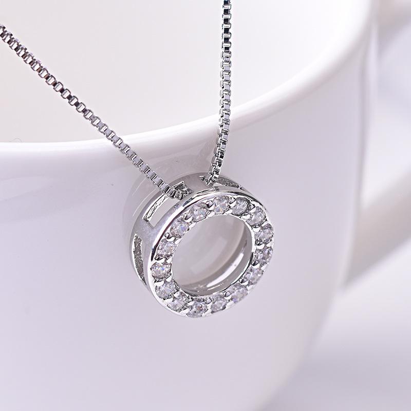 Collar de plata para mujer, cadena de clavícula, moderno, popular en Internet, ligero, de lujo, estilo coreano, simple, elegante, con colgante geométrico de círculo de diamantes.