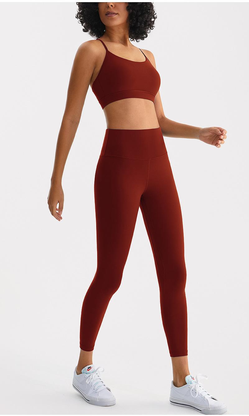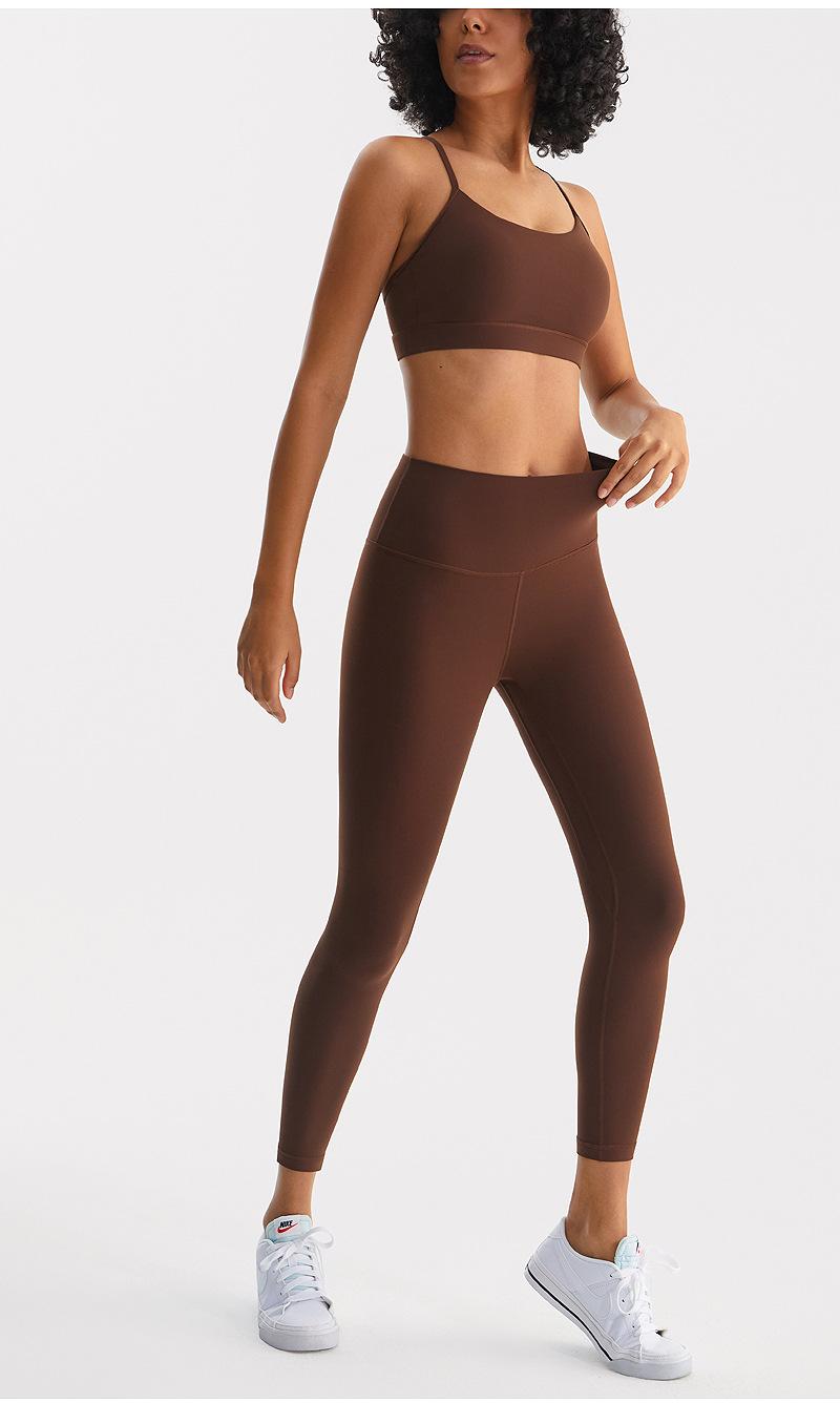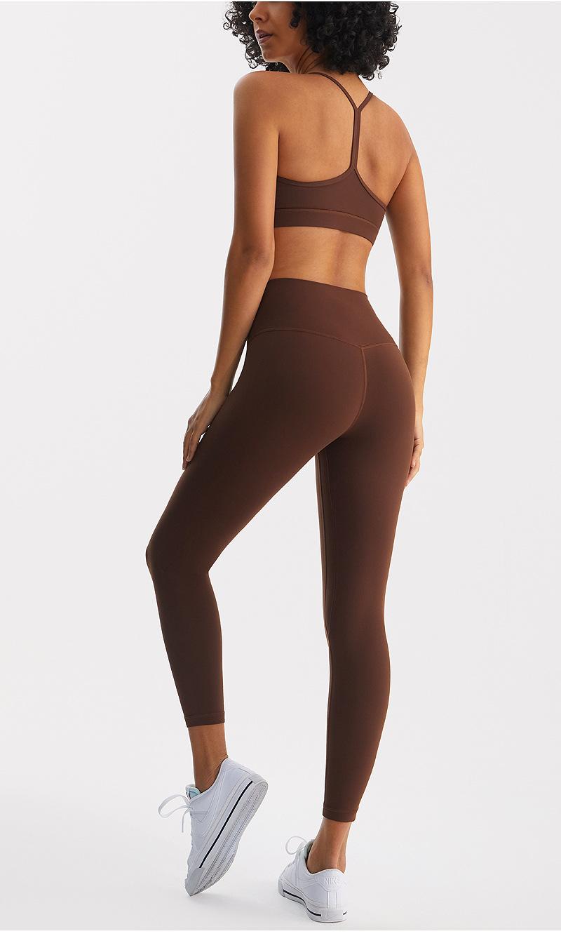 Traje deportivo de yoga para mujer, ropa interior de dos piezas con efecto cepillado nude para levantar la cadera, secado rápido, transpirable, para correr al aire libre y hacer ejercicio.