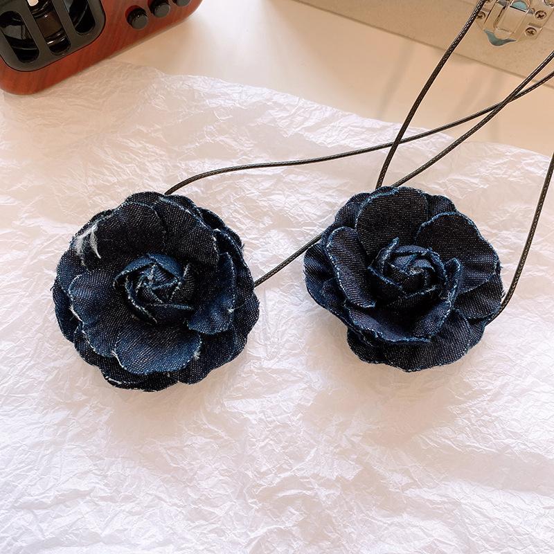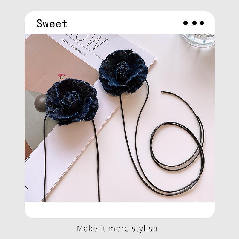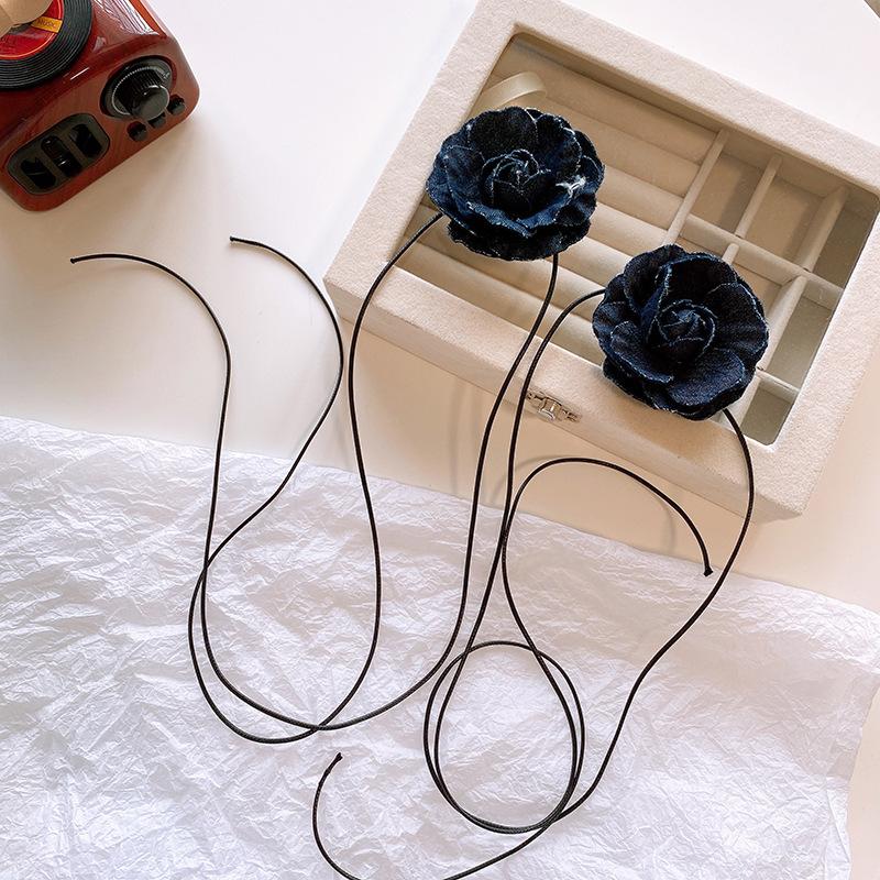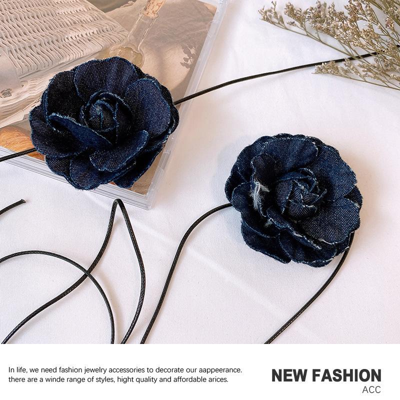 Collar de flor de rosa de hechicera azul para mujer, collar ligero de lujo, cadena de clavícula, collar, gargantilla, accesorios para el cuello