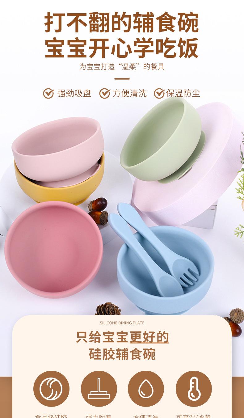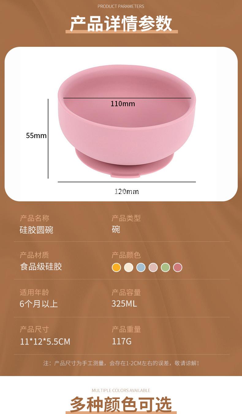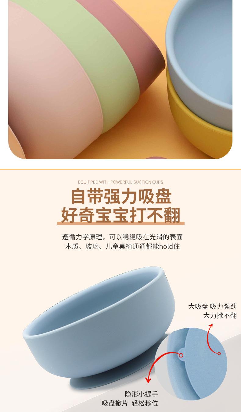 Cuenco complementario de silicona de grado alimenticio especial transfronterizo para niños, vajilla de alimentación para bebés con ventosa, cuenco redondo antideslizante