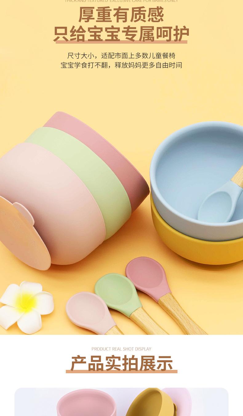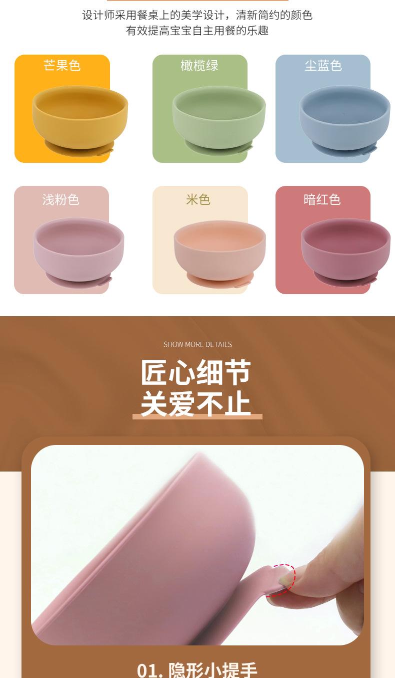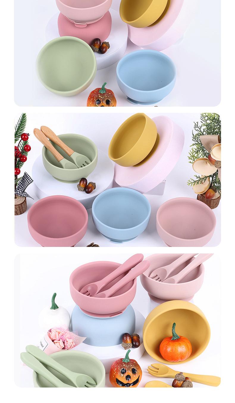 Cuenco complementario de silicona de grado alimenticio especial transfronterizo para niños, vajilla de alimentación para bebés con ventosa, cuenco redondo antideslizante