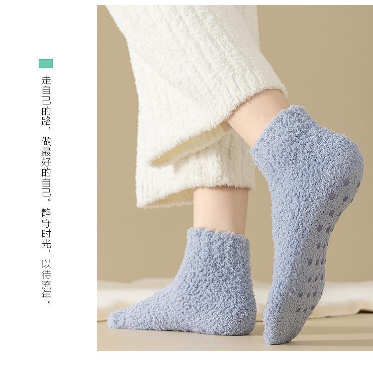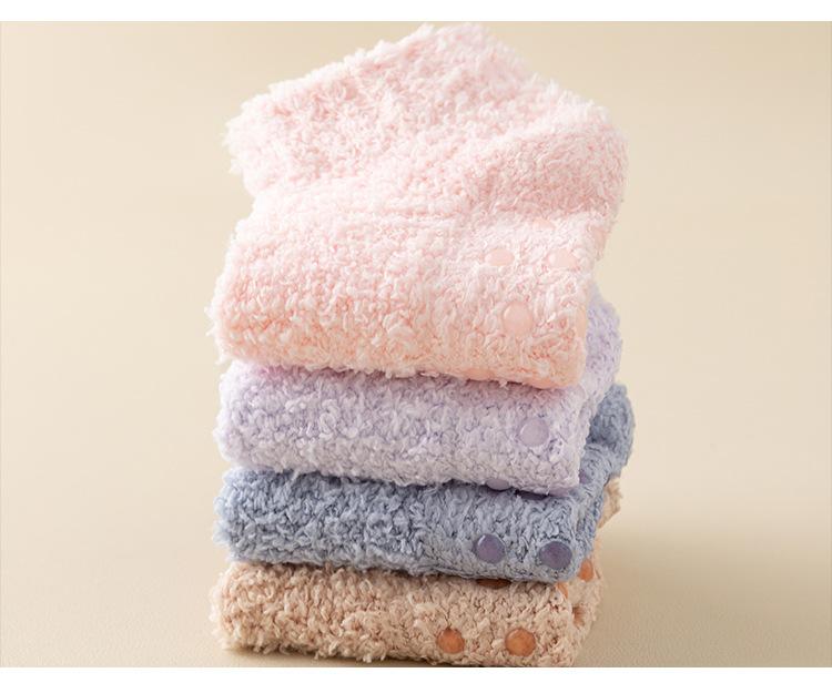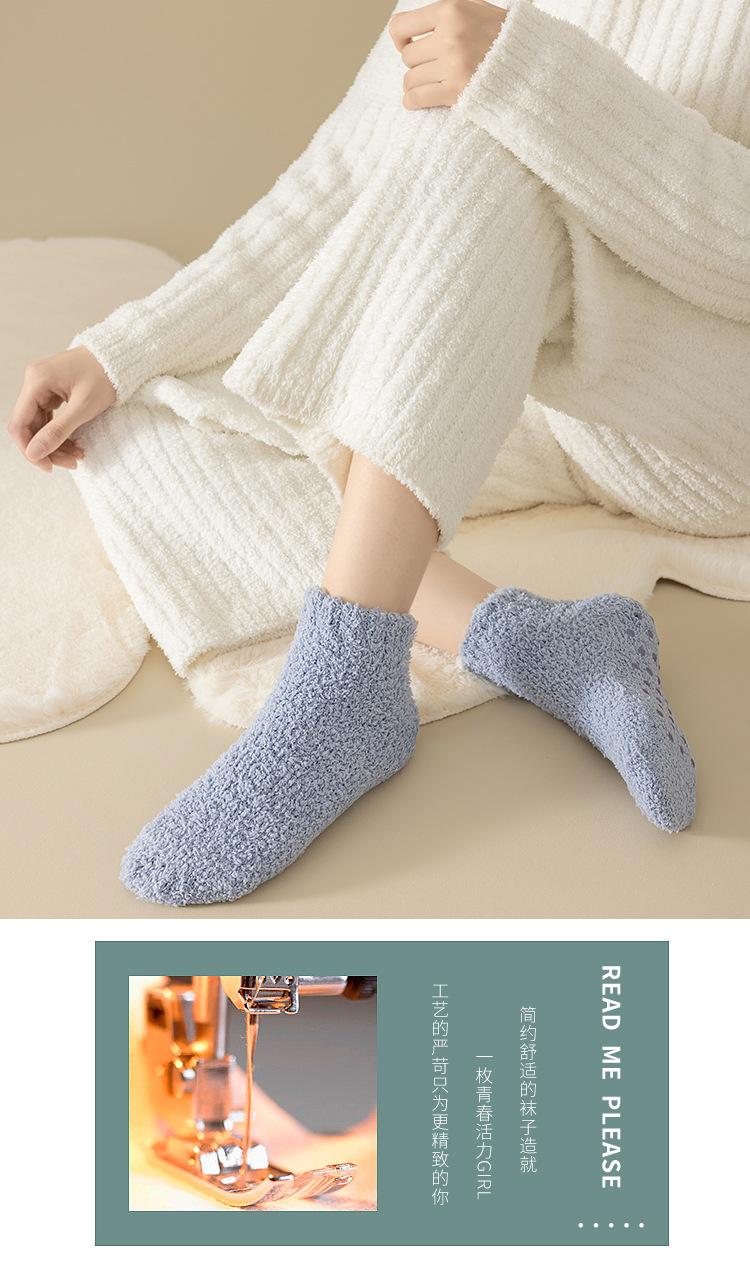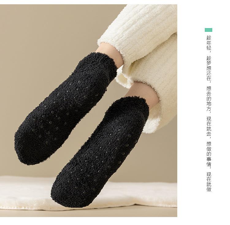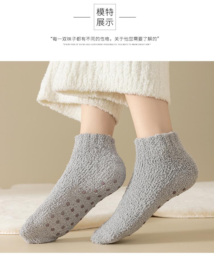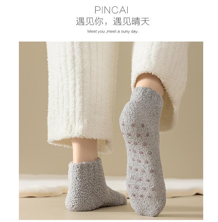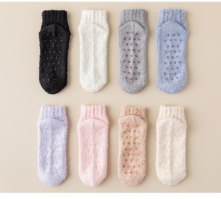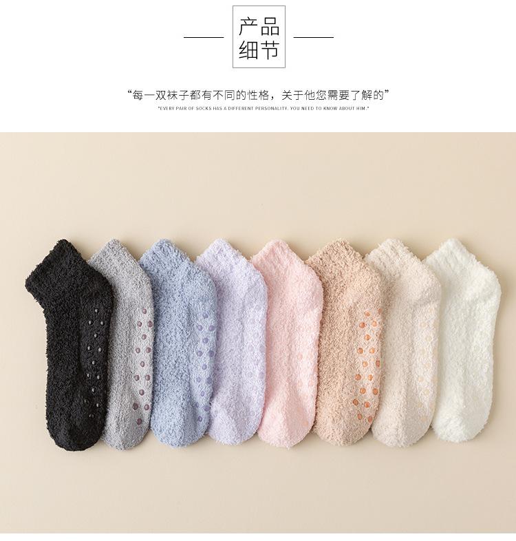 Calcetines de barco dispensadores antideslizantes color caramelo para mujer, calcetines gruesos de invierno para el piso, calcetines pantufla de color sólido, calcetines para casa de forro polar coral