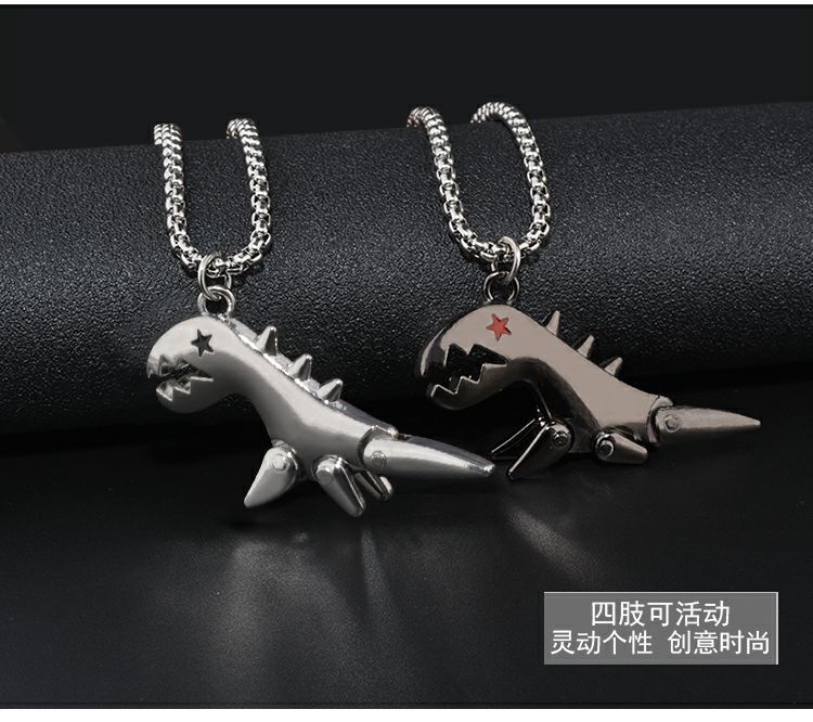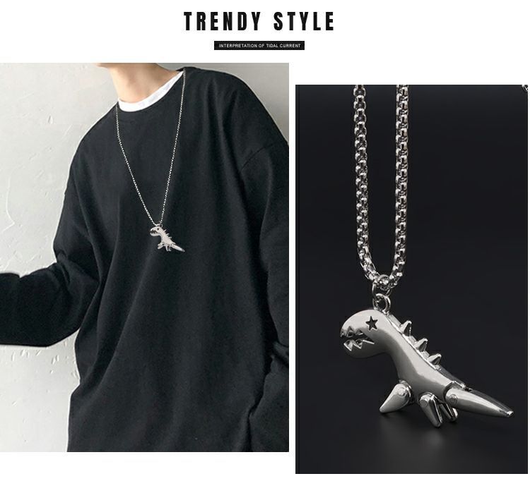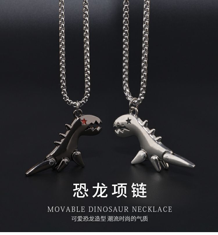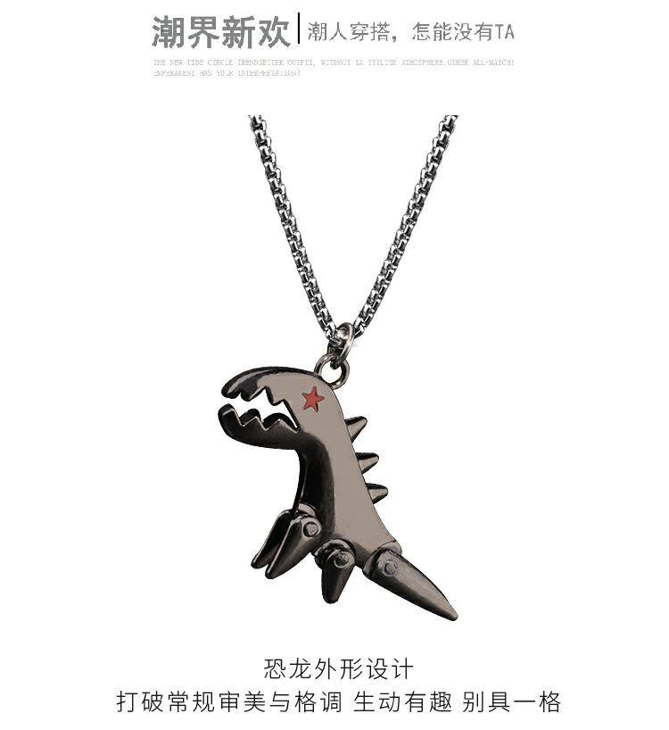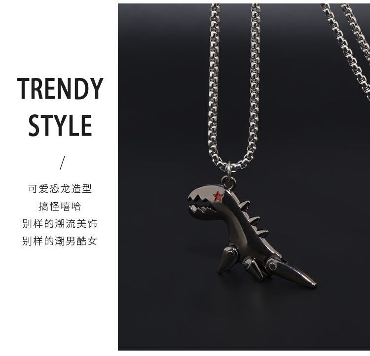 Collar con colgante de dinosaurio pequeño, accesorios de hip hop para hombres y mujeres, colgante con personalidad, cadena de suéter para estudiantes, regalo para pareja y novia.