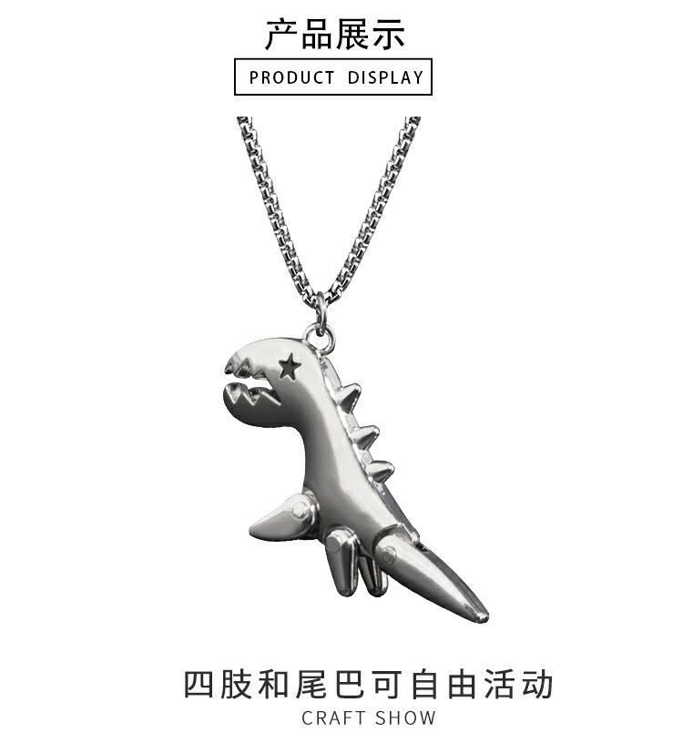 Silver small dinosaur -60cm titanium steel chain, Black small dinosaur -60cm titanium steel chain, Silver smal...