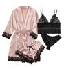 Pijama nuevo de mujer europeo y americano, conjunto de 4 piezas, pijama de tirantes, traje de verano para mujer con camisón, venta al por mayor de camisones