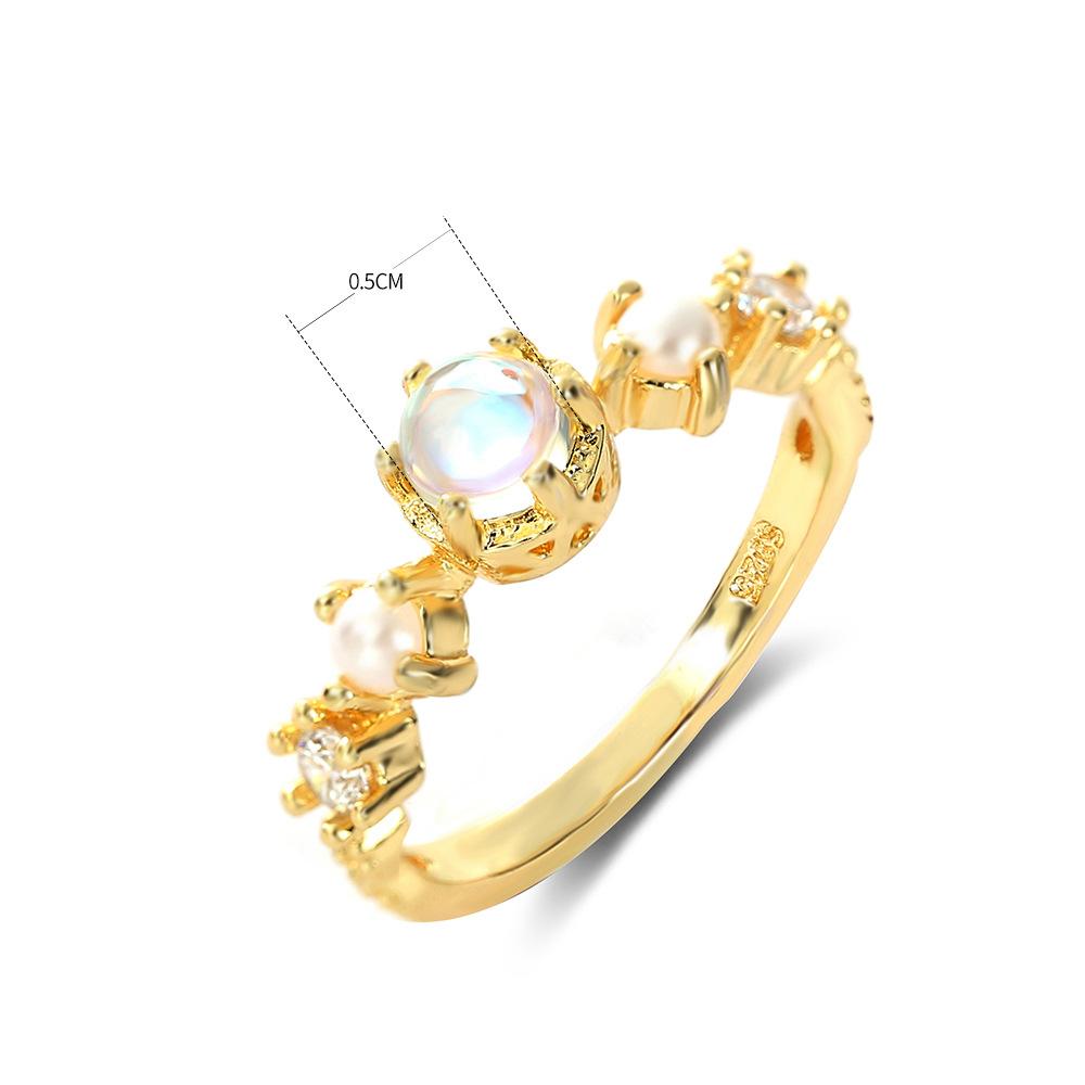 Anillo de perla de piedra lunar blanca nueva más vendido de Zhen Rong, anillo de compromiso chapado en oro para mujer europea y americana