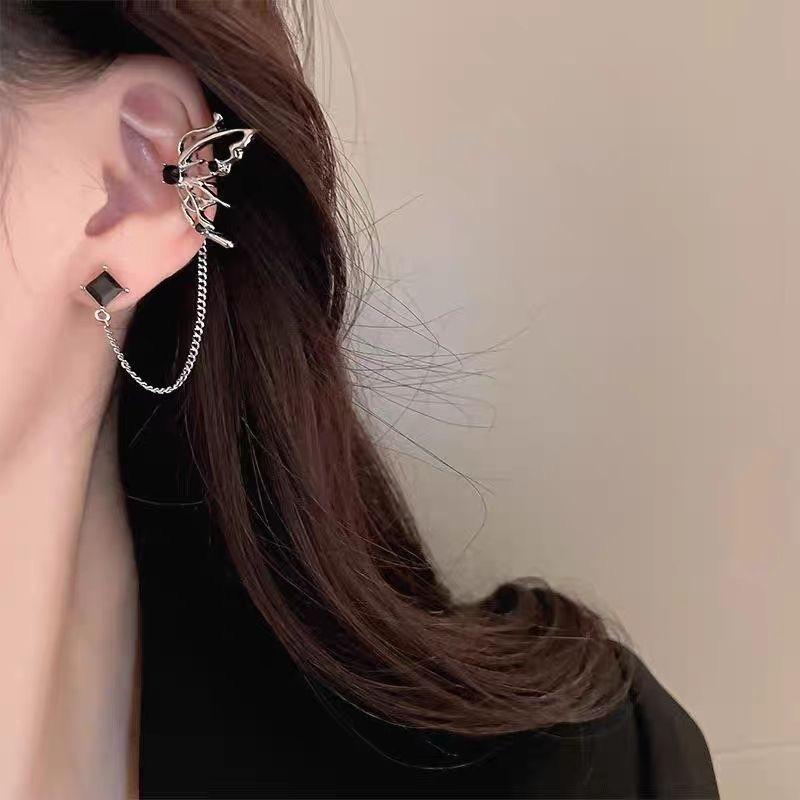 Aretes de Mariposa Hueca de Zirconia Negra para Mujer 2025 Nuevo Estilo Minimalista Puños para la Oreja Aretes Nicho Personalidad