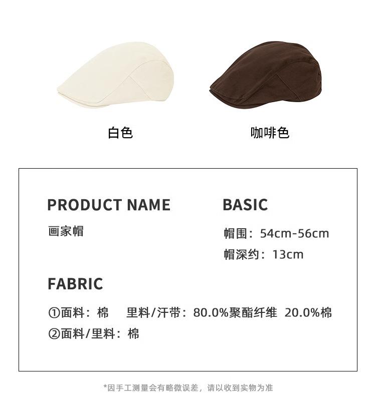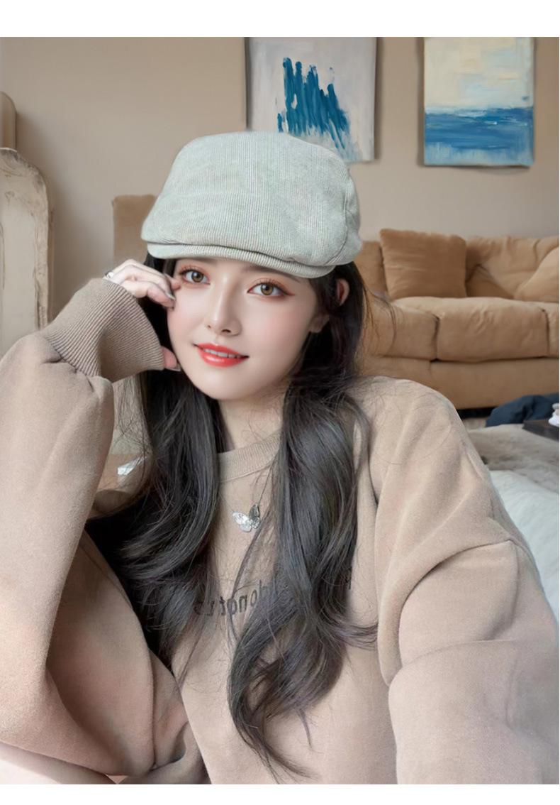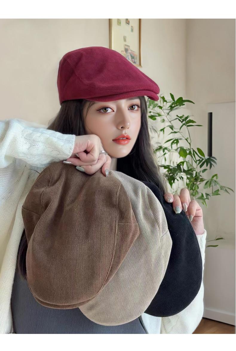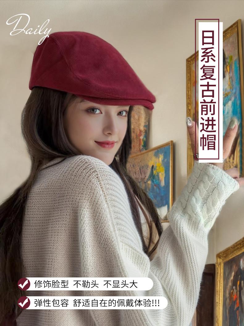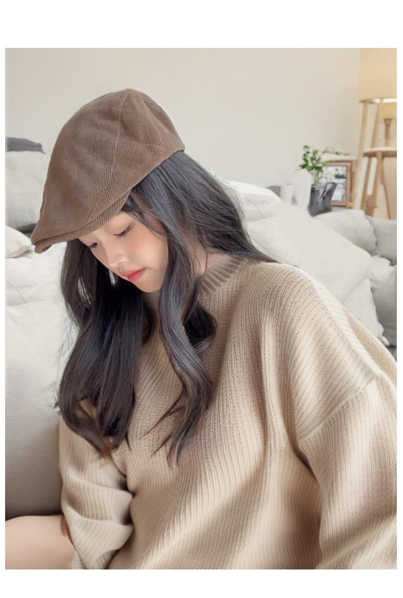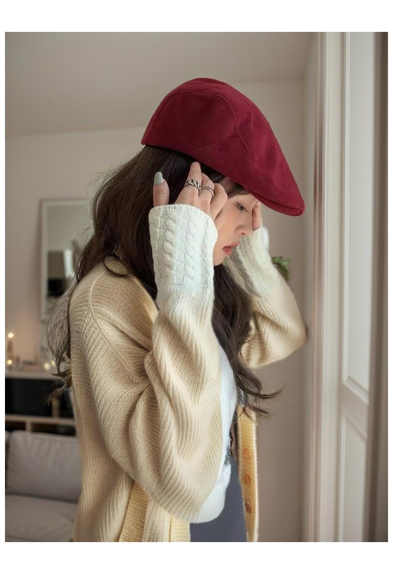 Circunferencia de cabeza grande color sólido combinable cálido boina coreana de alta gama retro japonesa sombrero hacia adelante sombrero de algodón