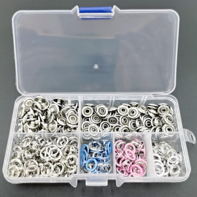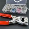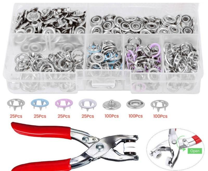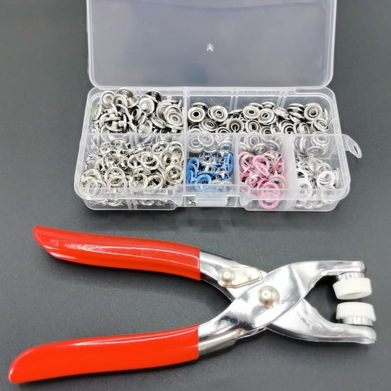 Nombre del producto: 100 juegos de hebillas de cinco garras en 4 colores (plata + azul claro + rosa + blanco) + alicates para herramientas