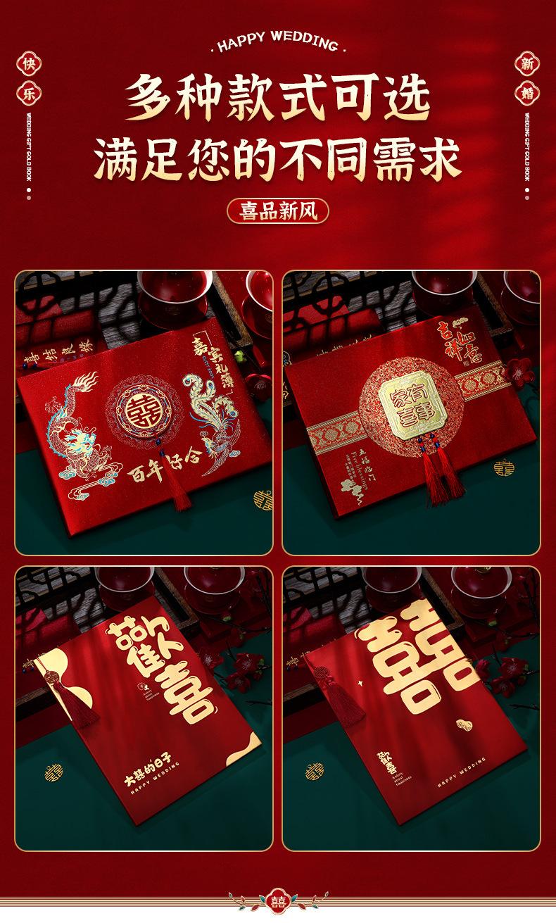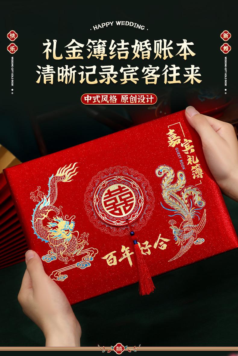 [hard hot stamping] glitter dragon and phoenix double happiness tassel style (can write 384 people)