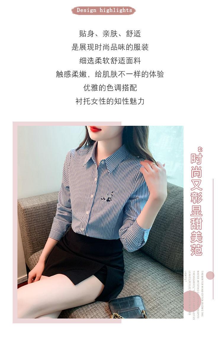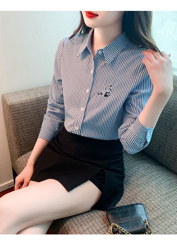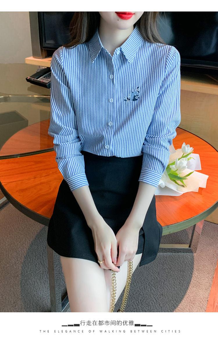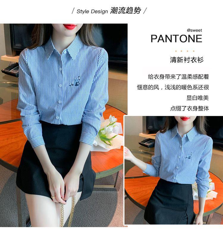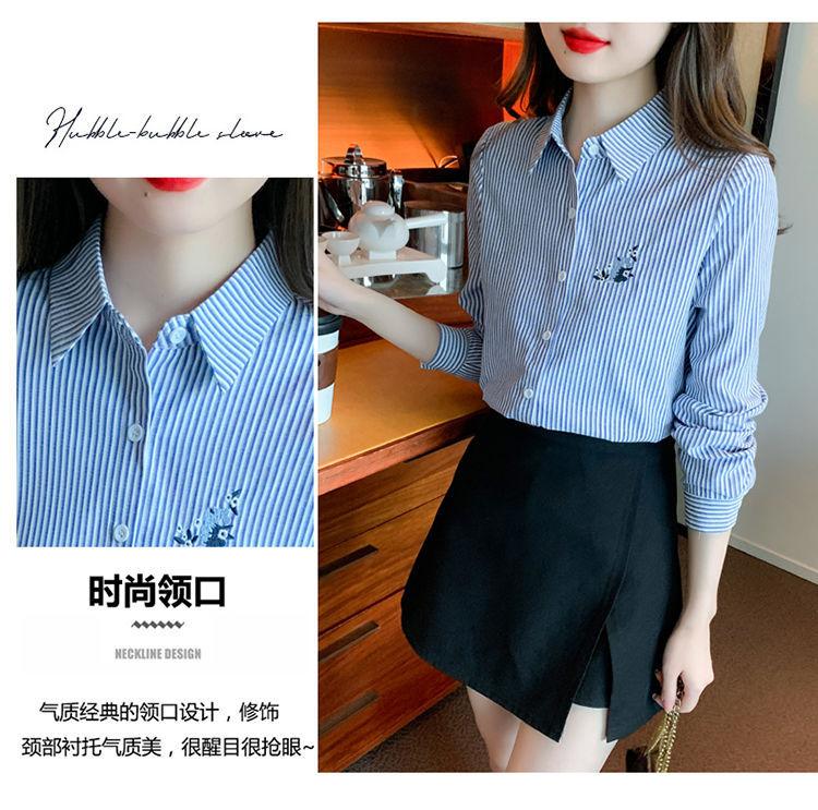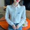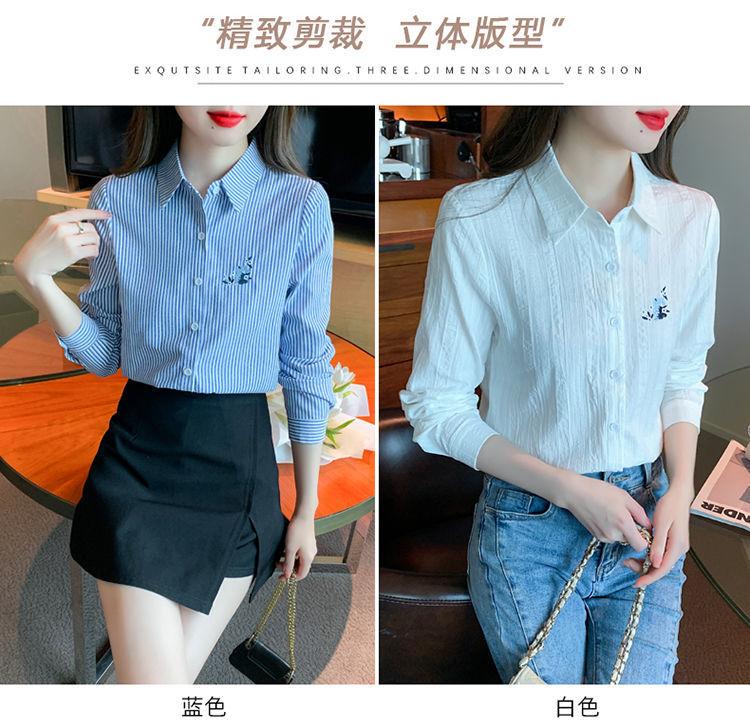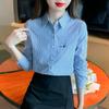 Primavera y otoño 2024 Nueva camisa a rayas versátil de manga larga bordada para mujer, blusa casual elegante de estilo occidental