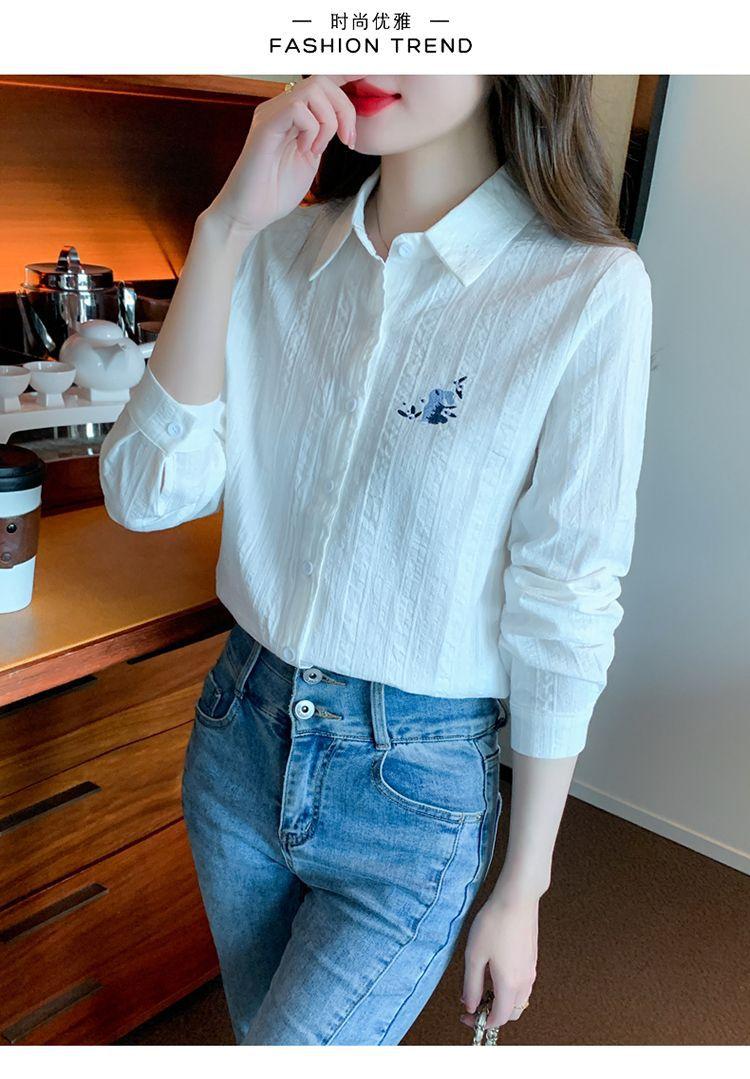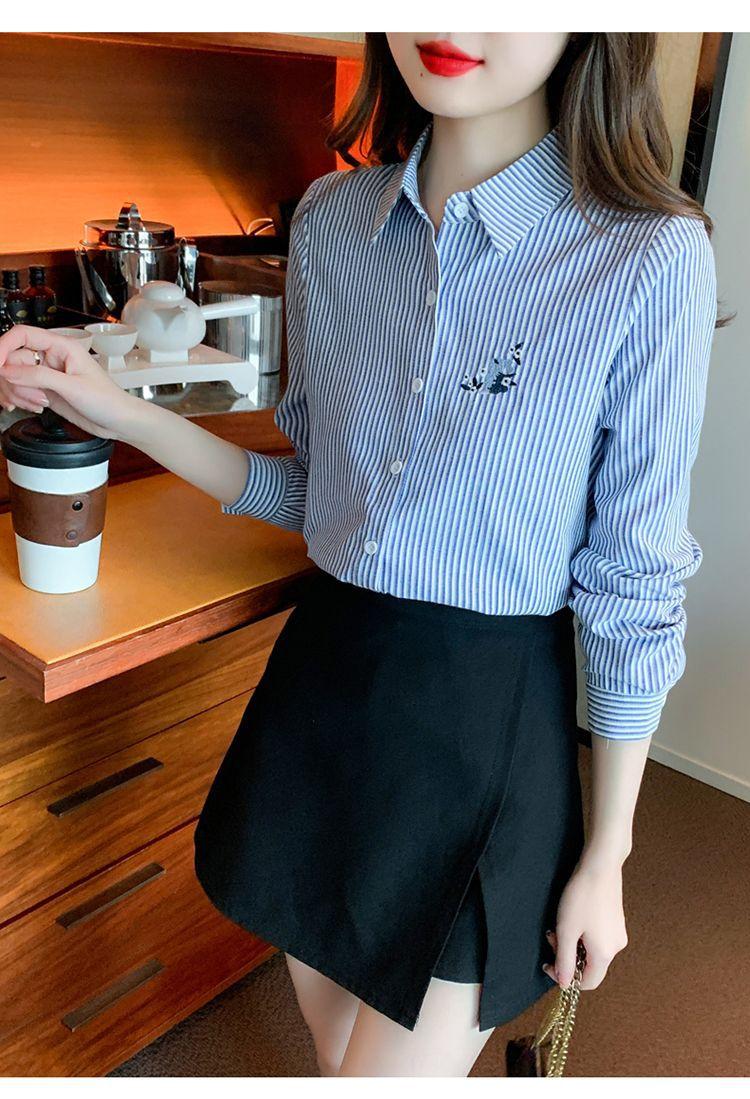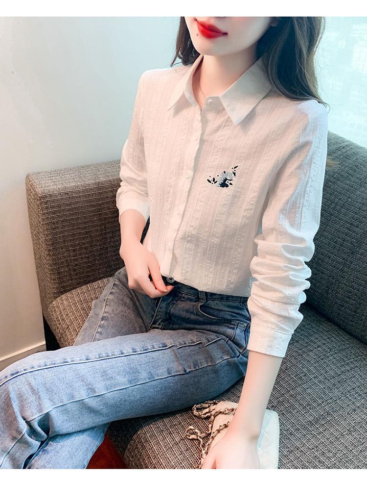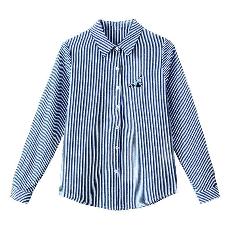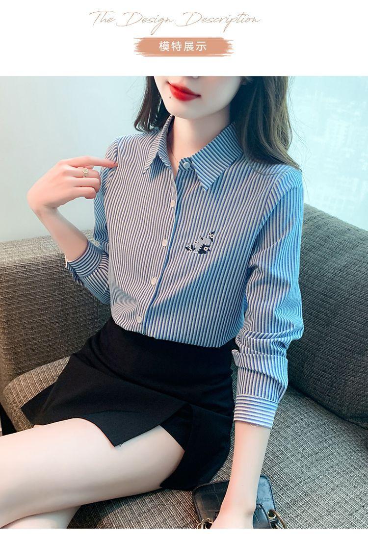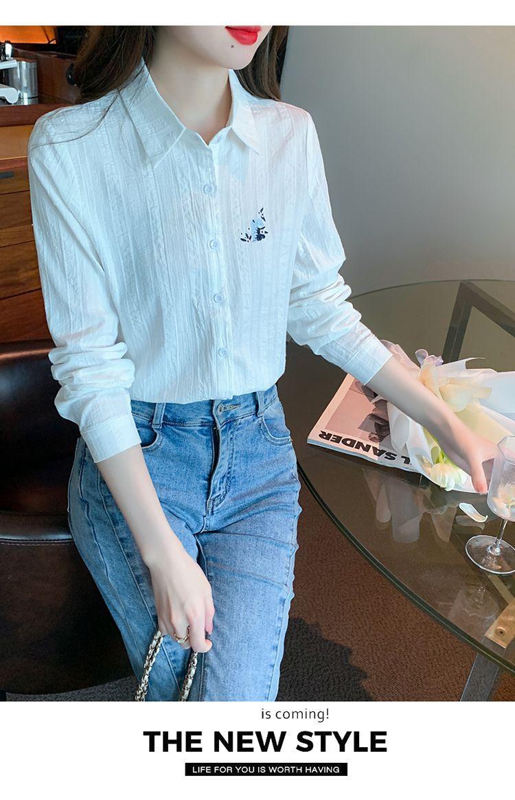 Primavera y otoño 2024 Nueva camisa a rayas versátil de manga larga bordada para mujer, blusa casual elegante de estilo occidental