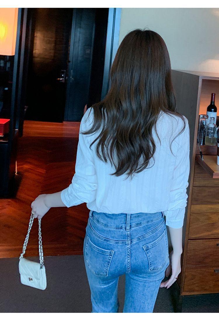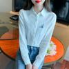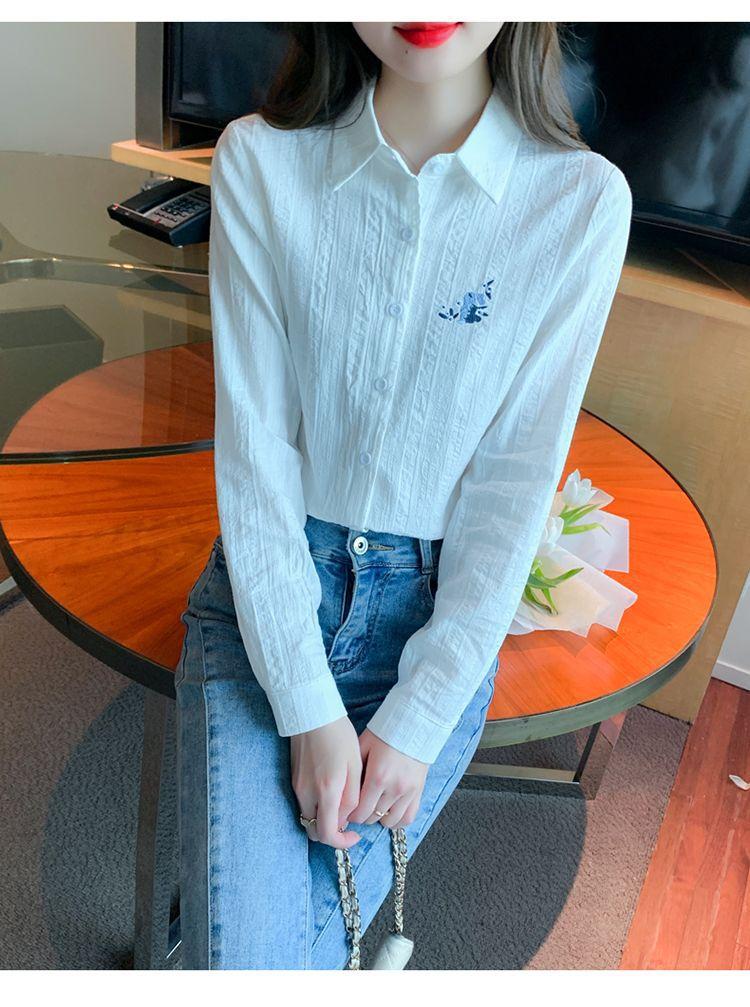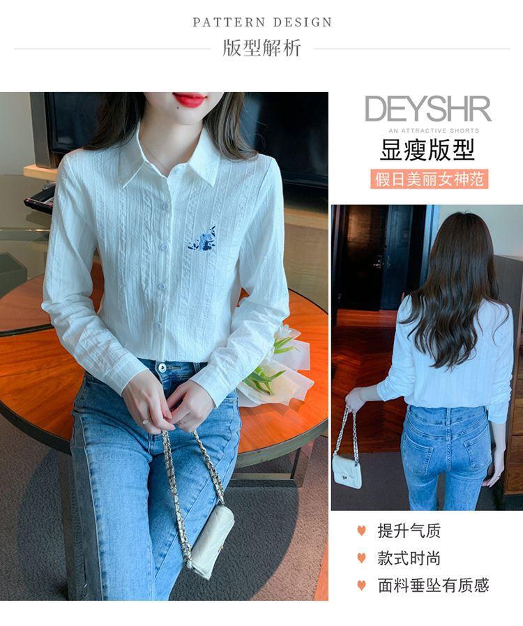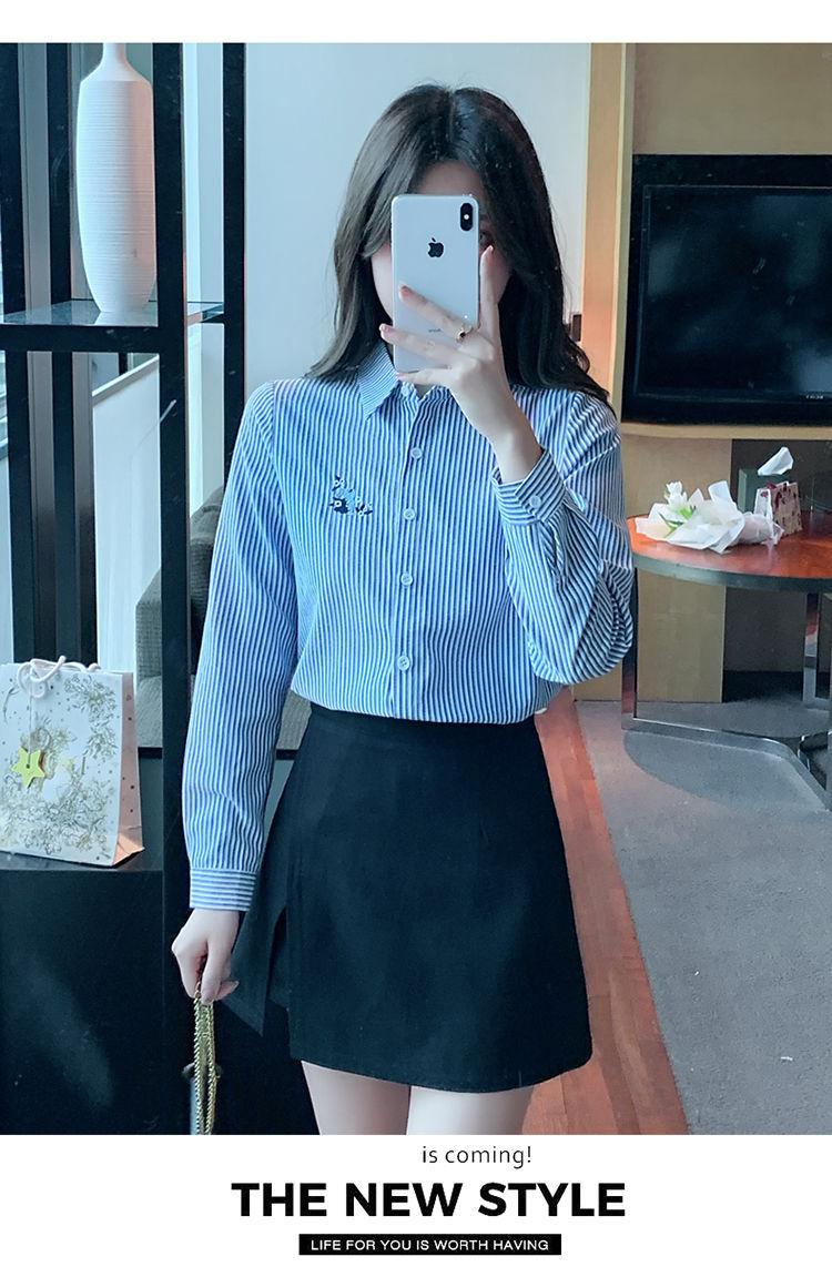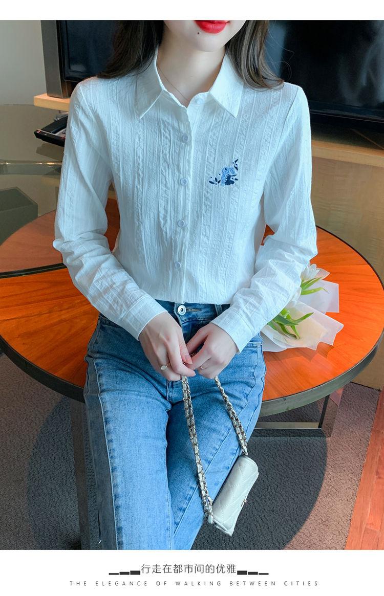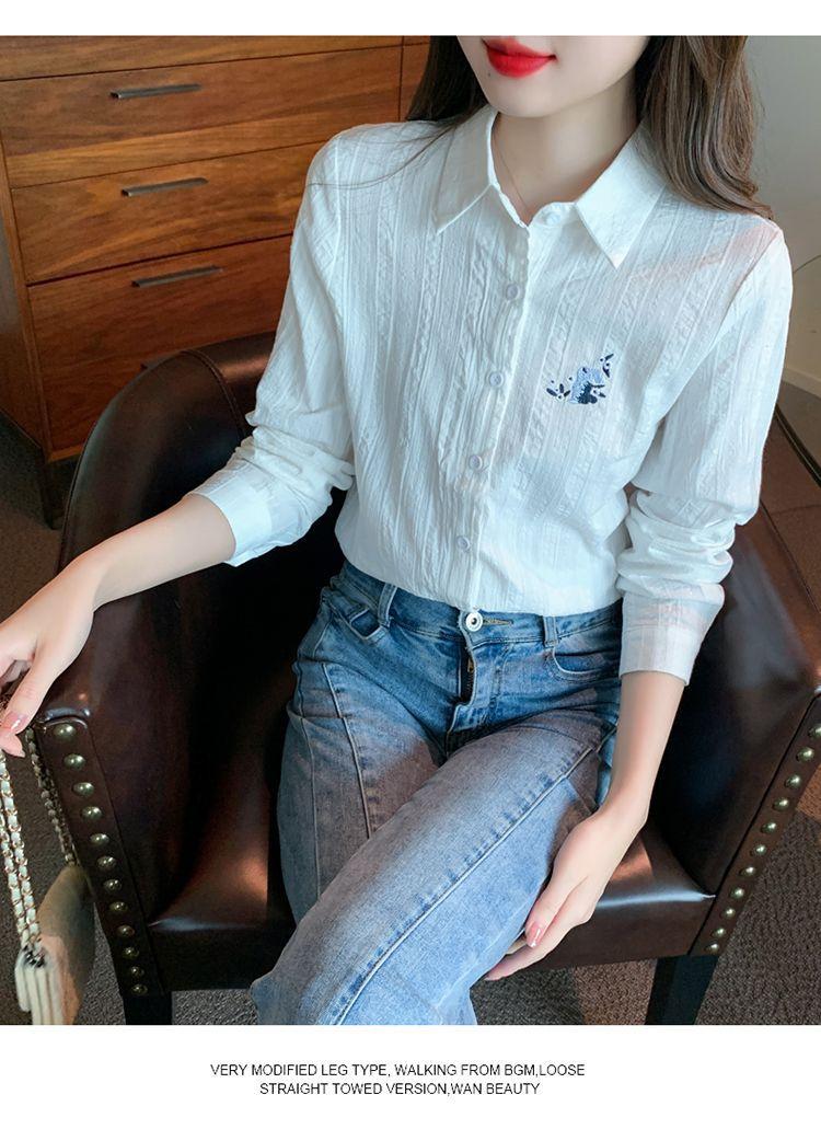 Primavera y otoño 2024 Nueva camisa a rayas versátil de manga larga bordada para mujer, blusa casual elegante de estilo occidental