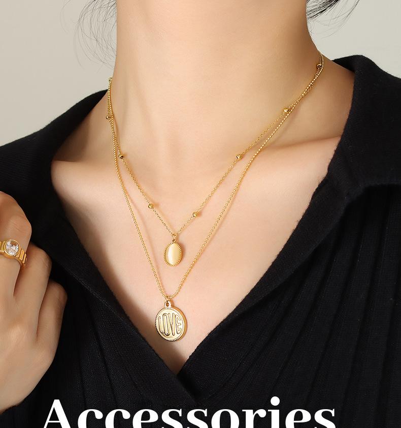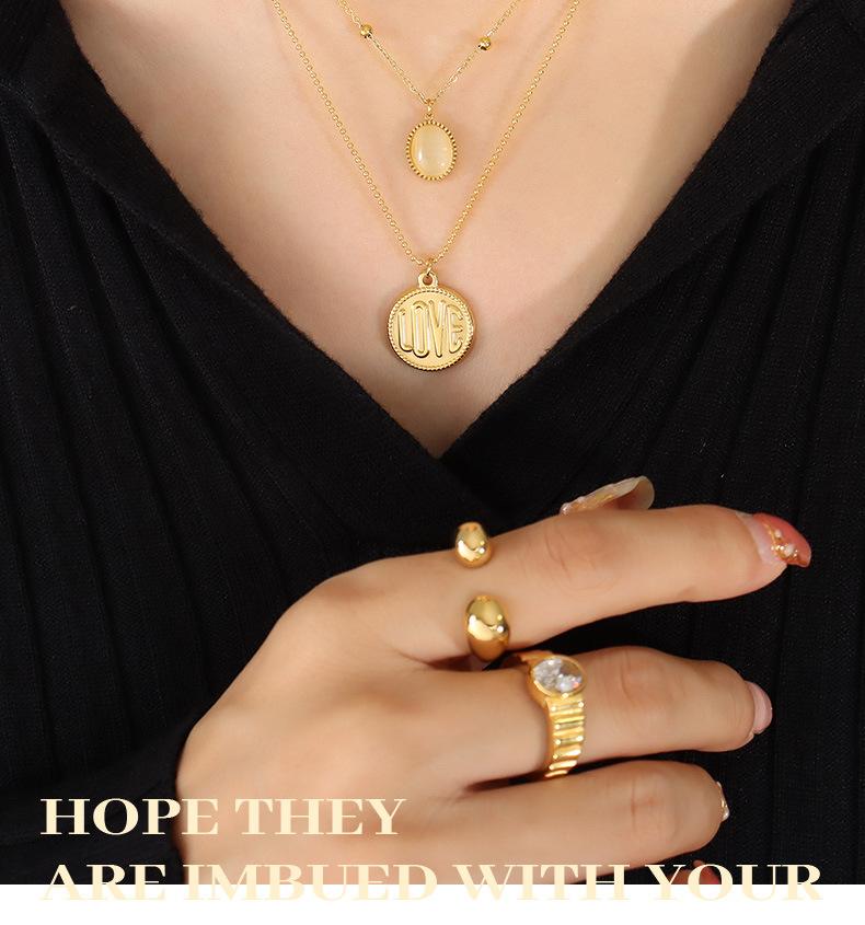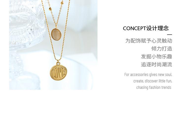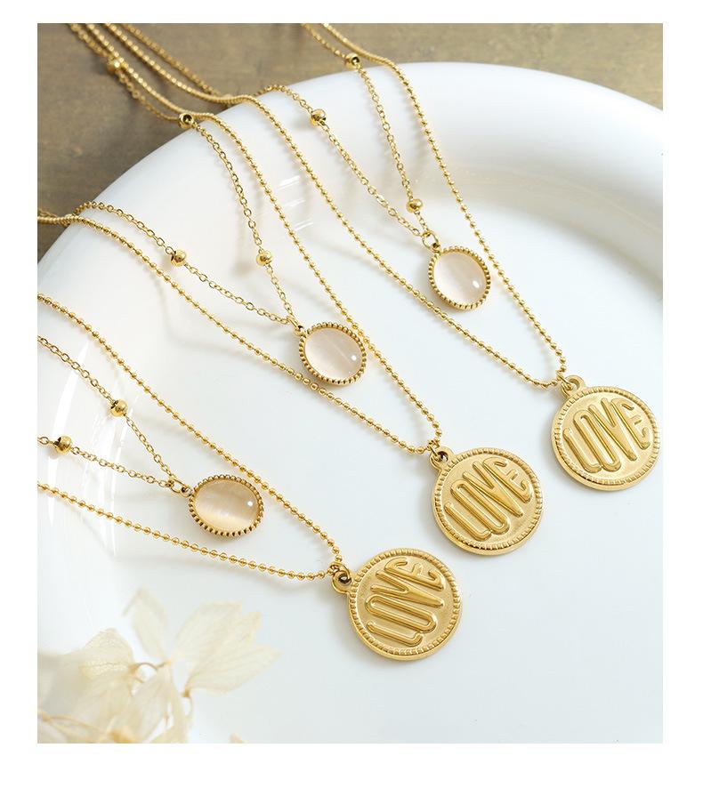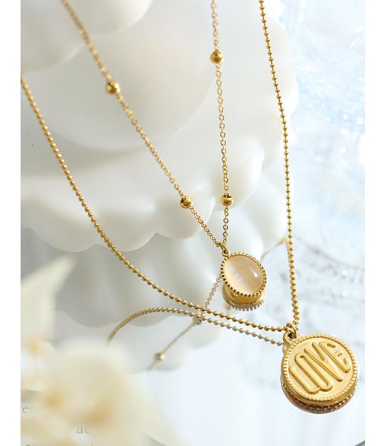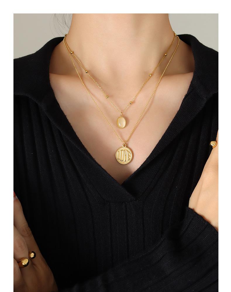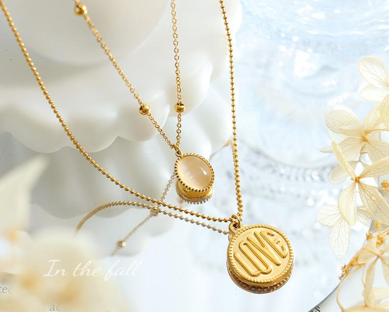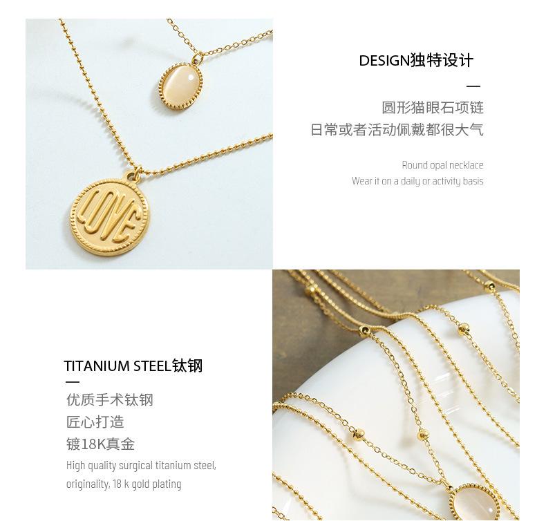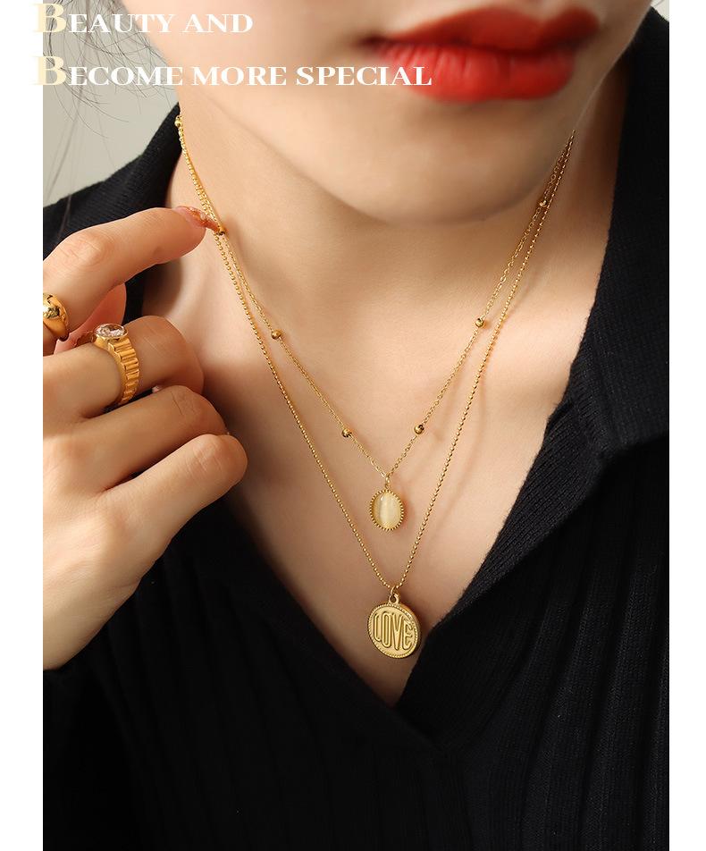 Collar sencillo Joker LOVE de doble capa con ópalo redondo, ideal para usar en otoño e invierno, con cadena para el cabello de acero de titanio sin color.