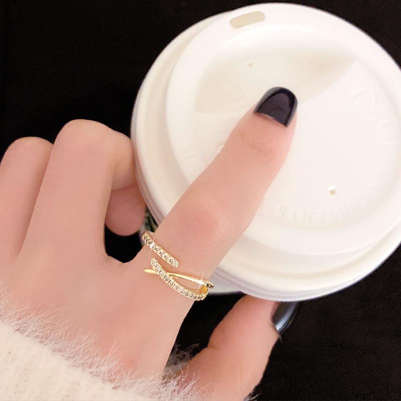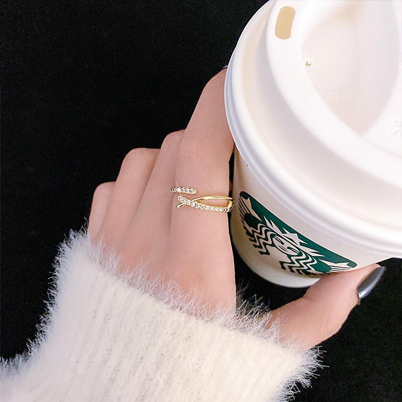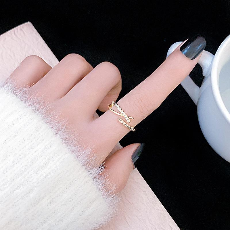 Exquisito Anillo de Moda Cruz Micro-incrustado Zircón para Mujer Super Flash Estilo Japonés y Coreano Versátil Anillo para Dedo Diseño Simple Anillo Nicho