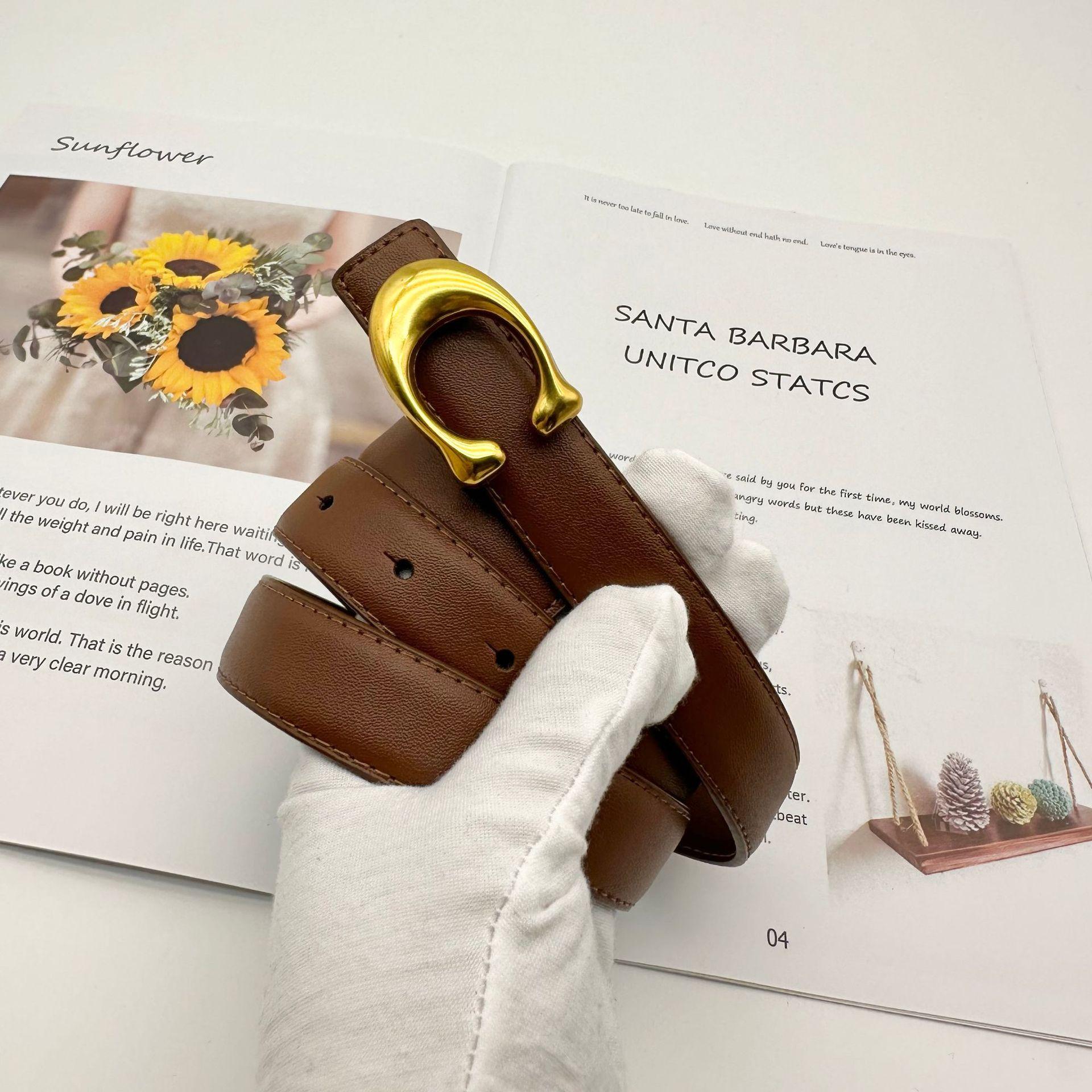 Moda directa de fábrica tendencia coreana cinturón de cuero con letra C cinturón de dama con hebilla lisa rojo de internet en stock al por mayor