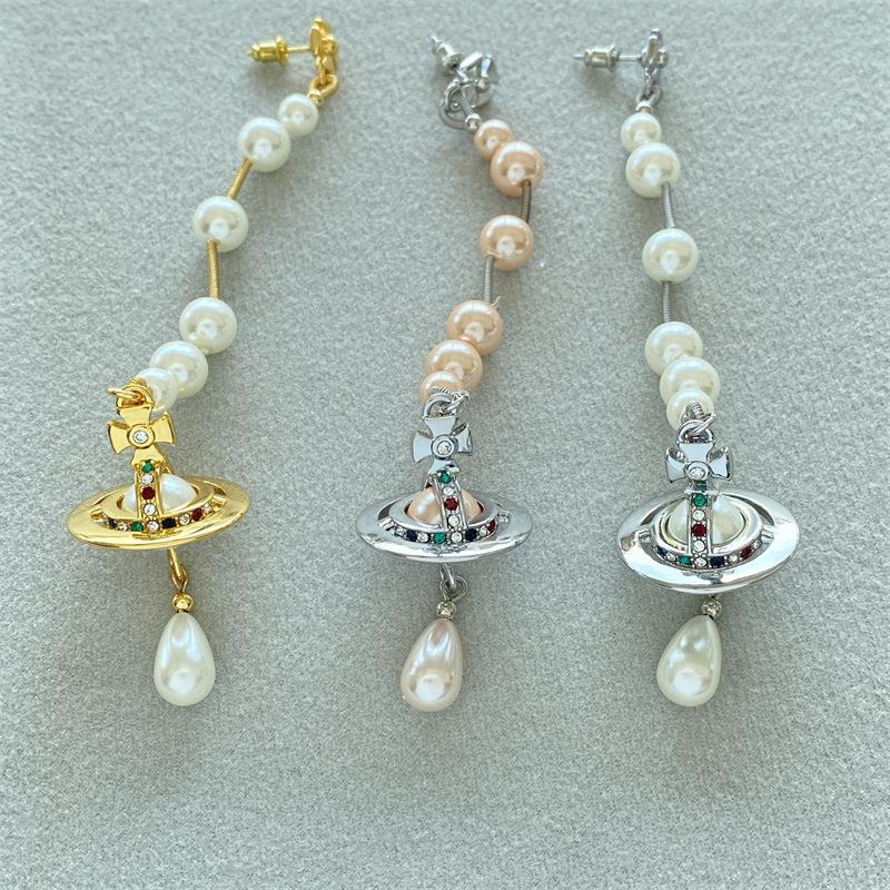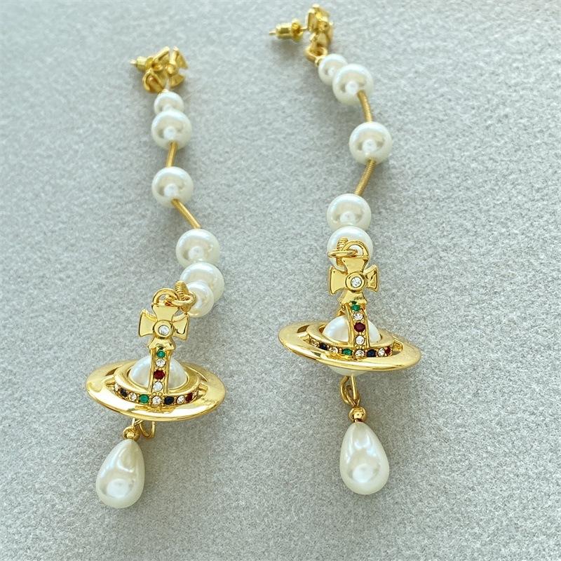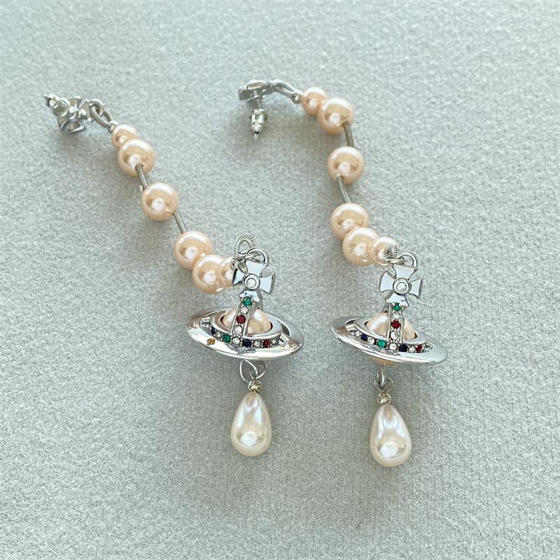 Pendientes de borlas con forma de gota de agua de Saturno, elegantes, estéreo, de estilo europeo y americano, de lujo, ligeros y largos, para mujer.