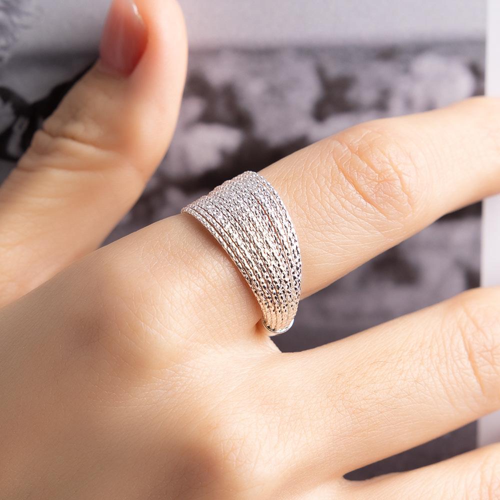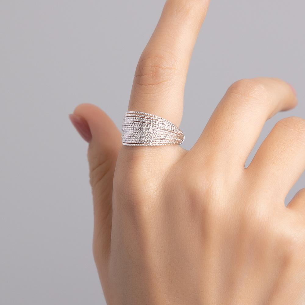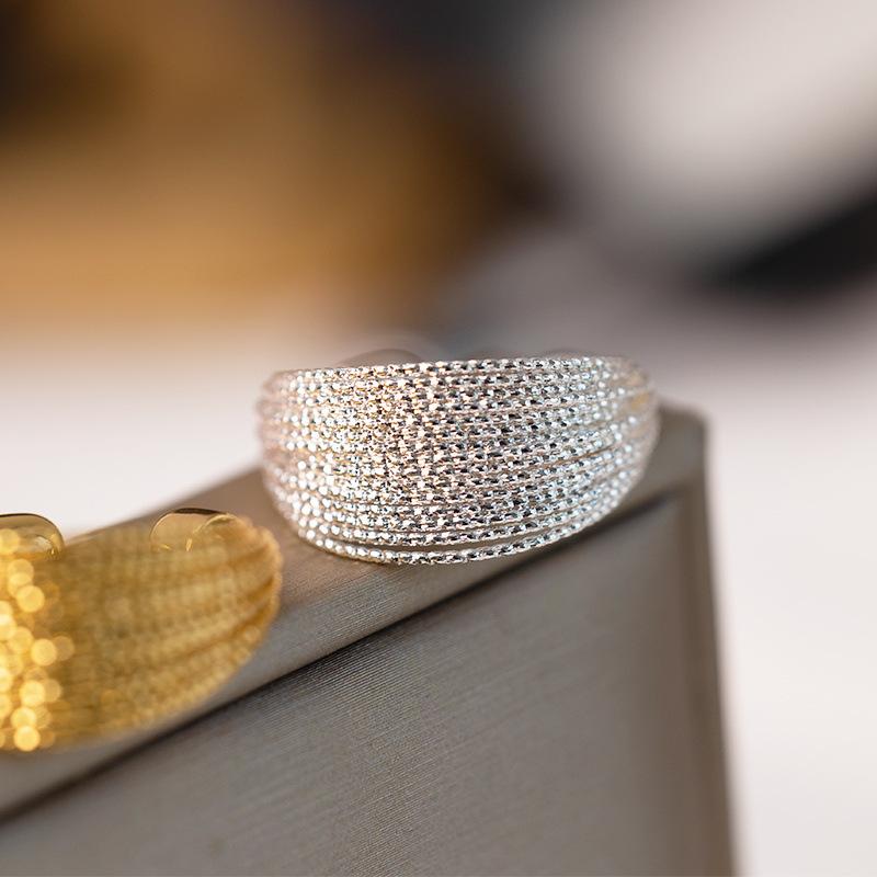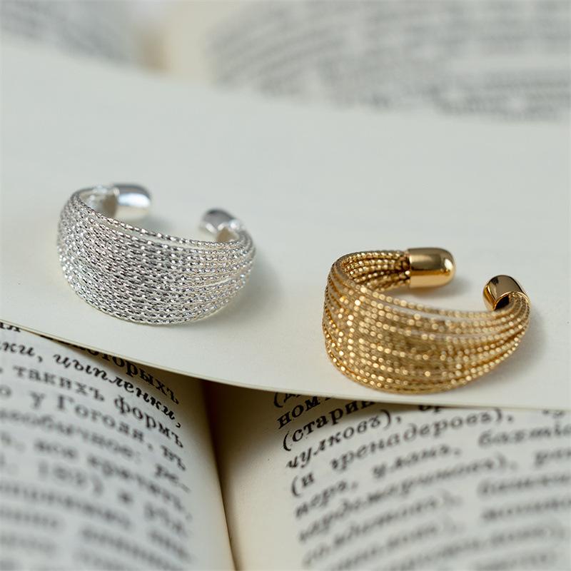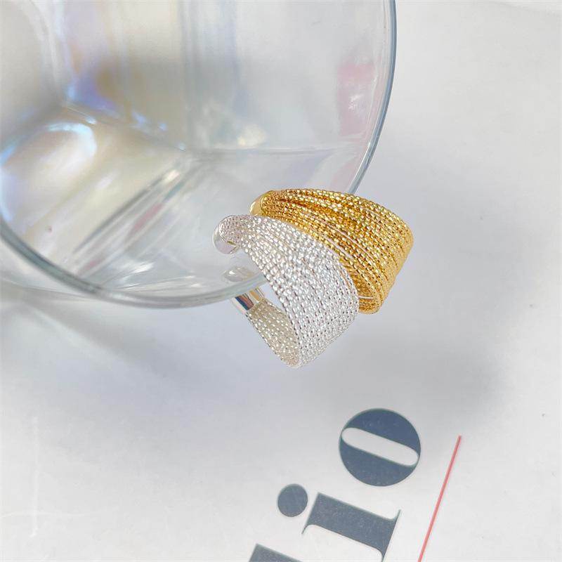 Anillo abierto multicapa de lujo ligero, personalidad europea y americana, diseño de nicho que combina con todo, temperamento moderno, anillo ajustable móvil para mujer