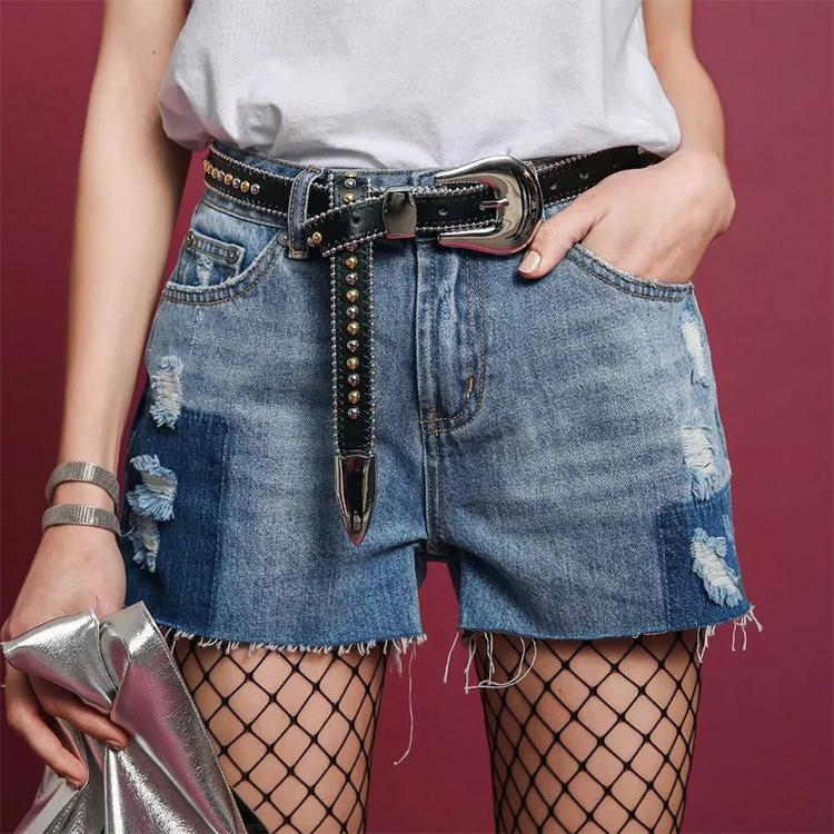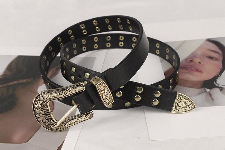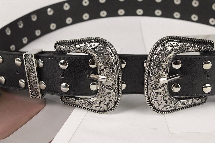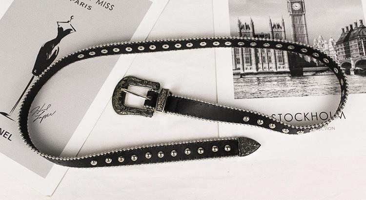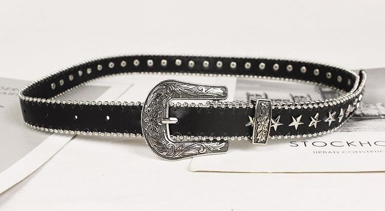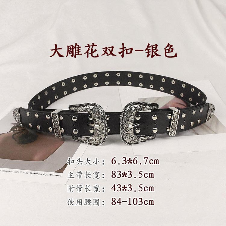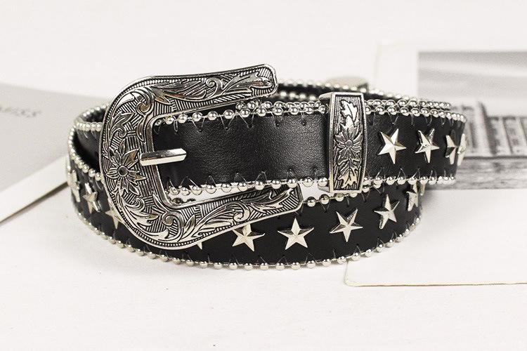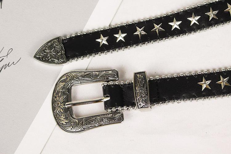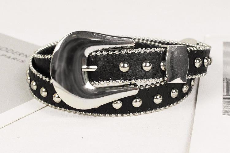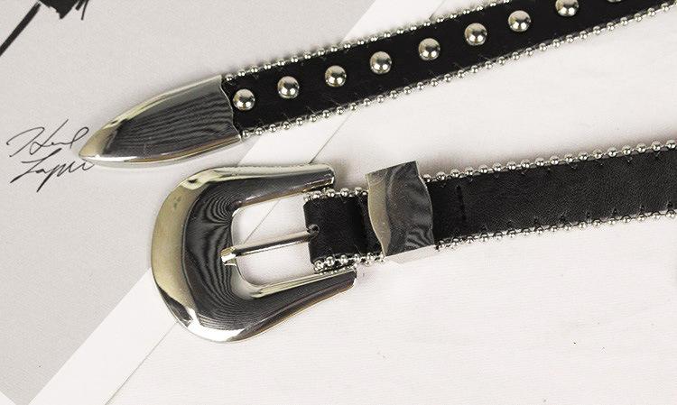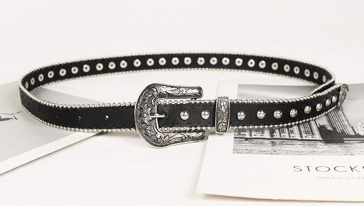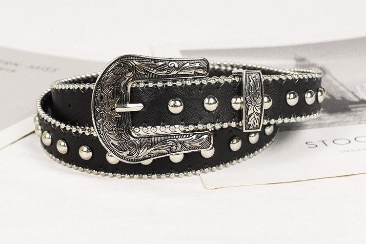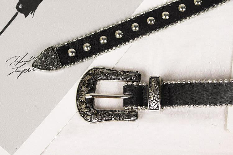 Hebilla tallada con remaches plateados y bordes con cuentas Peso: 0.132kg