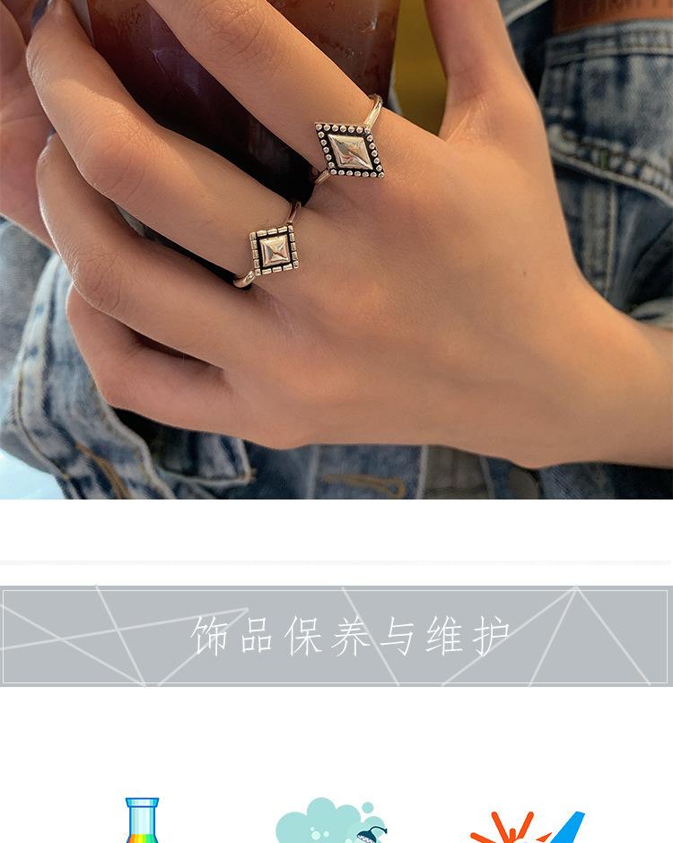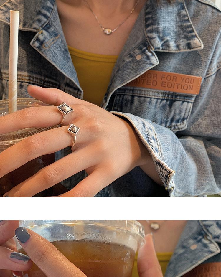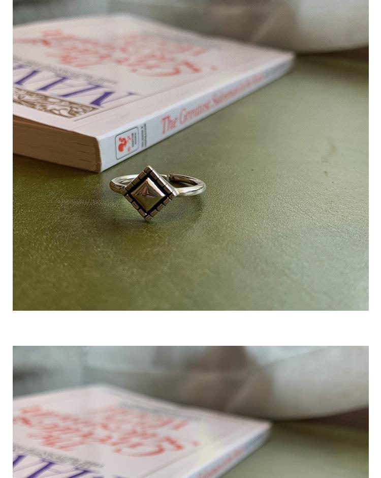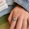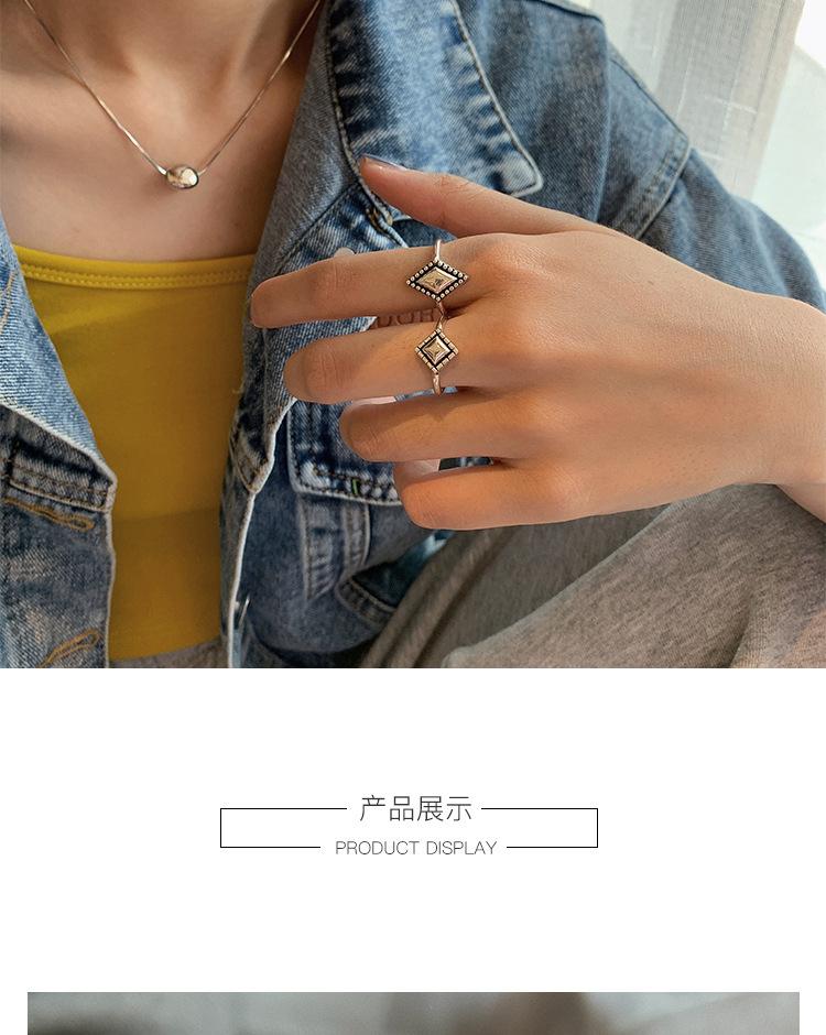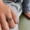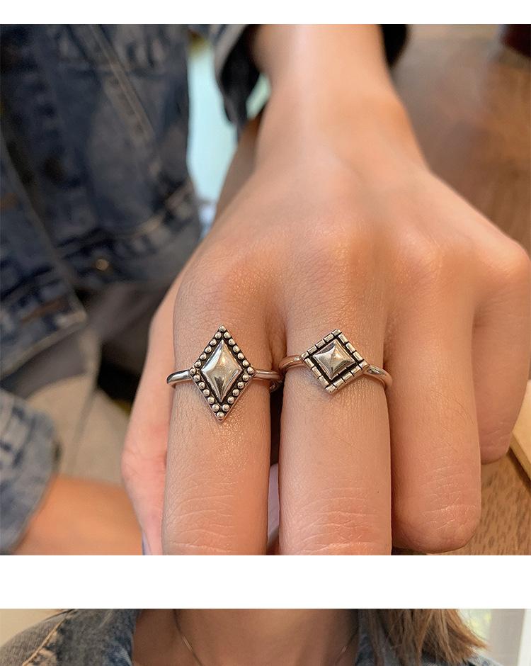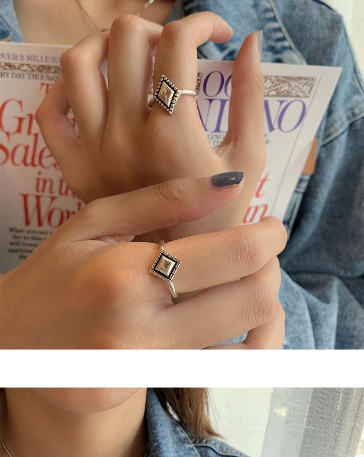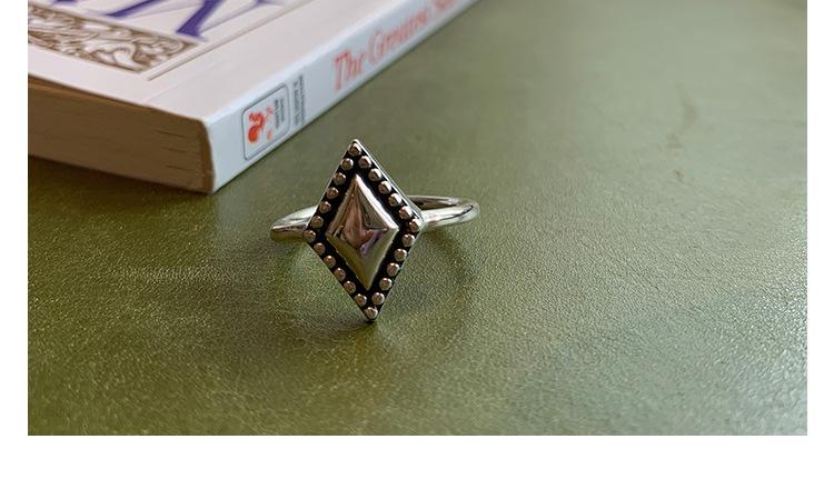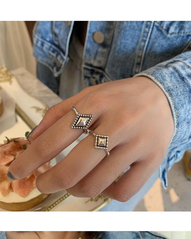 Anillo Retro Romboidal Estéreo Estilo K para Mujer Chapado en Plata 925 Ins Europeo y Americano Simple Elegante Estudiante Anillo Abierto para Dedo Índice Tendencia