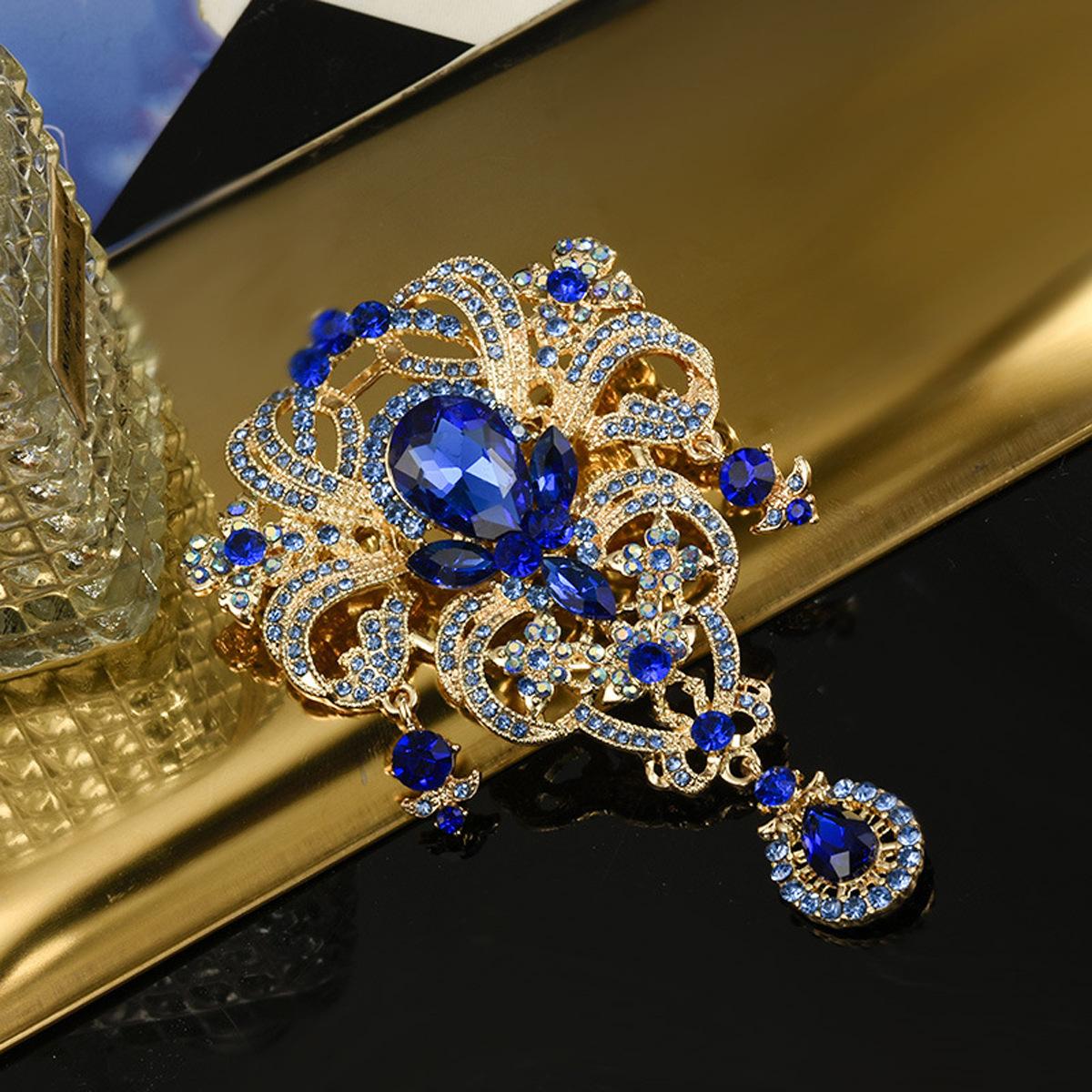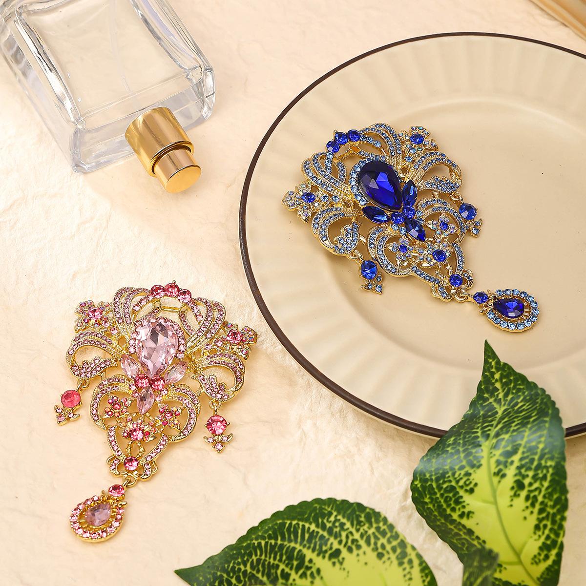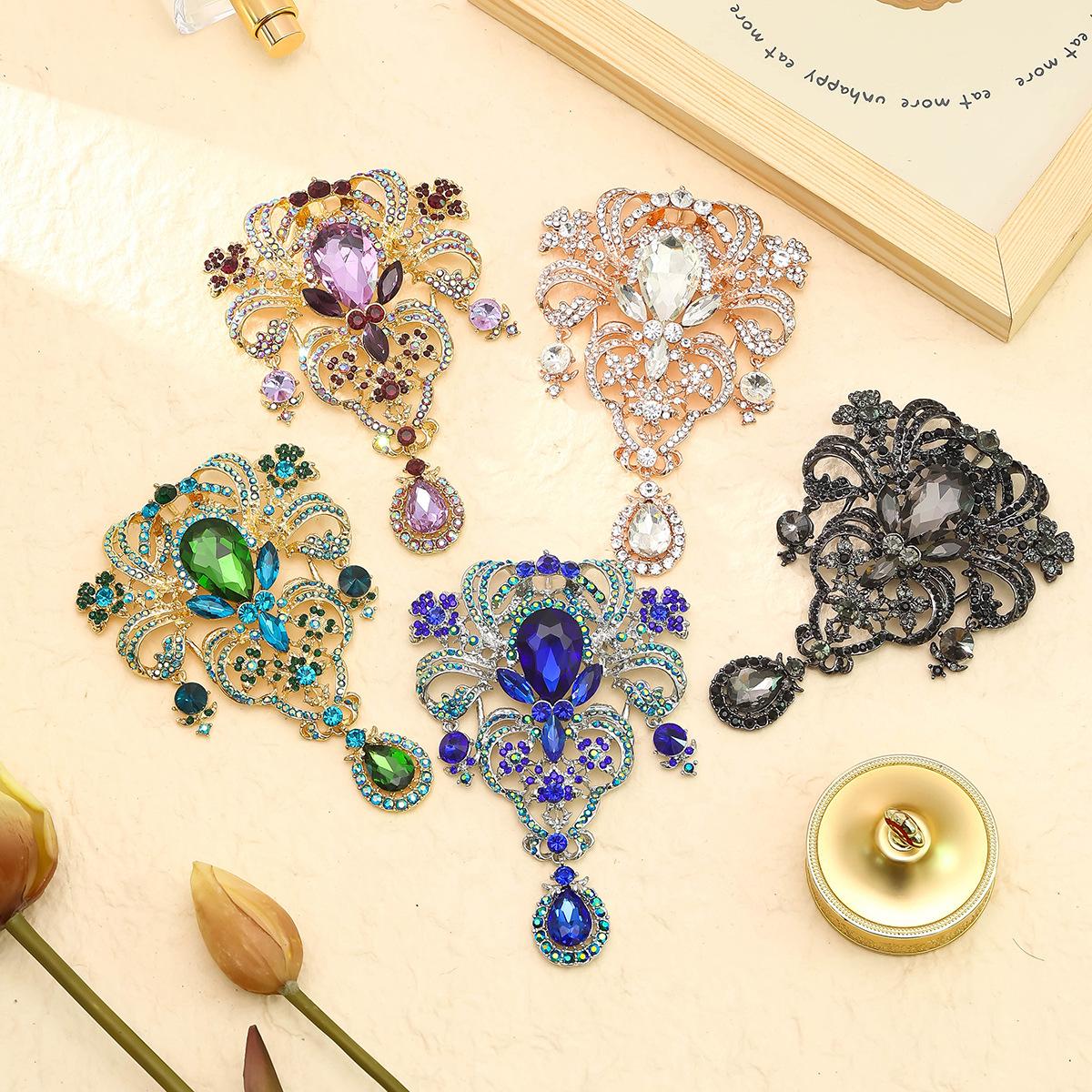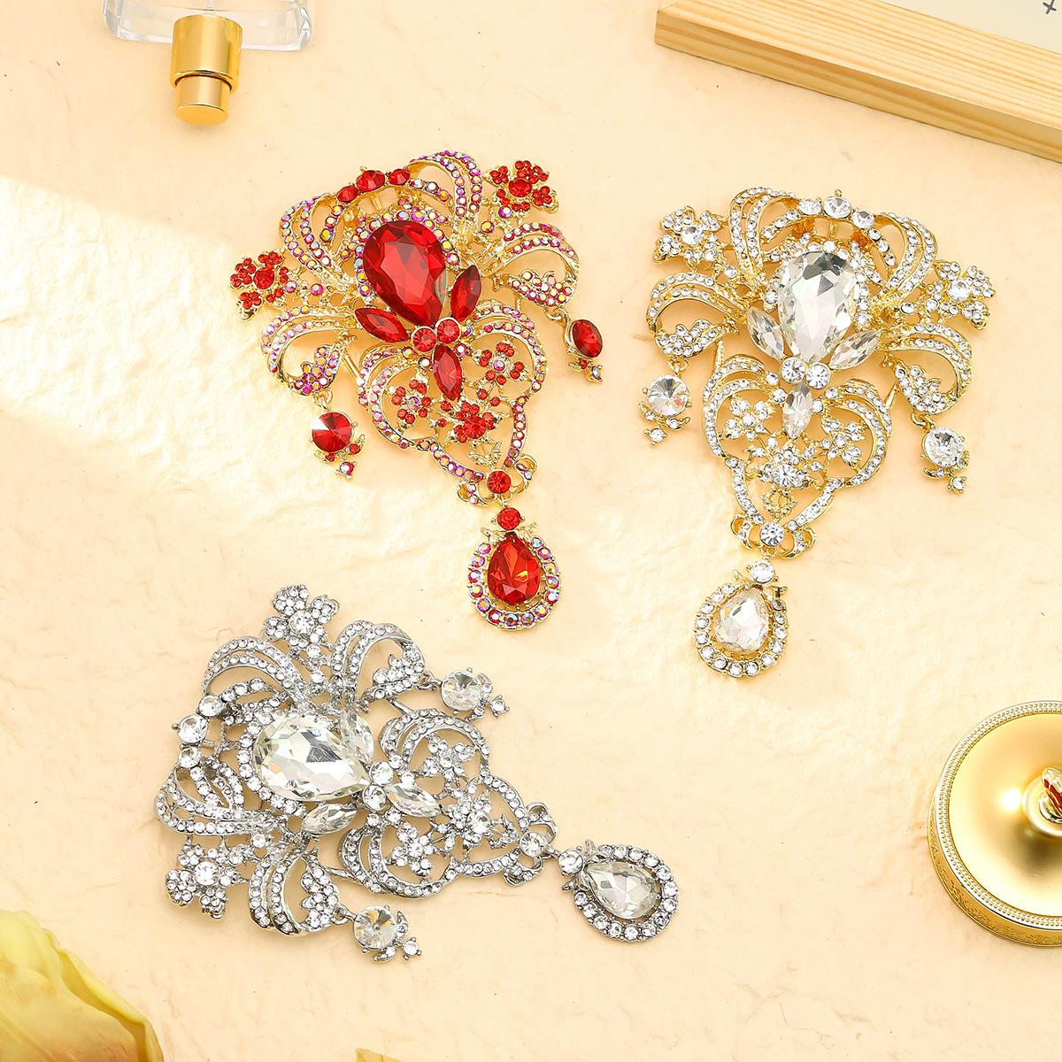 Nuevo broche creativo de gota de agua europeo y americano, colgante de diamantes de alta gama, alfiler de ramillete, joyería de gran venta transfronteriza europea y americana