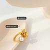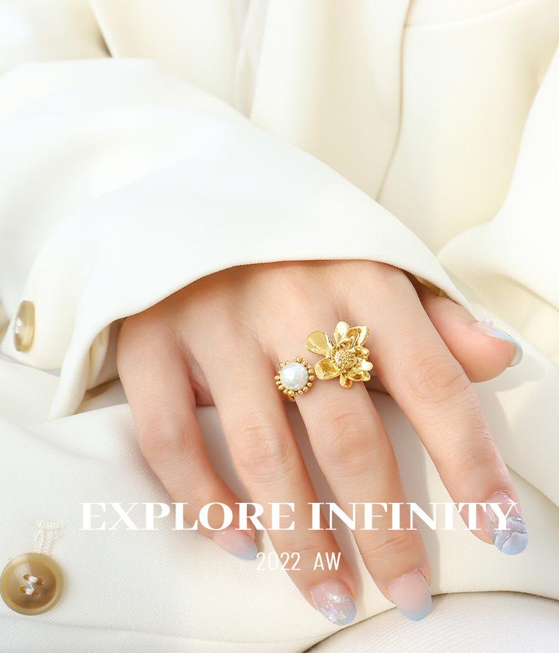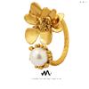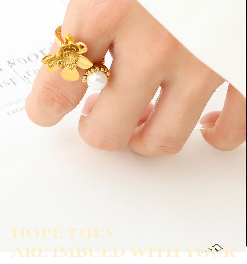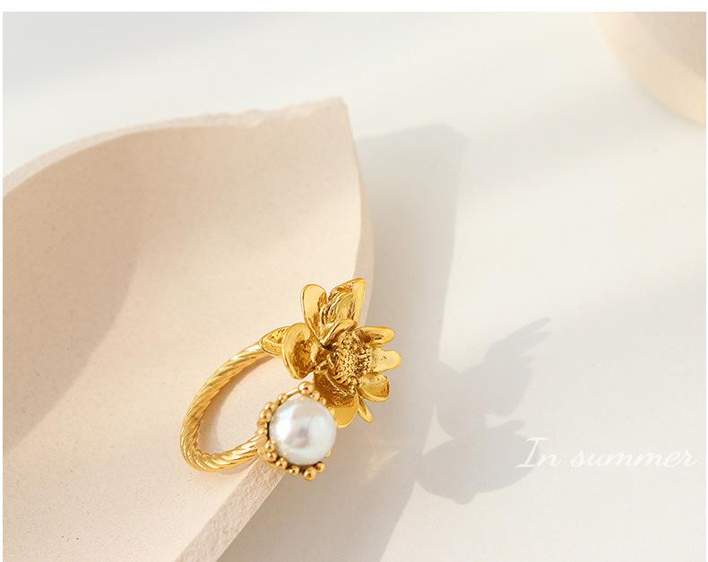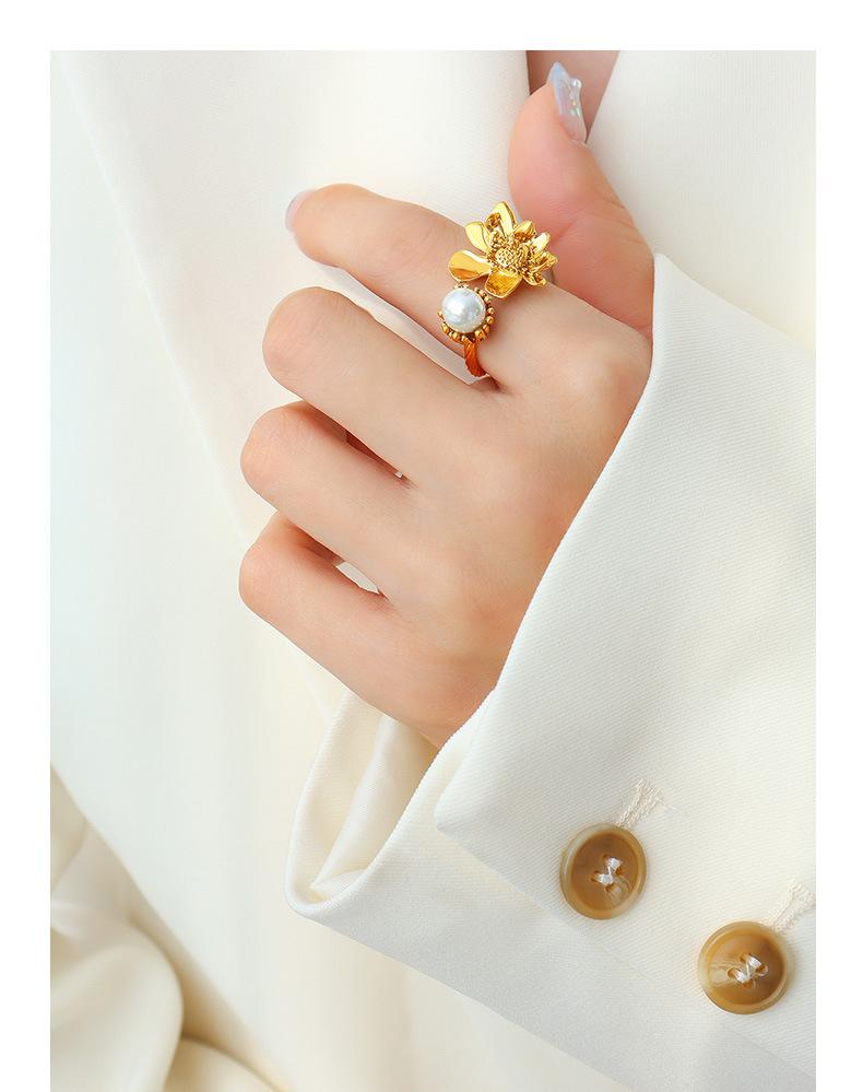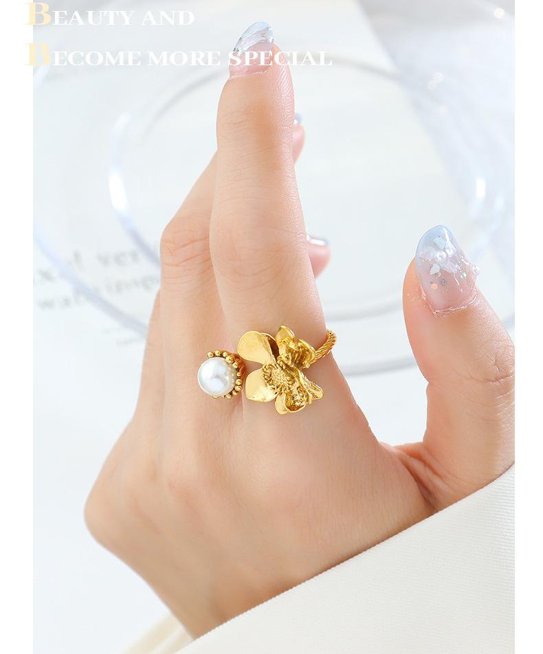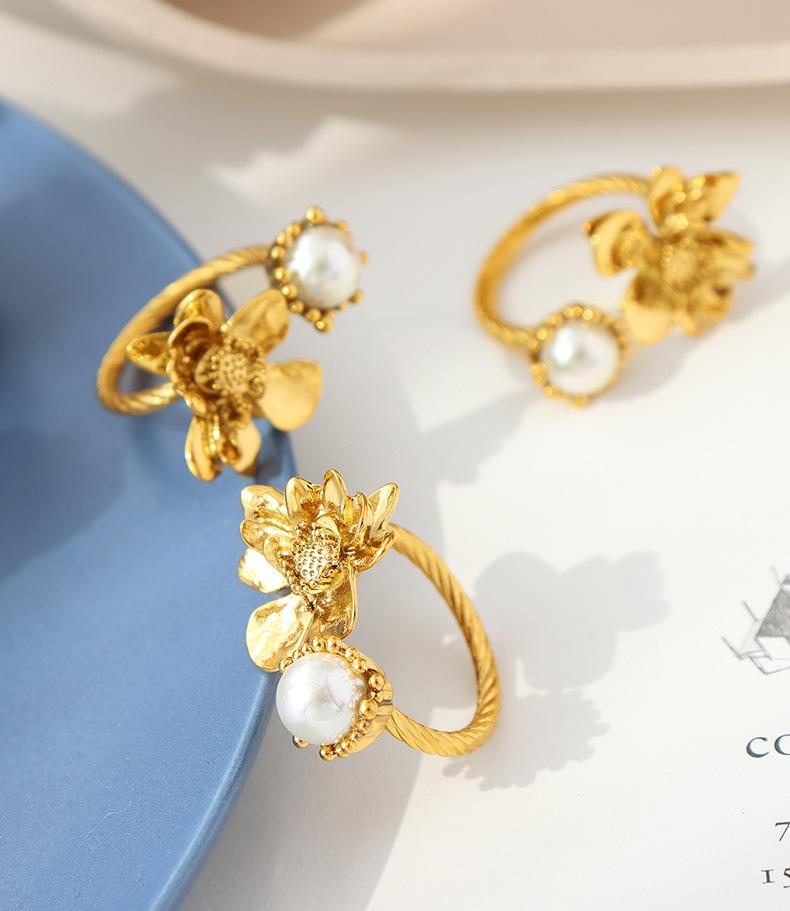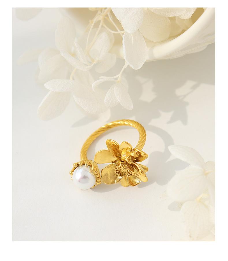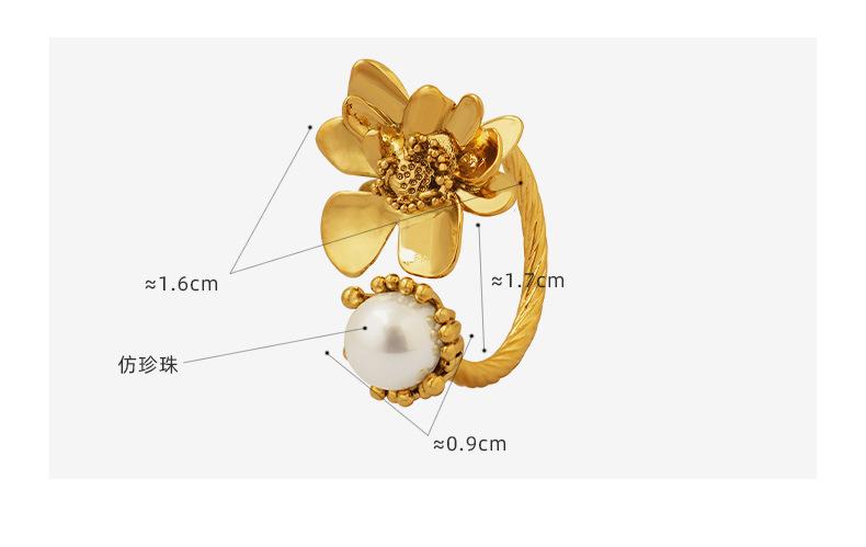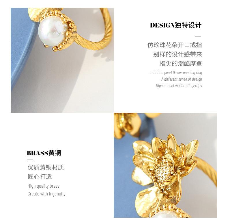 Anillo único de flor retro francés para mujer, material de latón con incrustaciones de cuentas de goma, diseño de nicho que no se decolora, anillo de temperamento