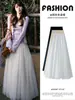 Falda de Malla 2026 Primavera y Verano Nuevo Estilo Moda Femenina Cintura Alta Longitud Media Cintura Elástica Falda de Corte A Falda Larga de Princesa
