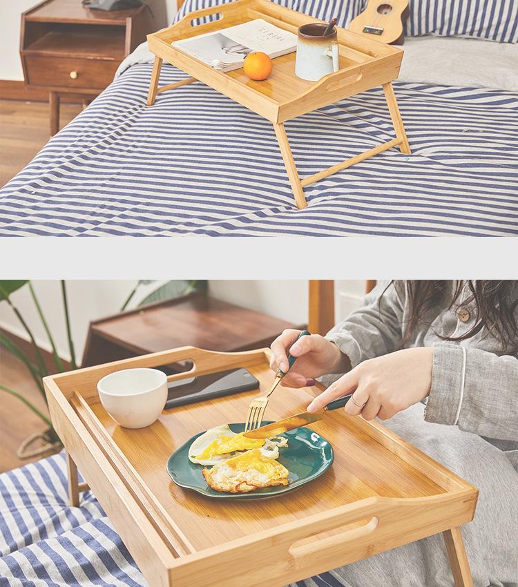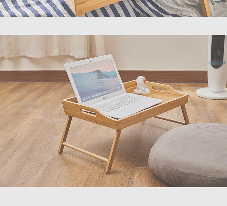 Mesa de comedor plegable de madera de bambú con ranura para teléfono móvil, bandeja de bambú, mesa pequeña sencilla y perezosa, mesa plegable