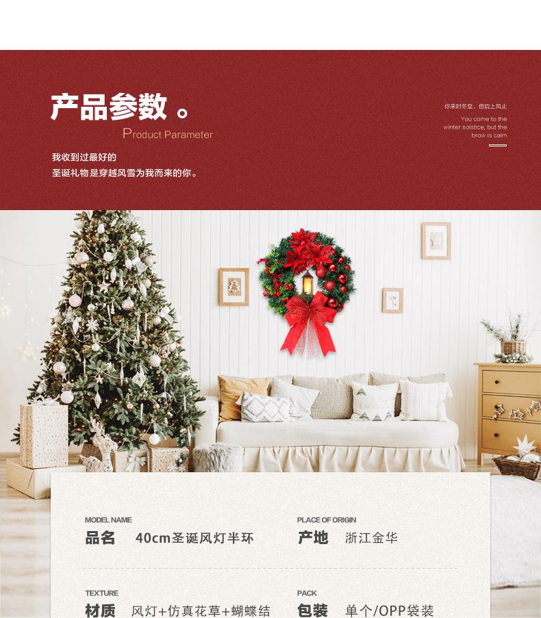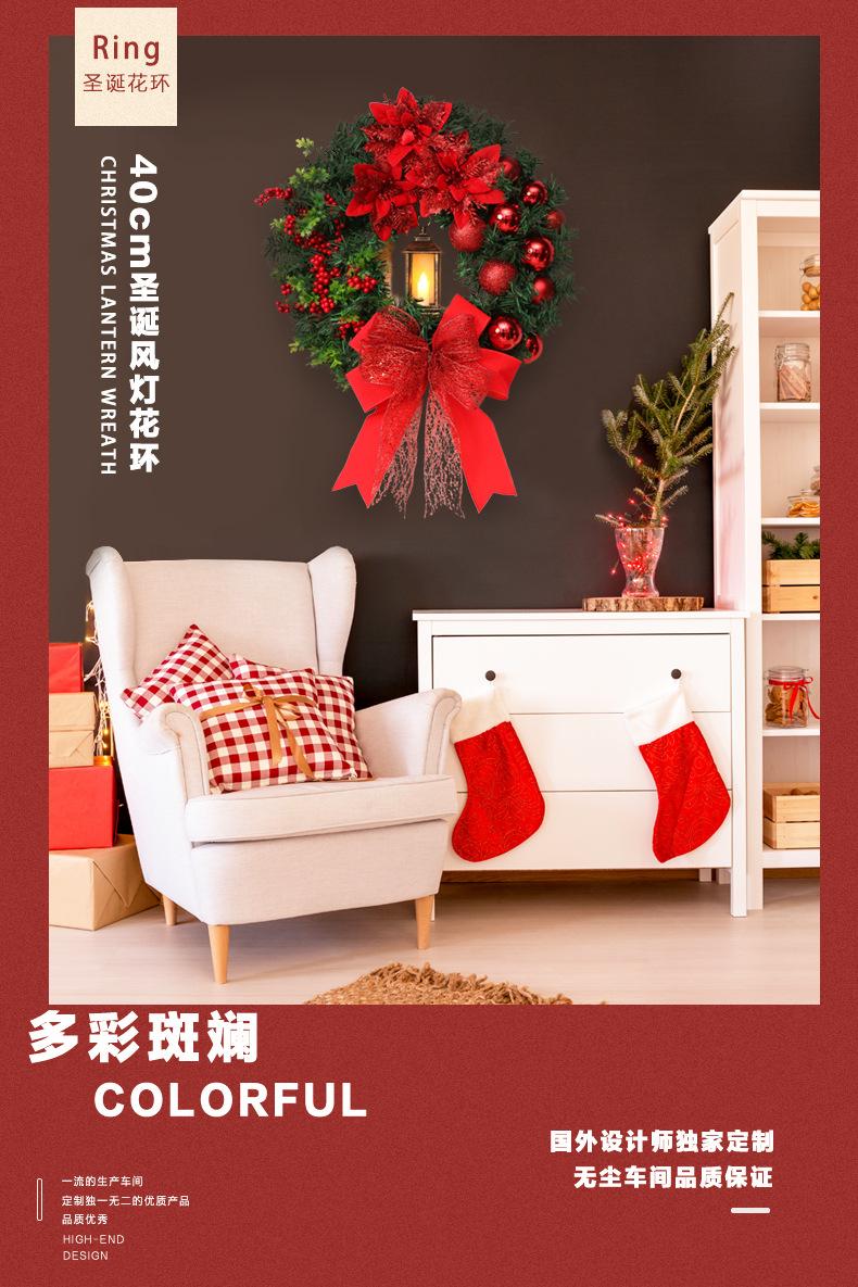 Adornos navideños transfronterizos de 40 cm para colgar en la puerta, corona navideña sagrada con luz