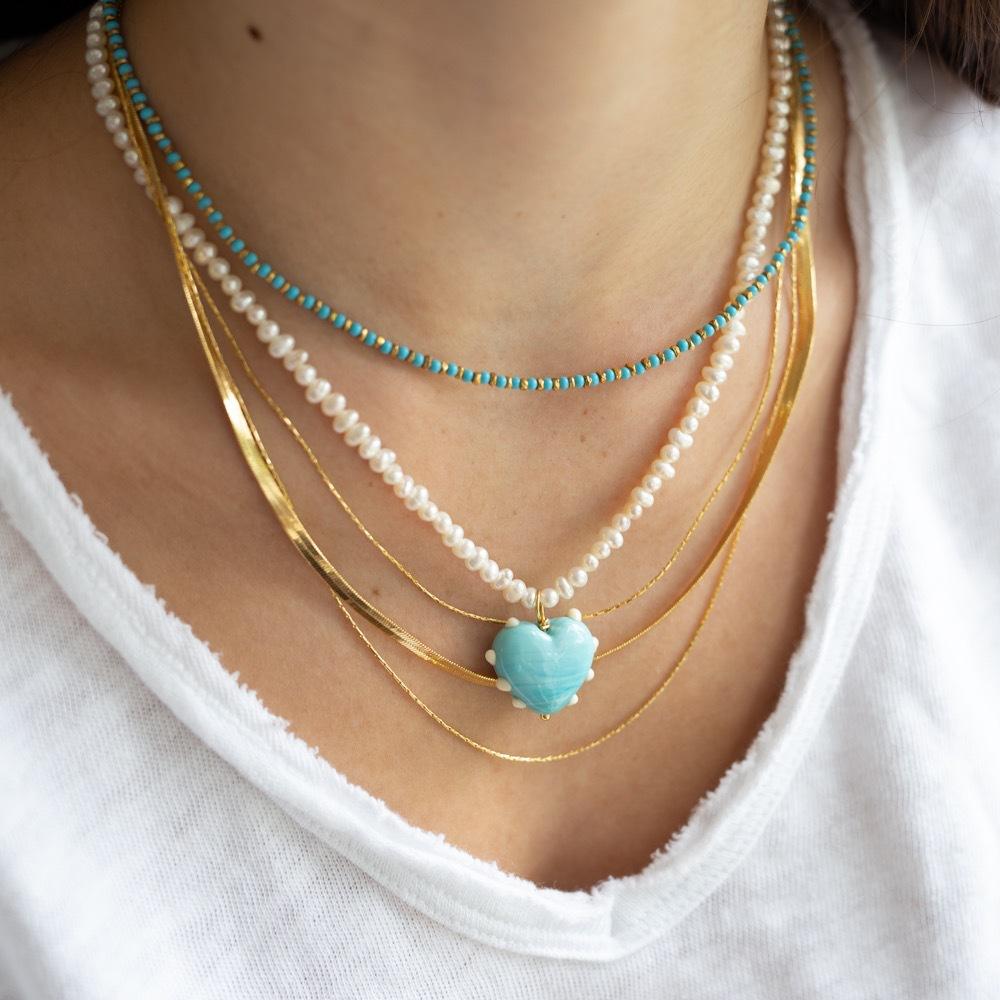 Natural Pearl broken silver necklace LN103, Natural turquoise broken silver necklace LN106, Natural Pearl Brok...