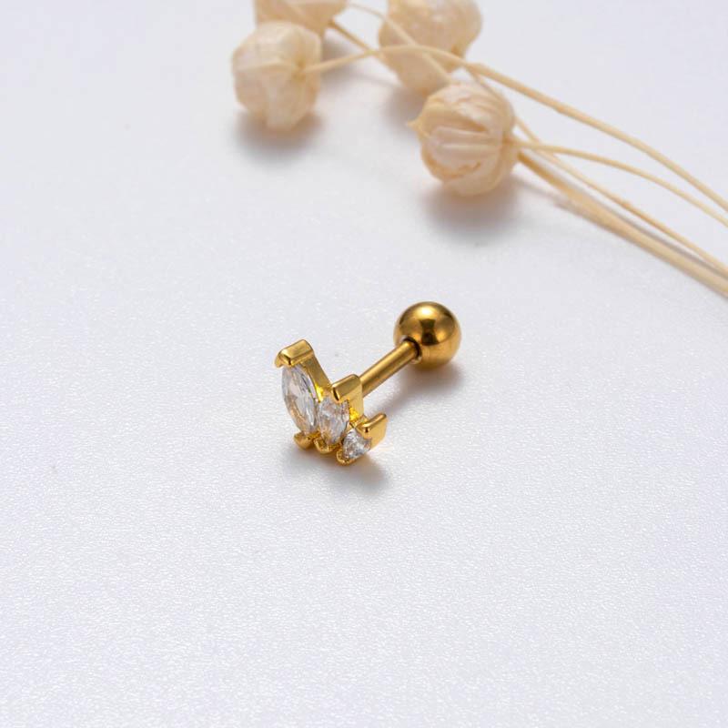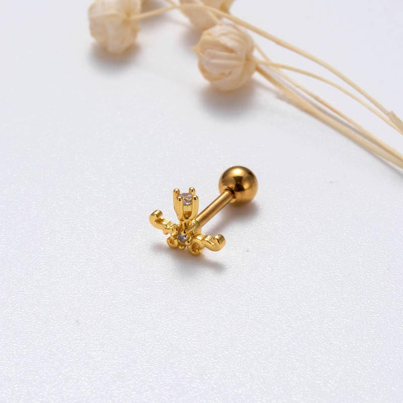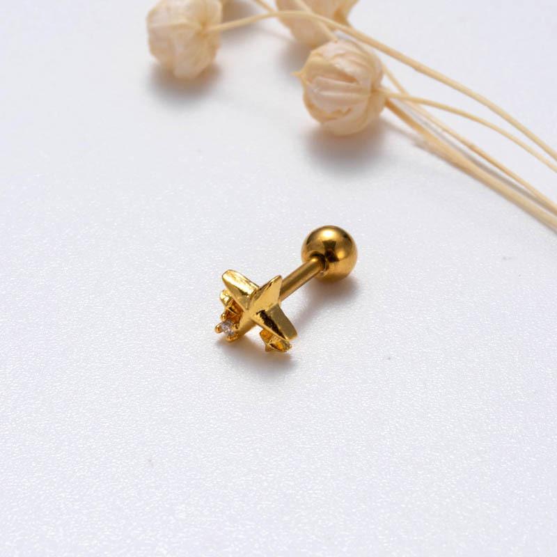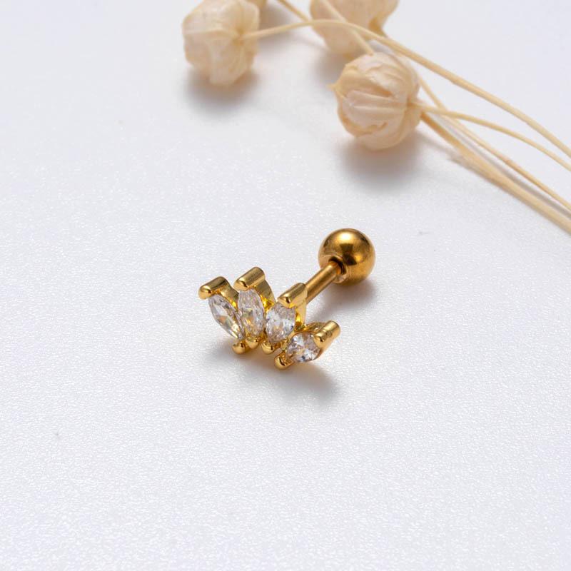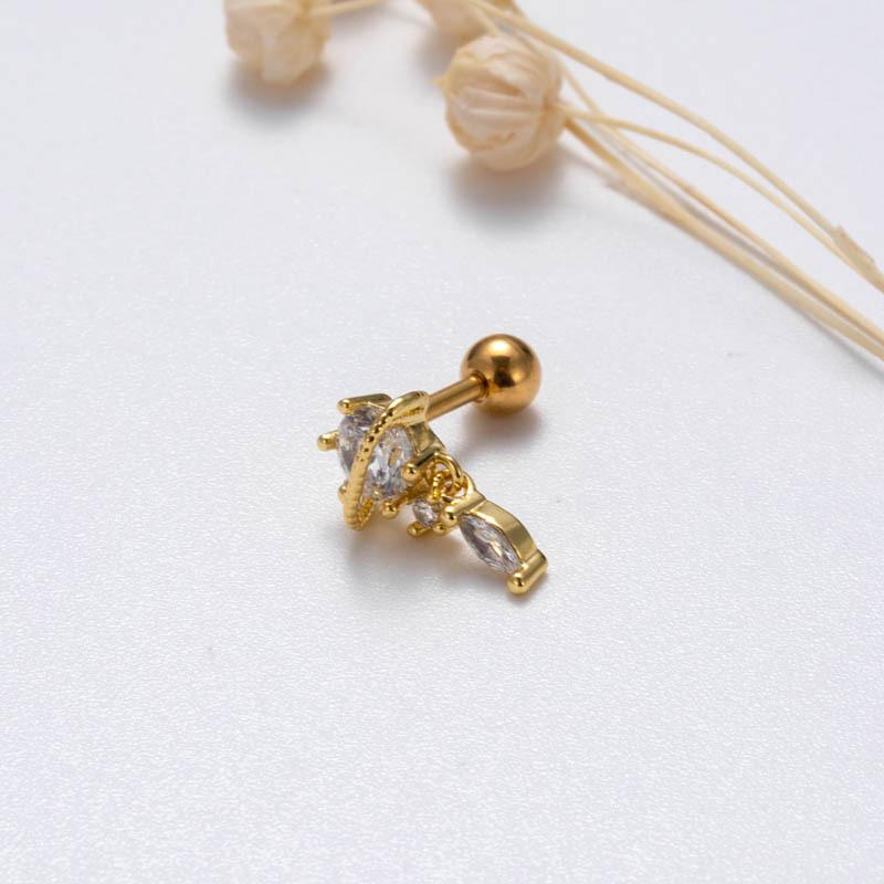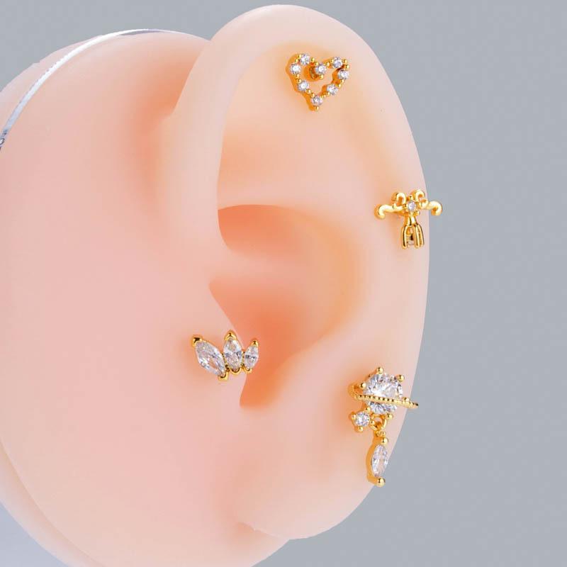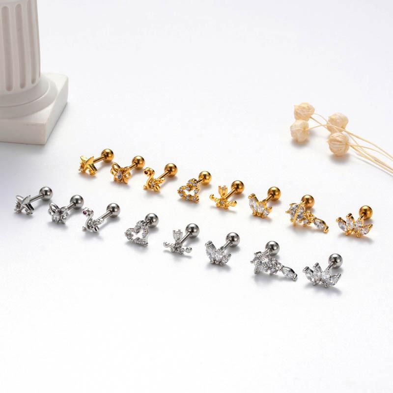 nombre del producto | Pendientes populares de acero inoxidable en Europa y América, perforados con mariposa en forma de corazón, circonita microincrustada, tornillos y bolas, no es necesario quitarse los pendientes al dormir |