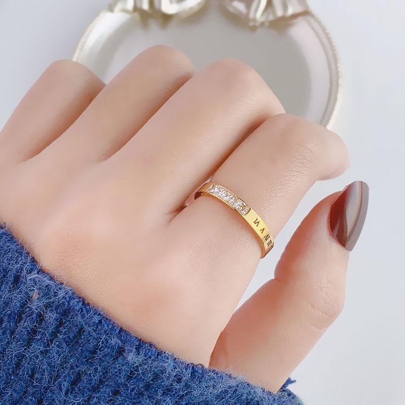 Anillo de Acero de Titanio de Moda Europea y Americana para Mujer con Diamante Cuadrado Romano, Diseño Nicho Simple Elegante, Anillo de Moda de Internet