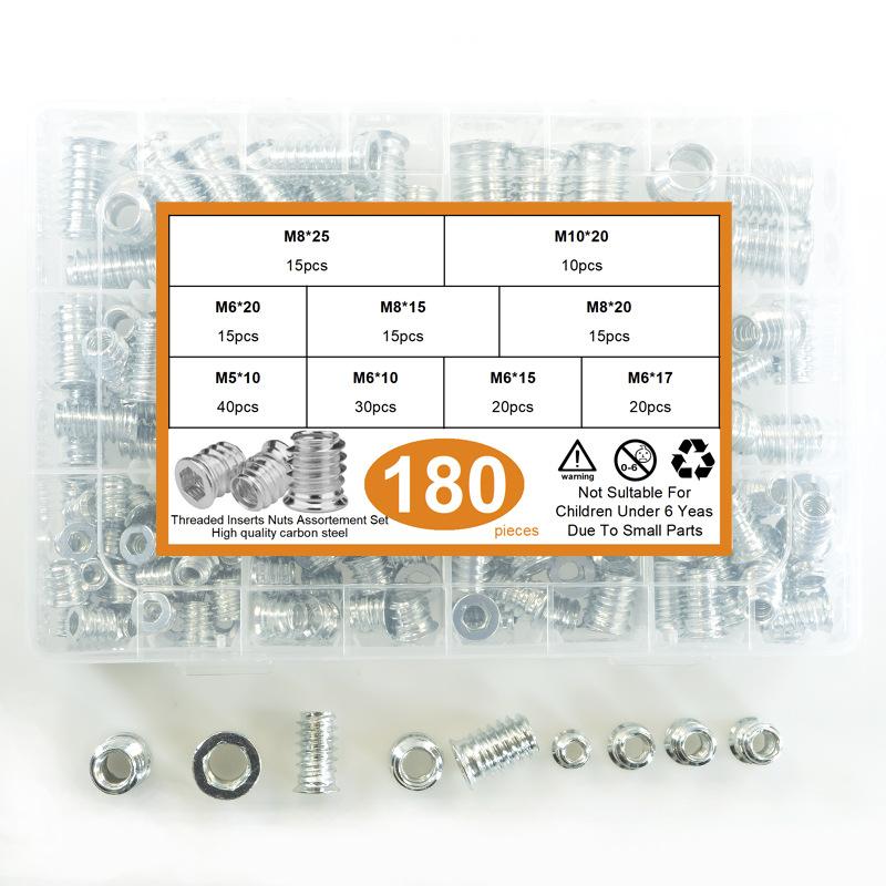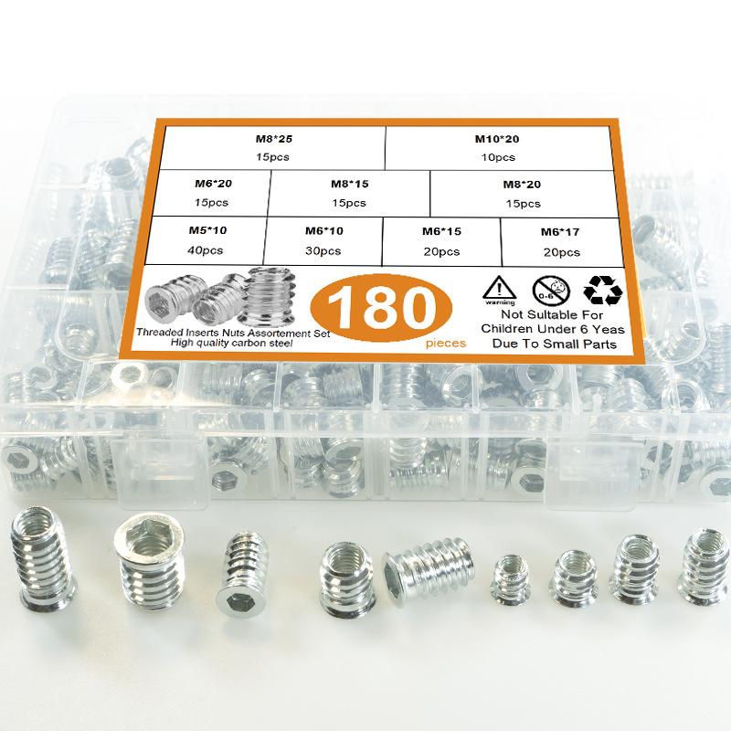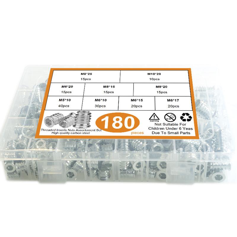 Juego de 130 tuercas trapezoidales preincrustadas con cabeza avellanada para correa dentada interna y externa M6M8M10 en caja con etiqueta de color