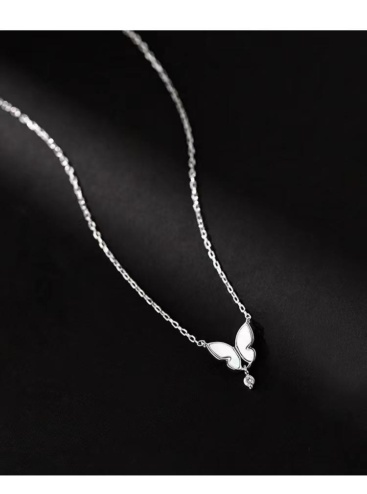 Collar de mariposa de plata esterlina s925 para mujer, diseño de nicho, estilo INS, cadena de clavícula, colgante resistente al viento frío, venta al por mayor