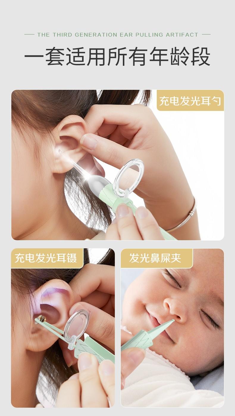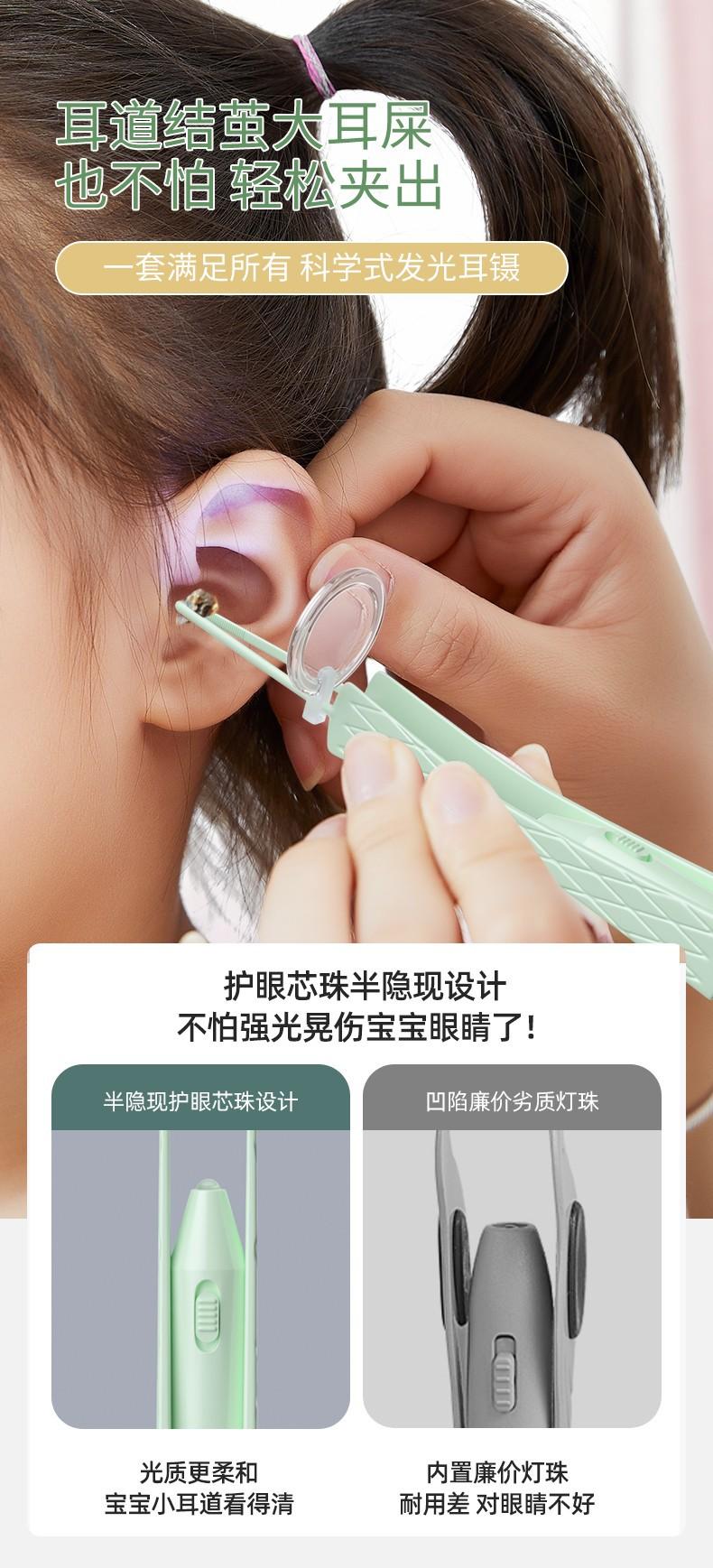 Nuevo juego de cucharas luminosas para los oídos, herramienta para niños para recoger los oídos, cuchara de carga visual, pinza luminosa para la nariz, pinzas para los oídos