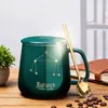 Taza de café de cerámica creativa, taza aislante, taza de tendencia con personalidad con tapa y cuchara, taza de constelación francesa, taza de agua para pareja