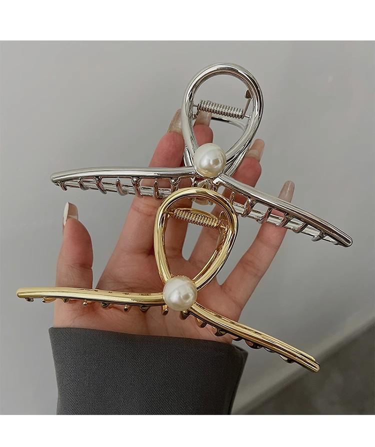 Pinza para el cabello con perla grande, volumen para el cabello, pinza de tiburón multimetal, pinza para el cabello, pinza para el cabello para la parte posterior del cabello, pinza para el cabello con temperamento de alta calidad