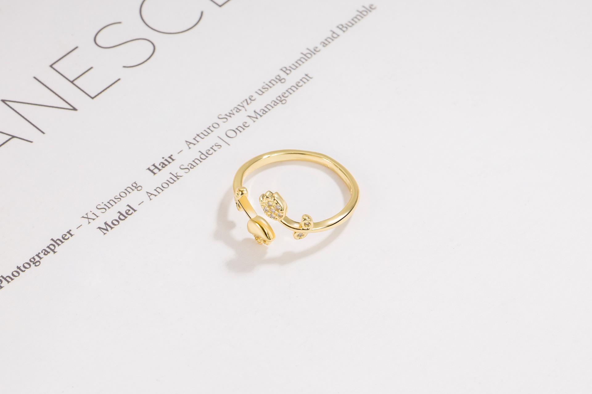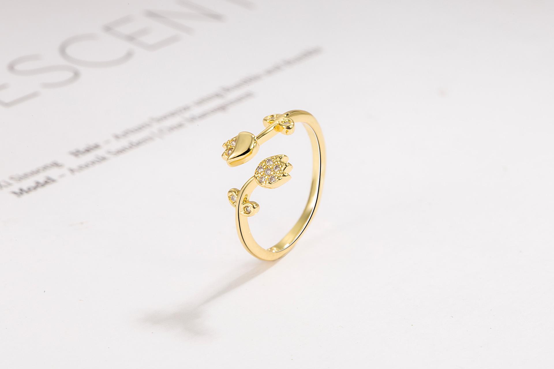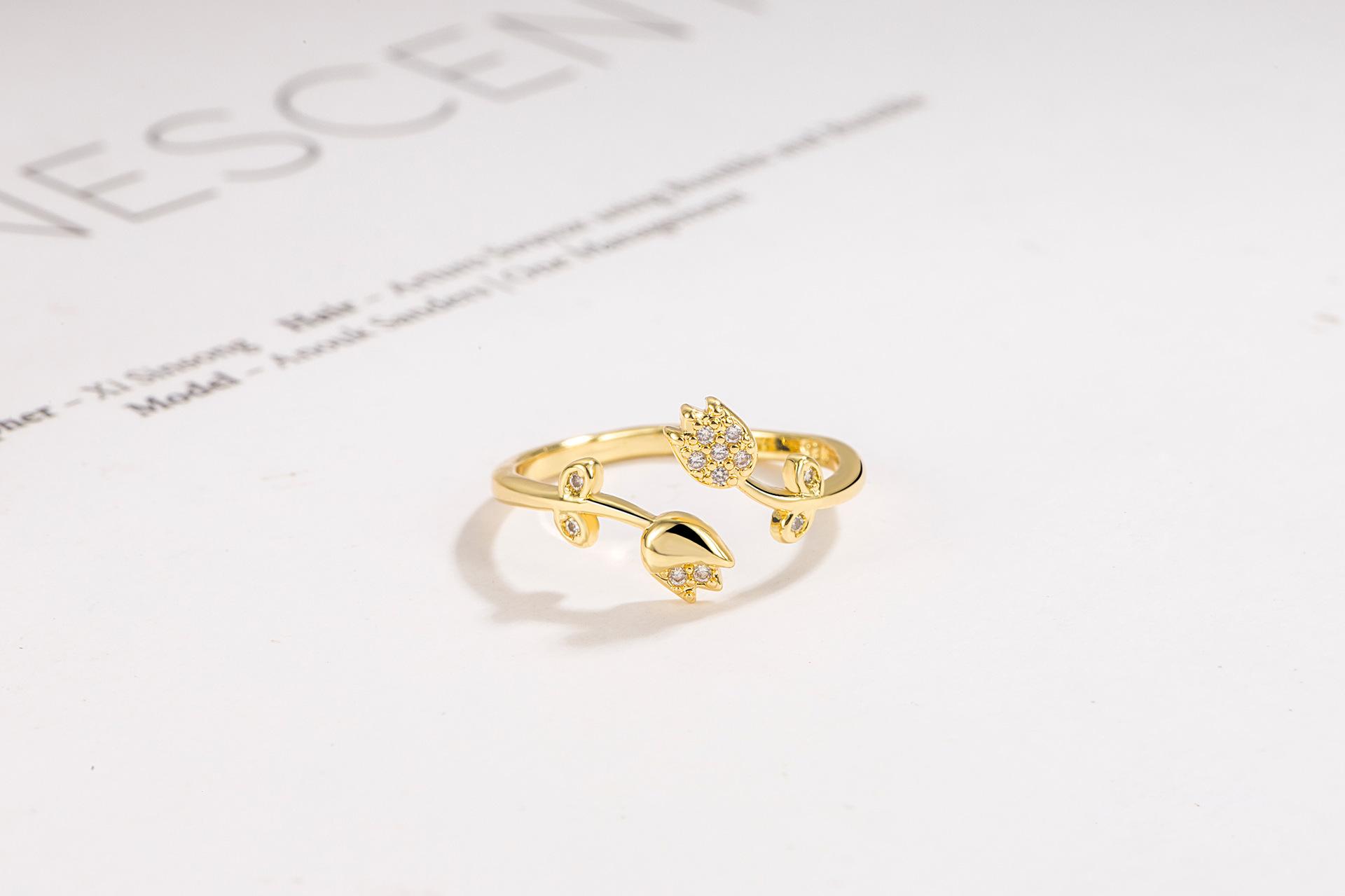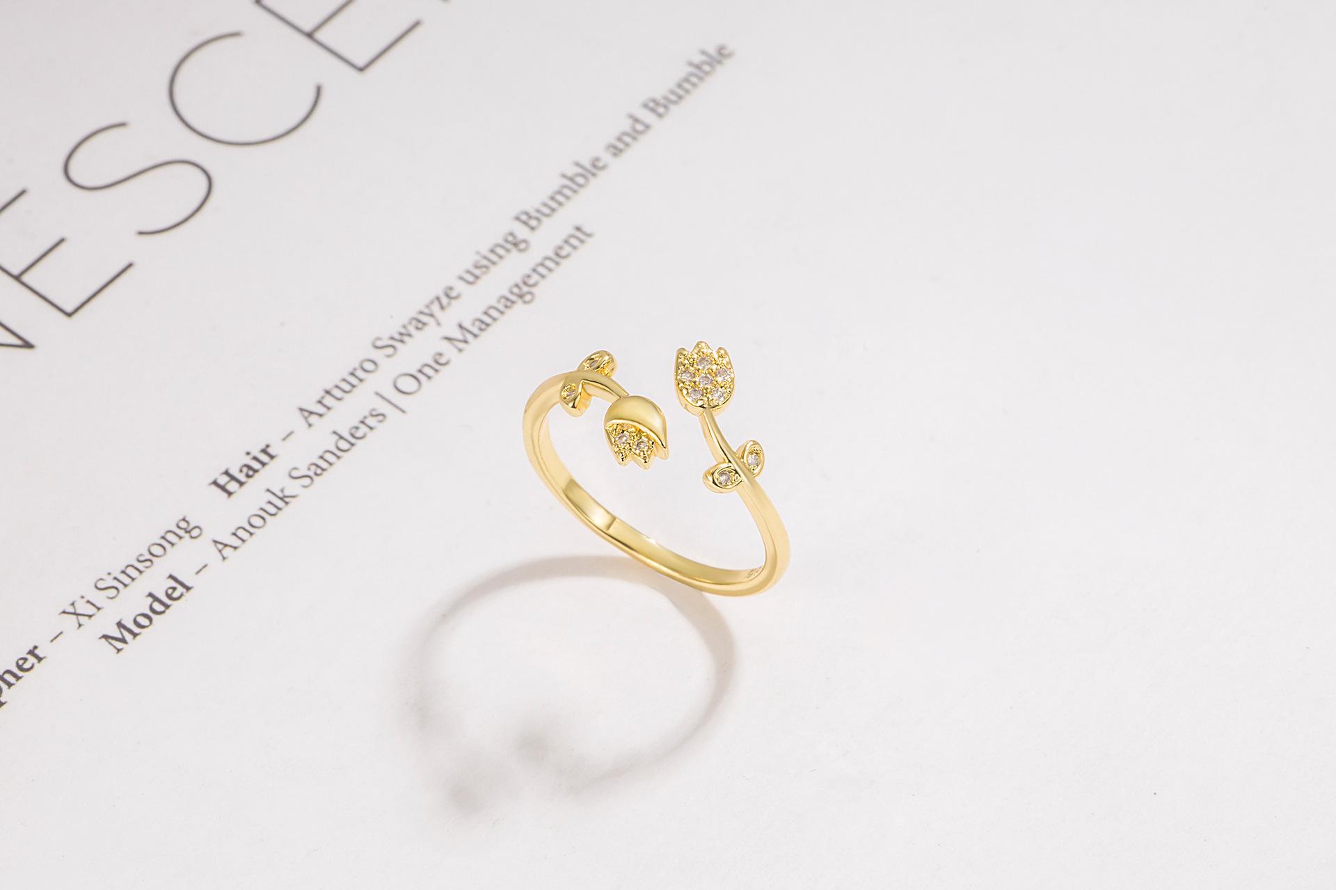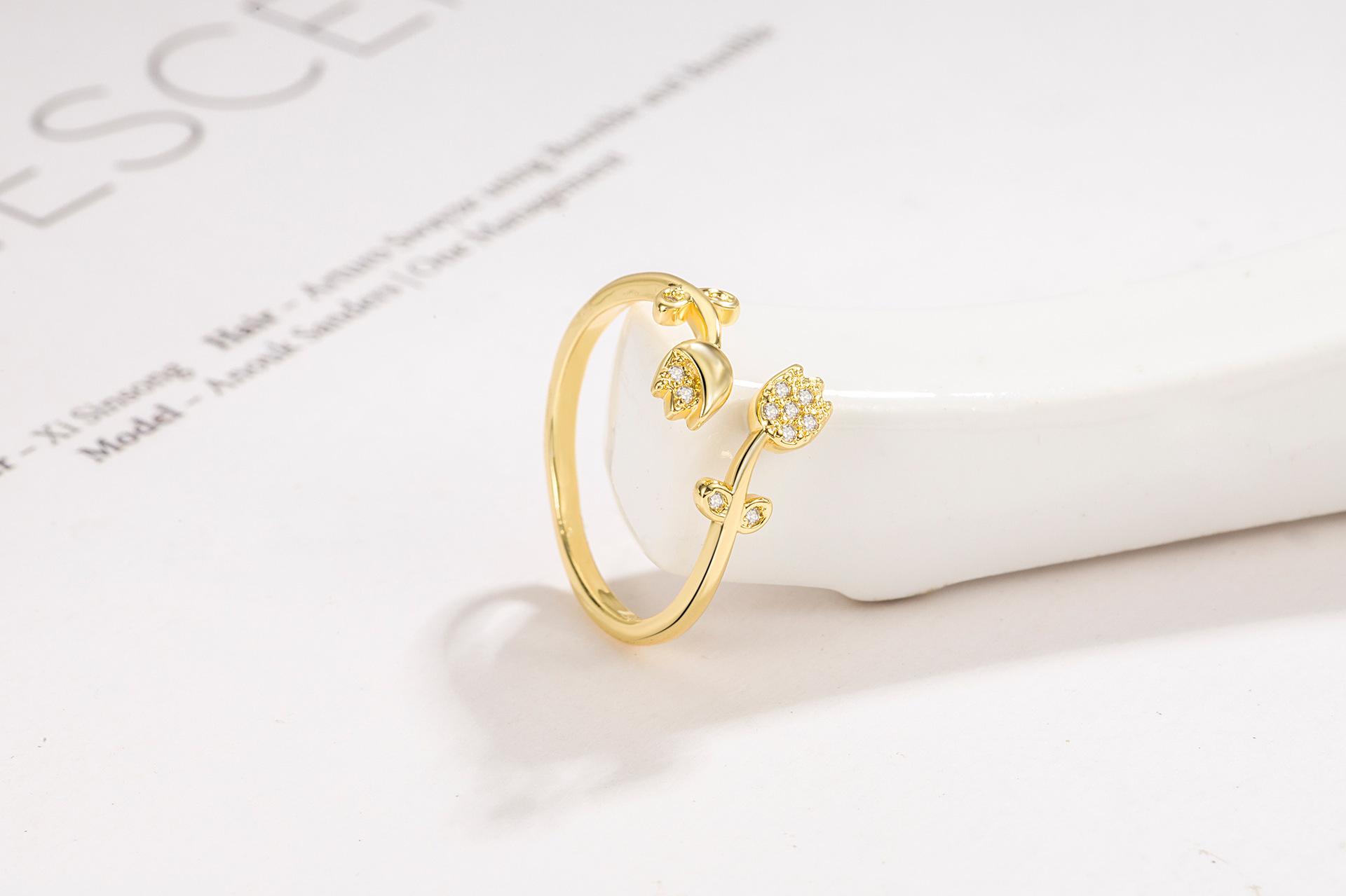 Anillo de luz Golden Tulip de lujo de alta gama anillo de flor abierta retro nicho sentido del diseño 2022 Nuevo
