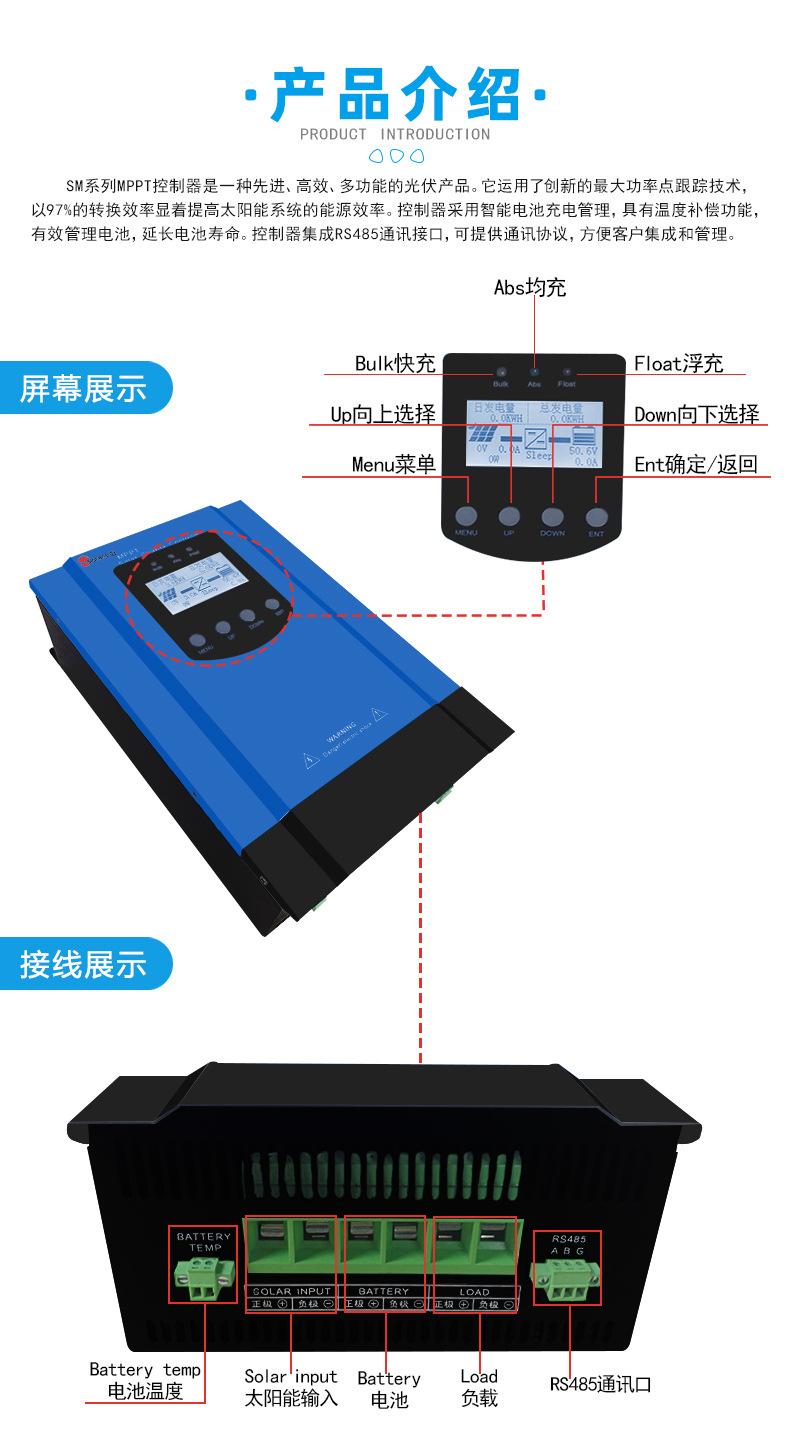 Controlador solar MPPT de 40 A con identificación automática, controlador de carga fotovoltaica de 12 V, 24 V y 48 V, controlador fuera de la red.