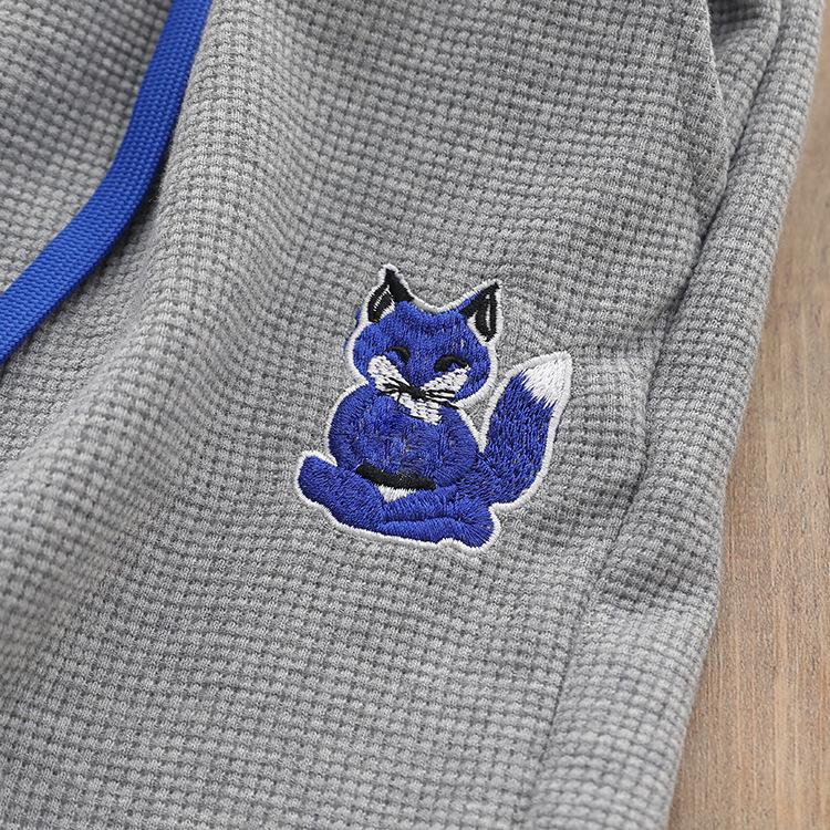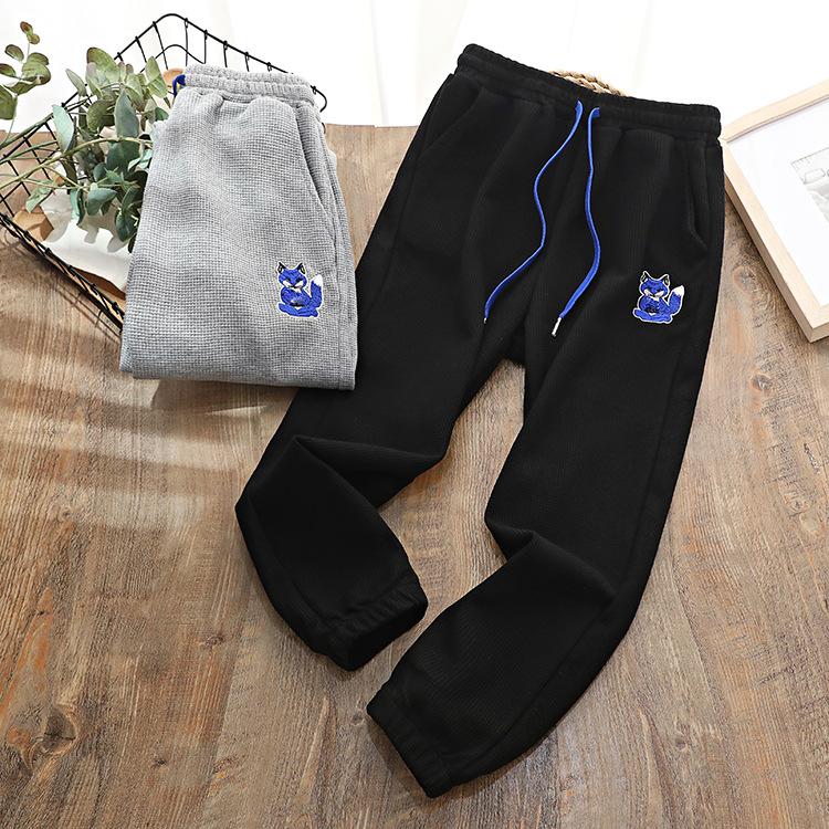 Primavera y Otoño Nuevos Pantalones Bordados de Zorro para Combinar para Hombre y Mujer Pantalones Deportivos con Cintura Holgada y Cintura Alta Holgados para Exterior