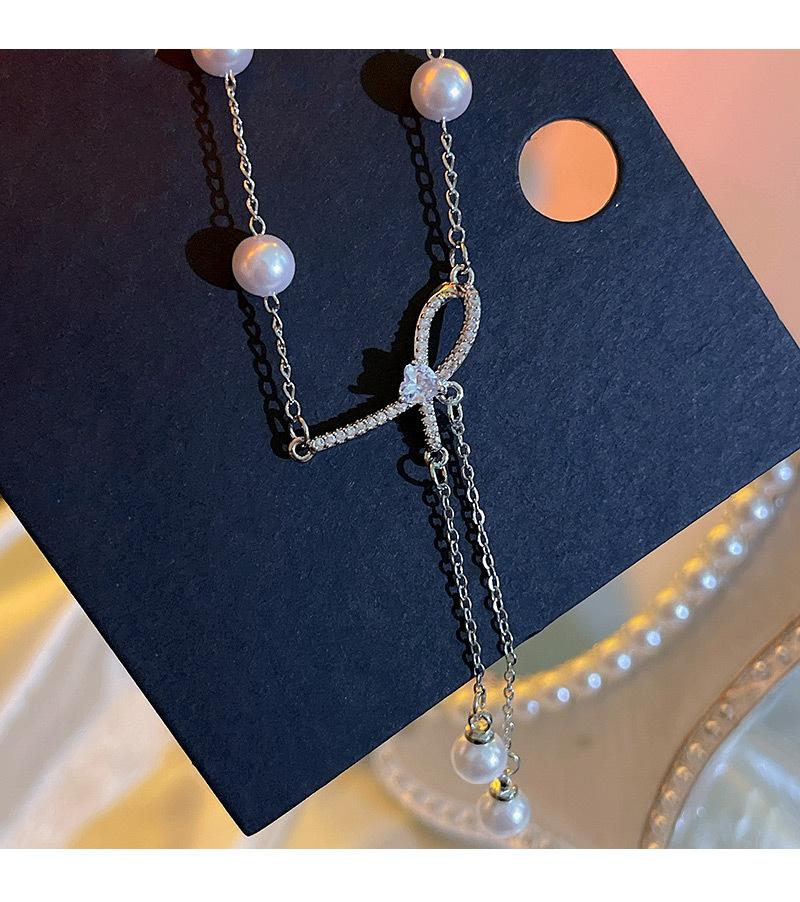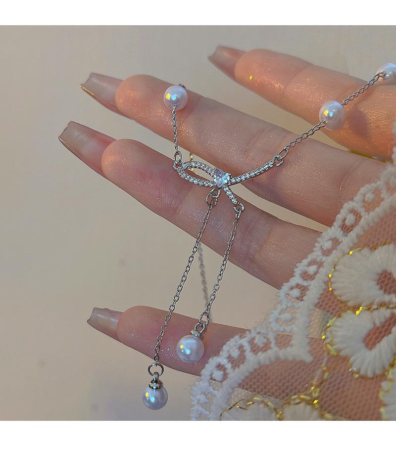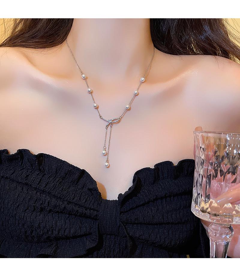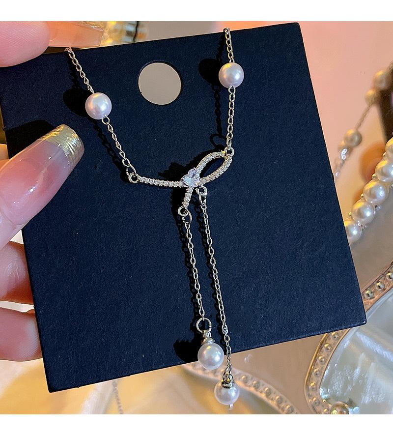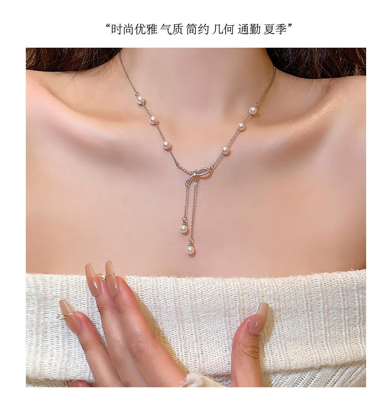 Bowknot pérola borla colar feminino luz luxo nicho net vermelho colar design high-end clavícula corrente acessórios atacado