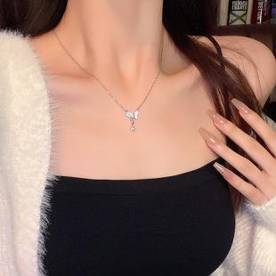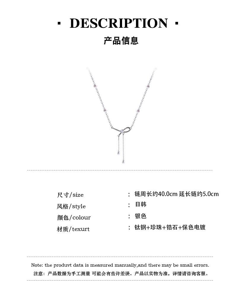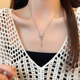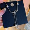 Bowknot zircão borla colar de aço titânio feminino estilo frio personalidade clavícula corrente versão coreana de luz luxo nicho colar acessórios